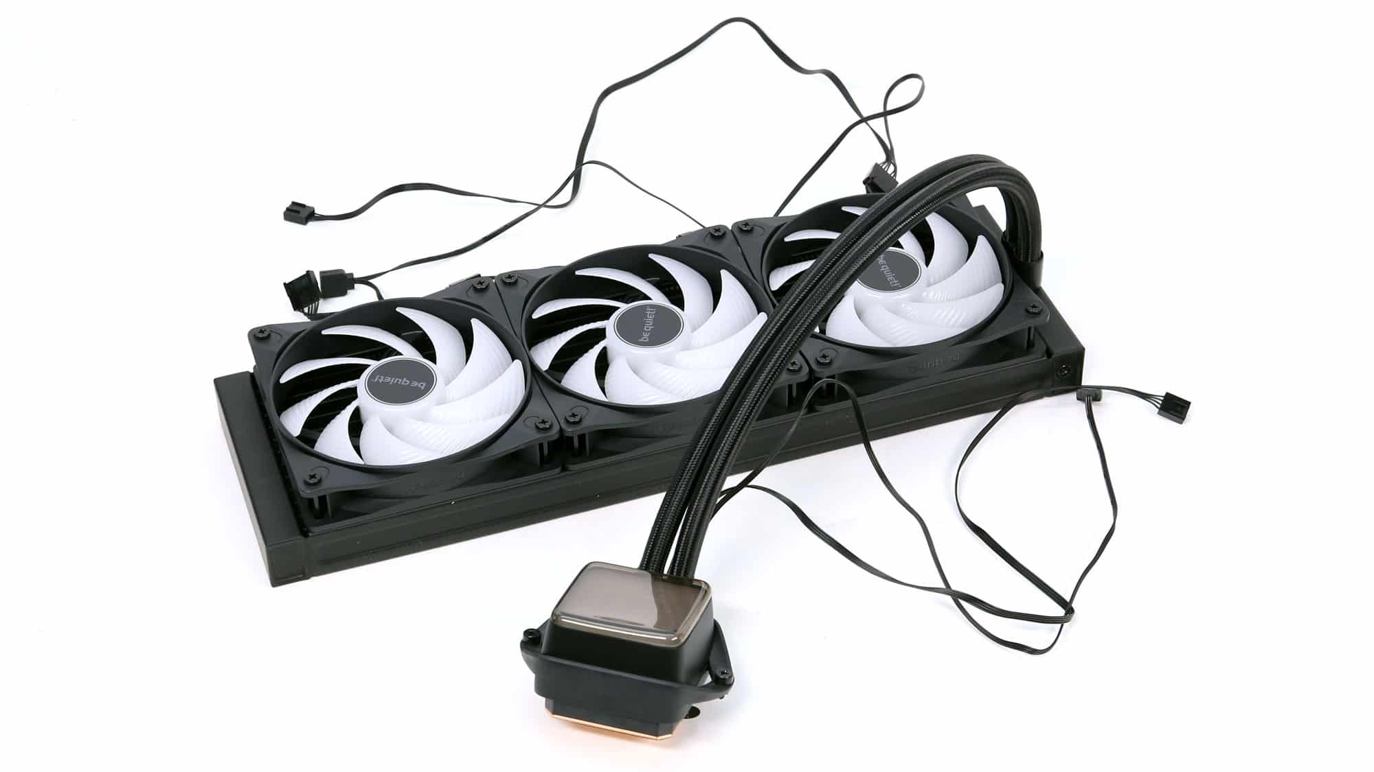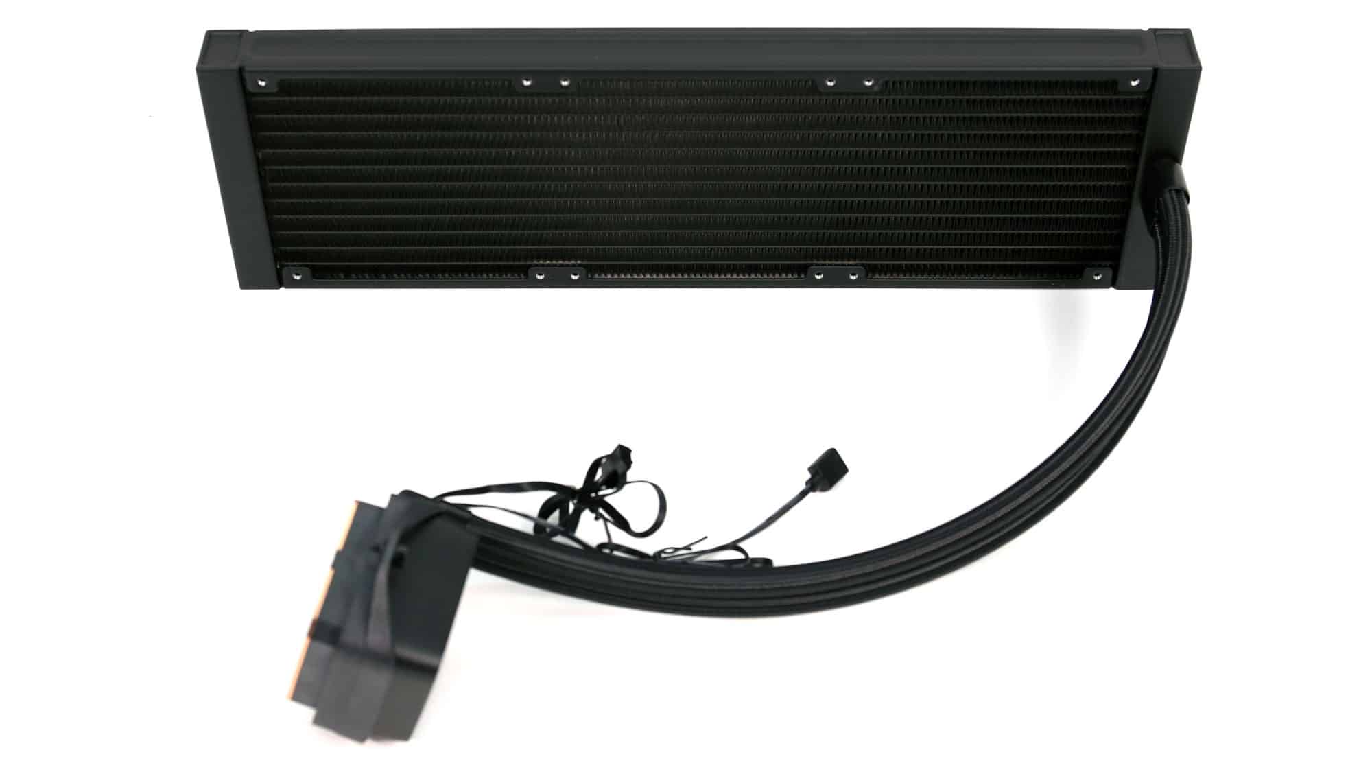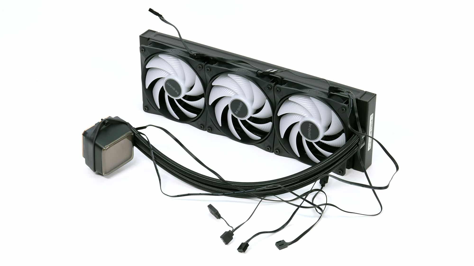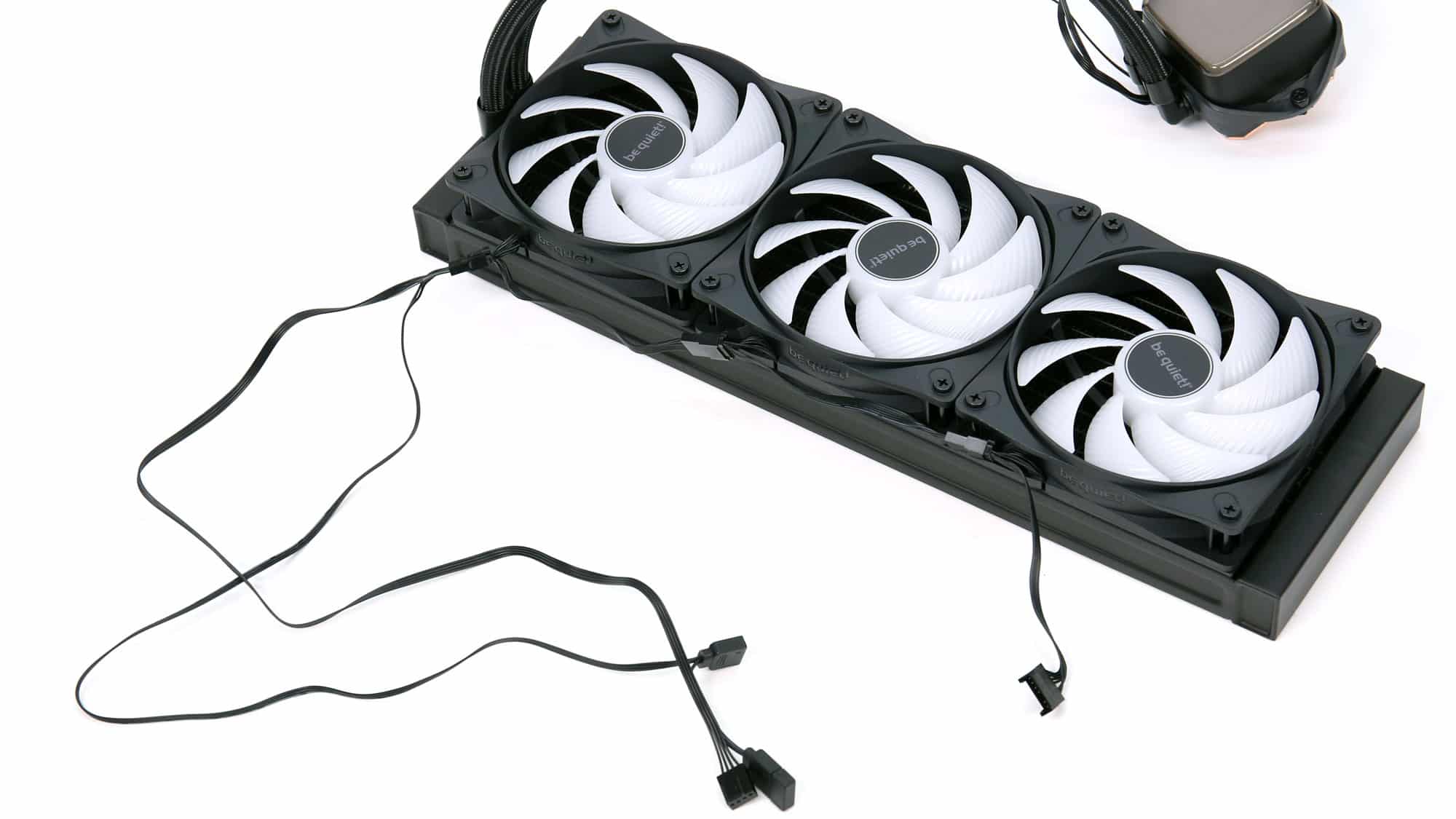 The fans are daisy-chained together, so only two cables leave from the AIO: one 4-pin PWM and one for the ARGB lighting.