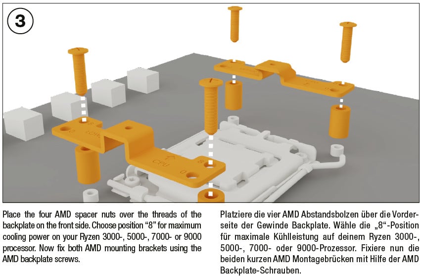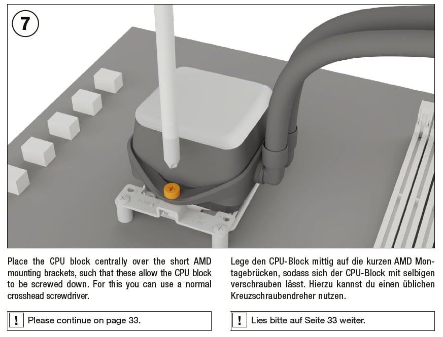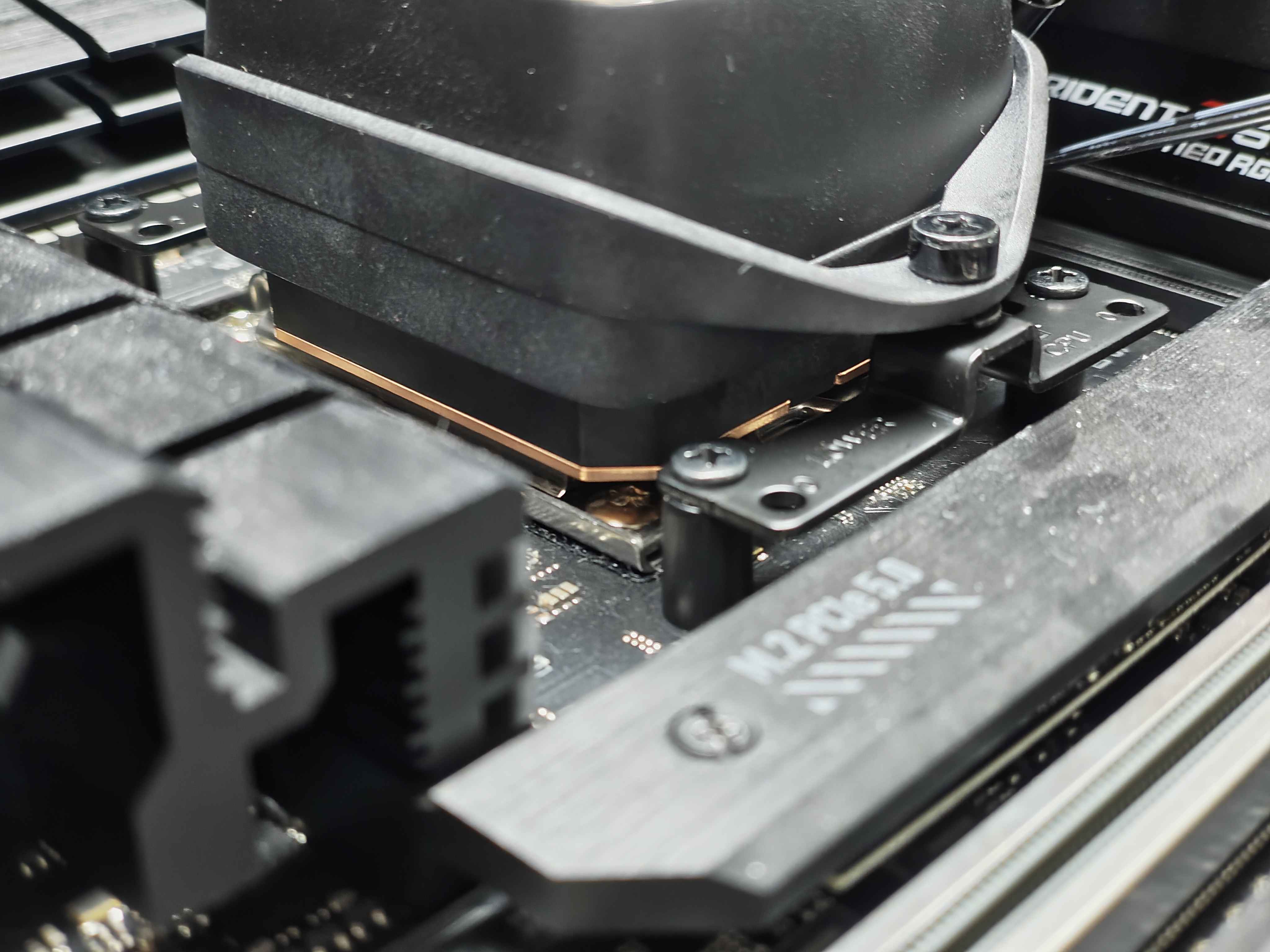 The installation of the cooler was a very positive experience. After mounting the plates in the offset positions for better performance, the CPU block could be installed. Aligning the screws on the mounting plates provided satisfying feedback. It’s easy to identify the point at which the screws are properly seated, and you can even start threading them with your fingers before reaching for a screwdriver.