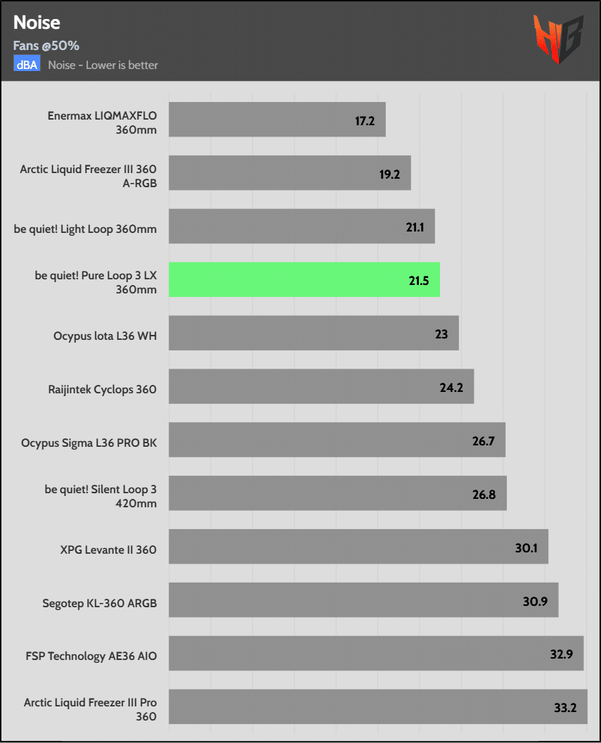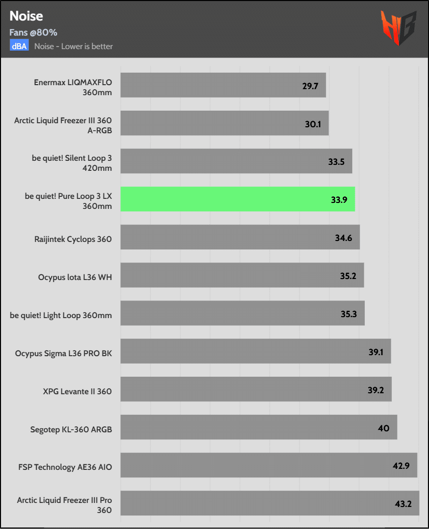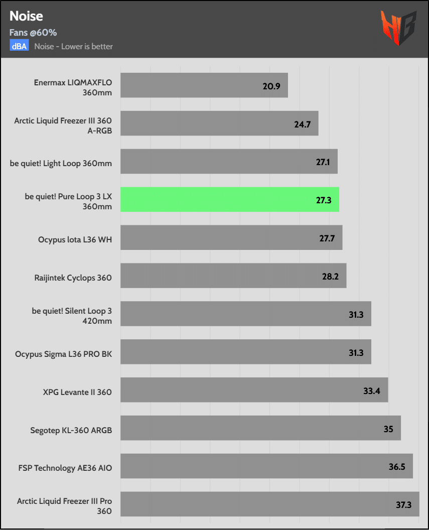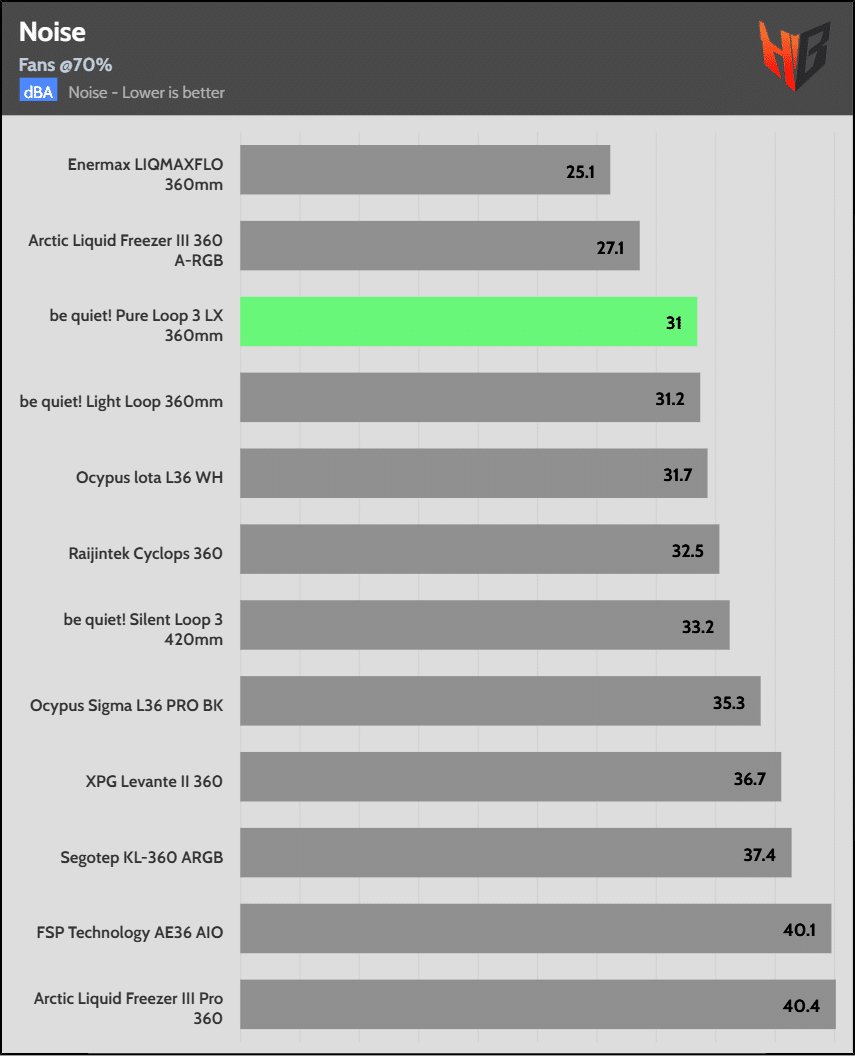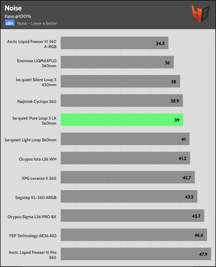 Cooling be quiet! Pure Loop 3 LX 360mm AIO Review October 13, 2025October 13, 2025 crmaris Output Noise & Fan(s) Speed Noise Level @ 40%-100% of Max Speed Noise_40PercentNoise_50PercentNoise_60PercentNoise_70PercentNoise_80PercentNoise_90PercentNoise_100Percent PWM Level @ Noise & RPM Fan_Percentage_NoiseFan_Percentage_RPM Noise Level @ Fan Speed RPM_15dBARPM_20dBARPM_25dBARPM_30dBARPM_35dBARPM_Full_Speed The higher the RPM in these charts, the better. Pages: Prologue & Technical specifications Box, Contents & Bundle Installation Test Methodology Noise Output Frequency Plots & Noise Recordings Noise Normalized Testing Overall Performance – AMD Epilogue Pages: 1 2 3 4 5 6 7 8 9 Pages ( 5 of 9 ): « Previous1234 5 6789Next » Related Posts Cooling Ocypus Sigma L36 Pro Review – The IPS Display is ALL the Money! October 3, 2025October 3, 2025 crmaris Cooling Noctua NF-P14s redux-1200 PWM 140mm Fan Review August 10, 2025August 10, 2025 crmaris