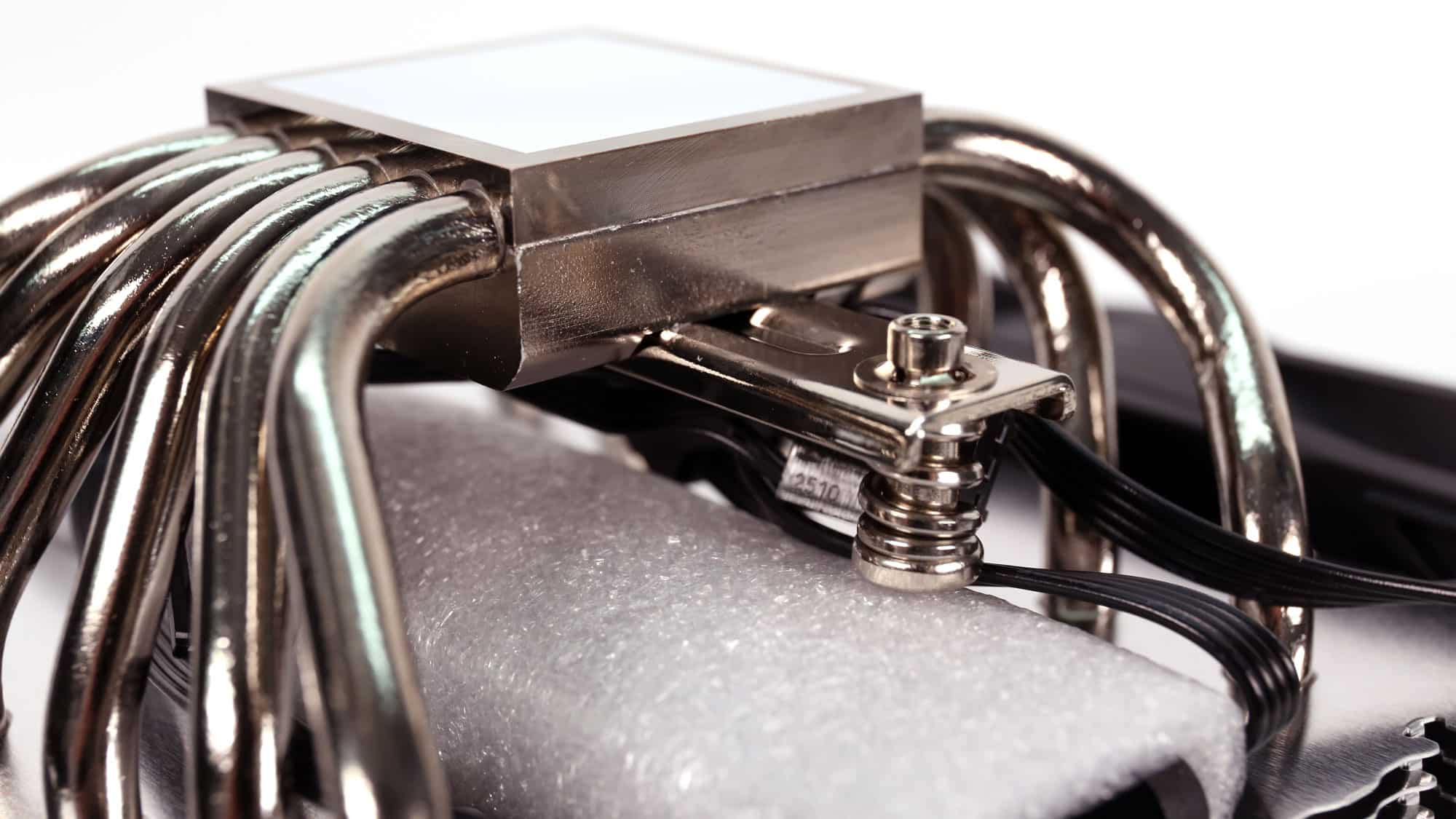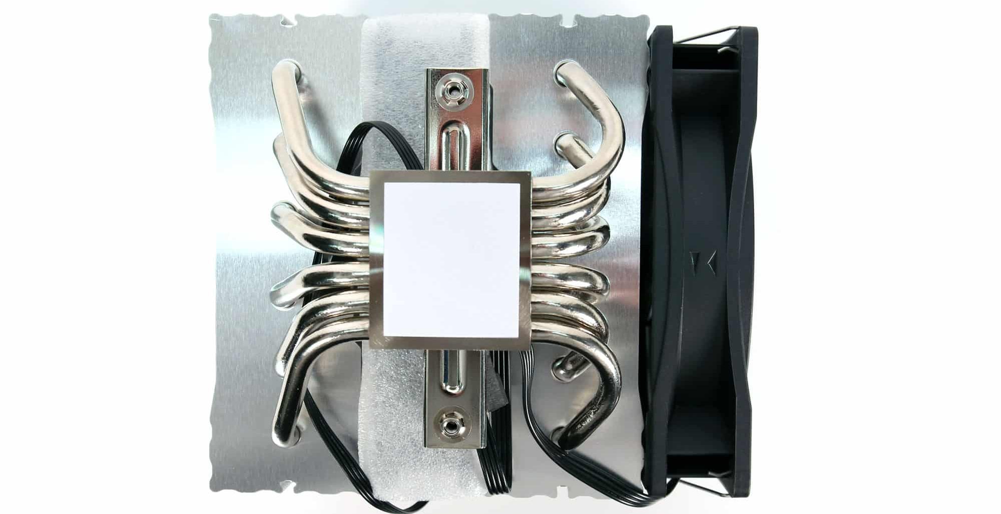 The six heatpipes pass through the cooler’s base, which comes with pre-applied thermal paste.