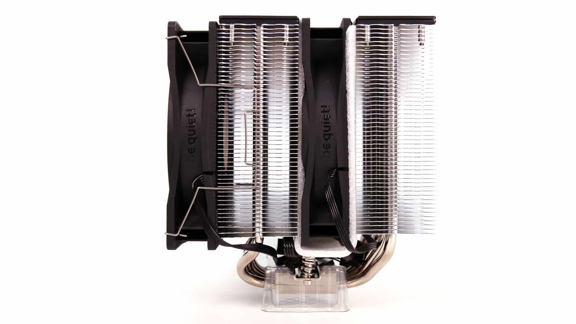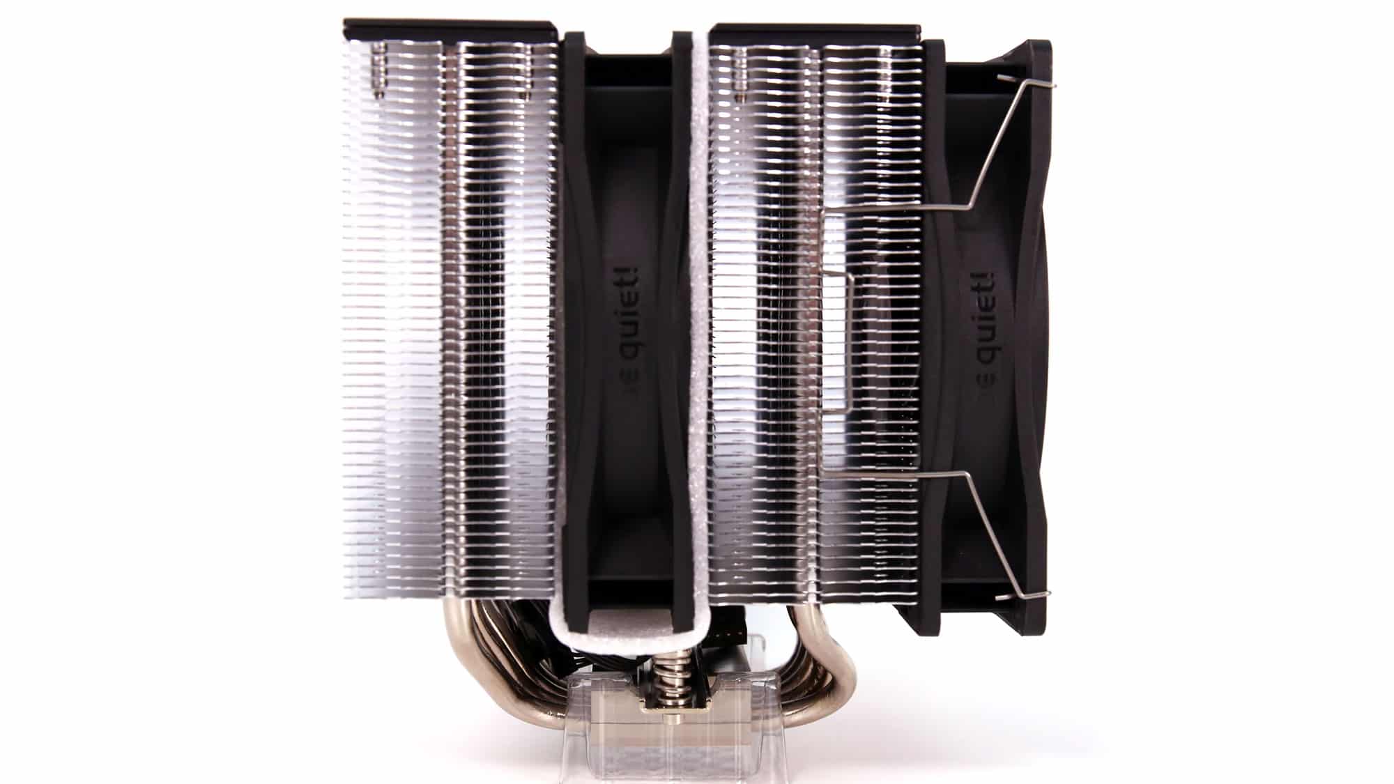 Two fans equip the cooler in a pull-push configuration. The Pure Wings 3 120mm fans can spin at high speeds if required, delivering decent airflow and static pressure. Especially the latter is essential for cooling solutions. The fans use a rifle bearing with a claimed lifetime of 80,000 h at 25°C. You can connect both fans with the Y cable that one of them has.