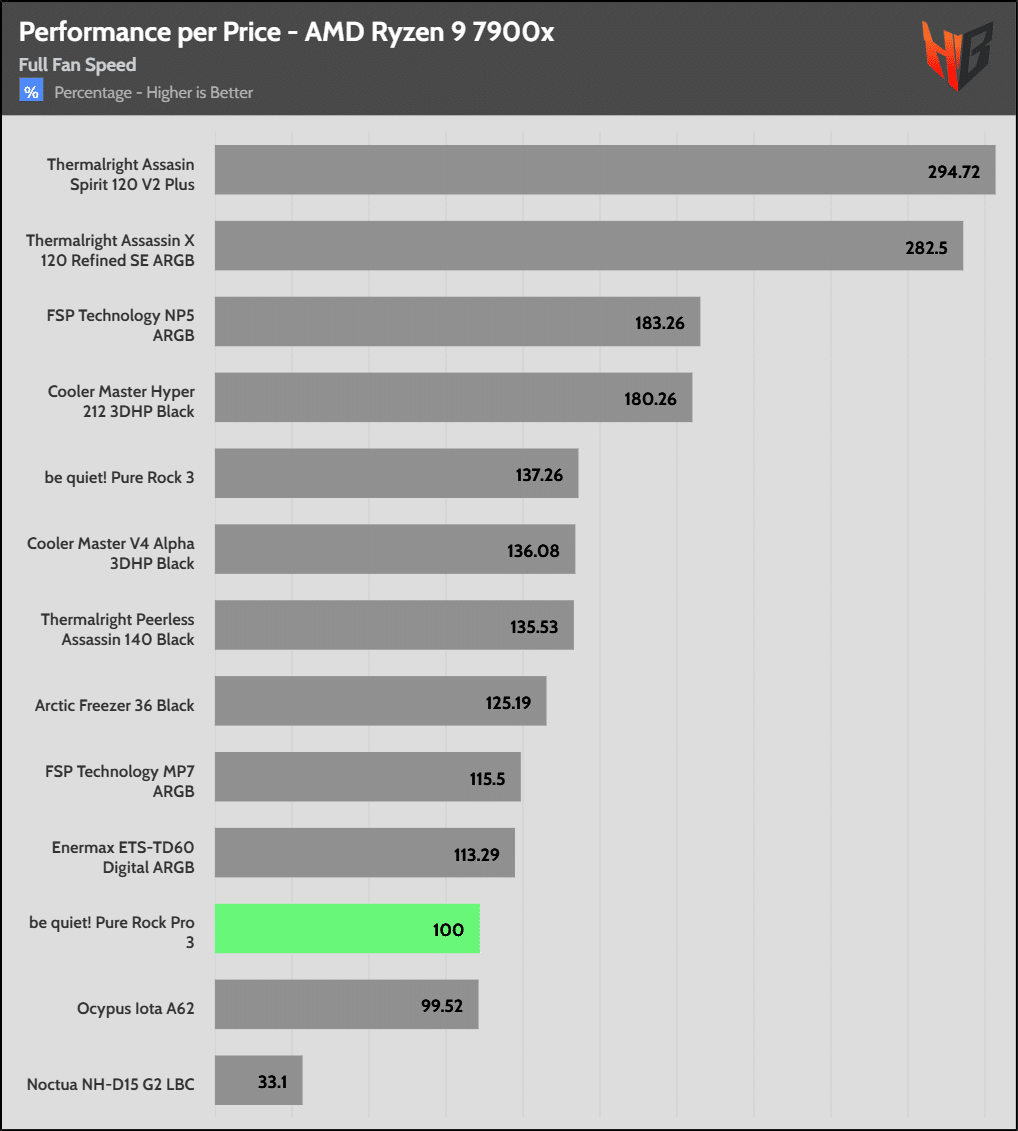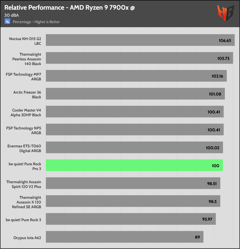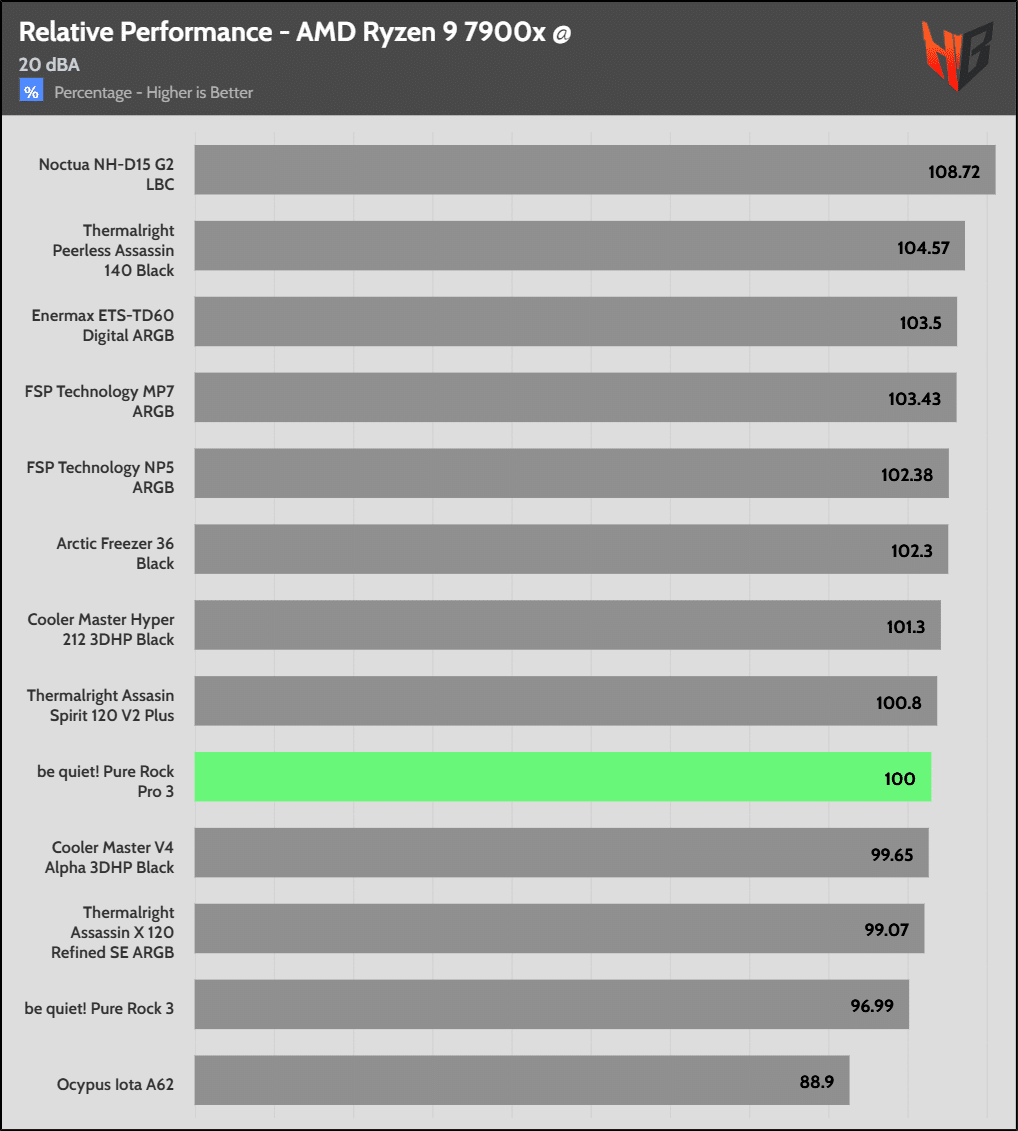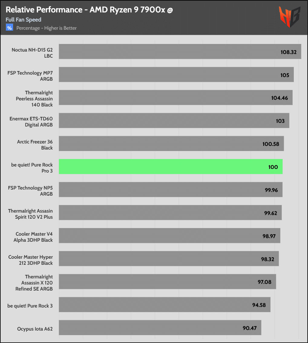 Each chart shows the cooler under test as 100% and every other product’s performance as relative to it.