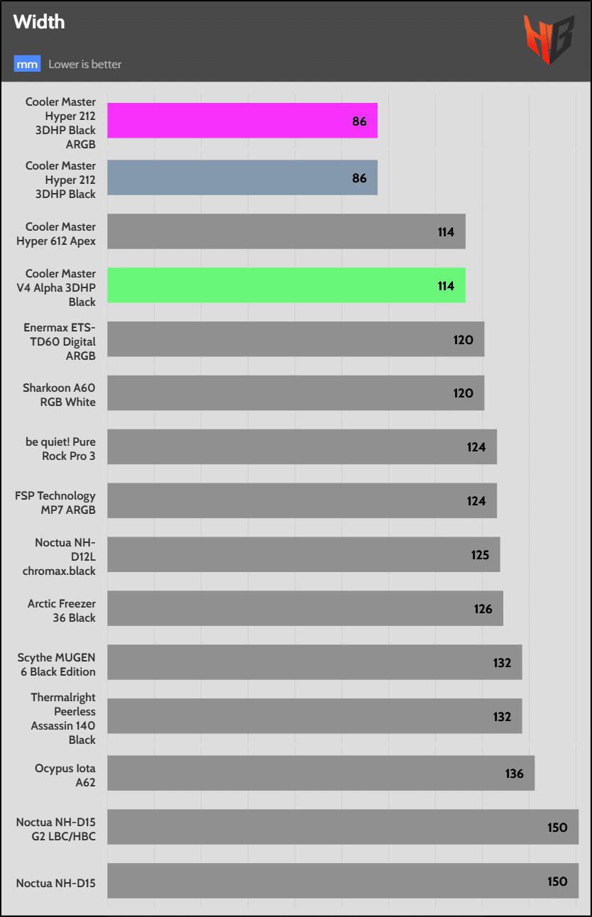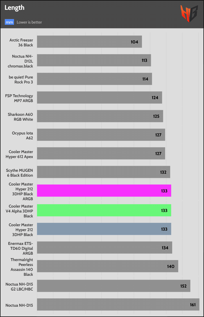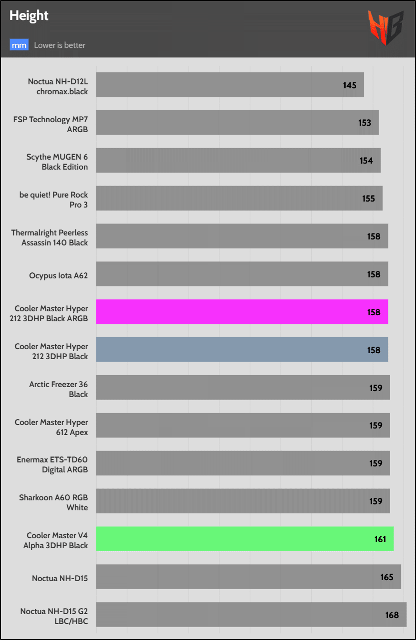 - Dimensions with fan (LxWxH): 133mm x 86mm x 158mm