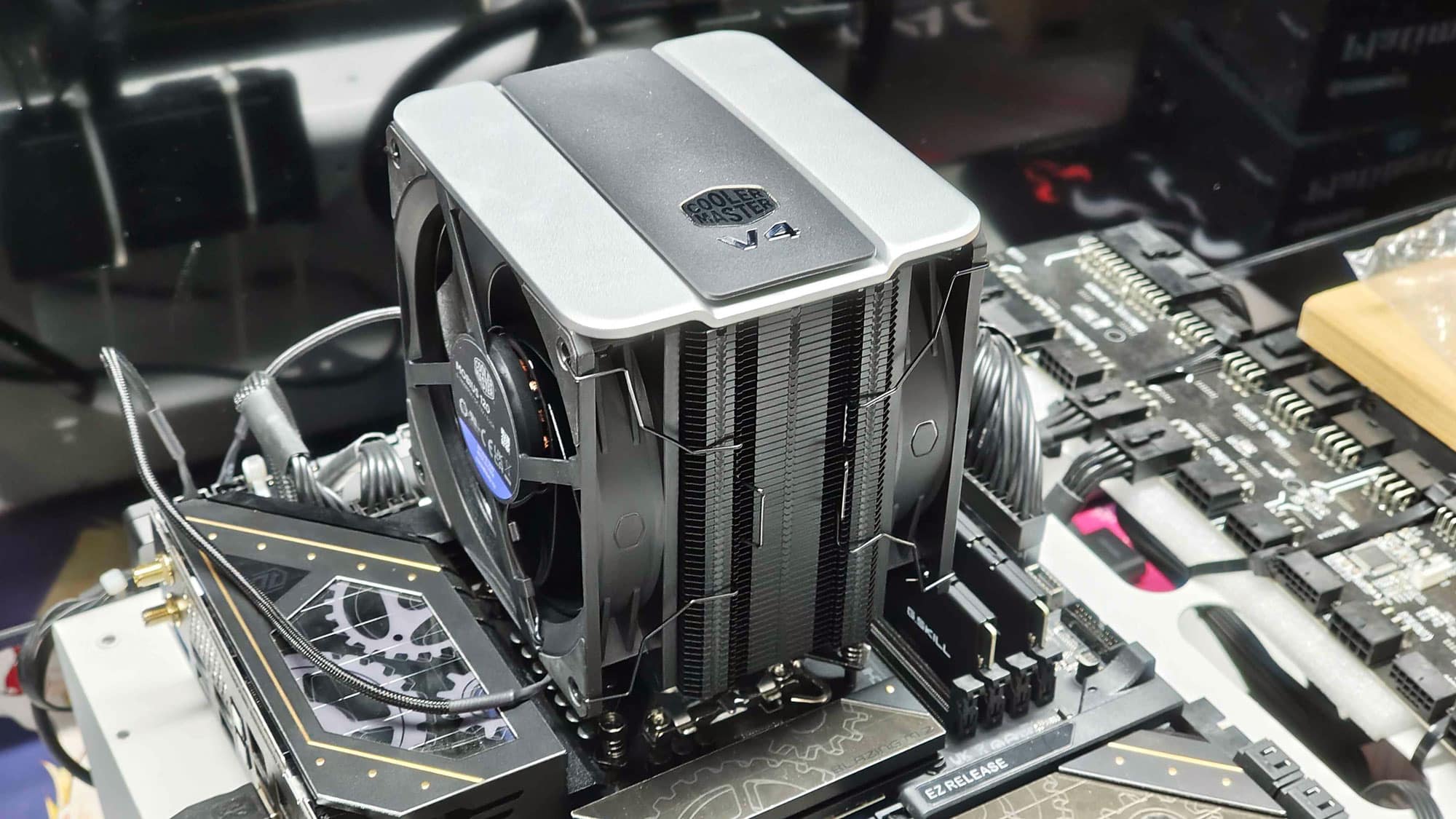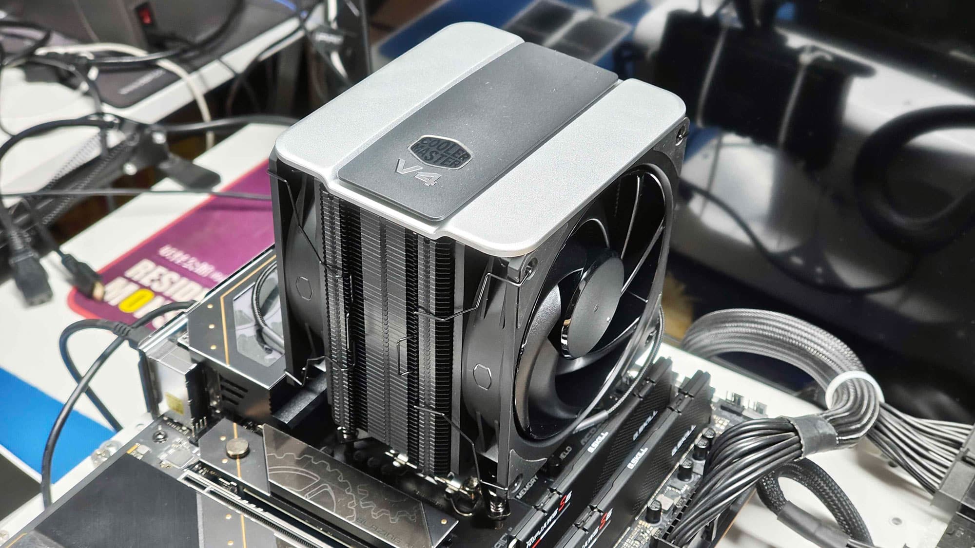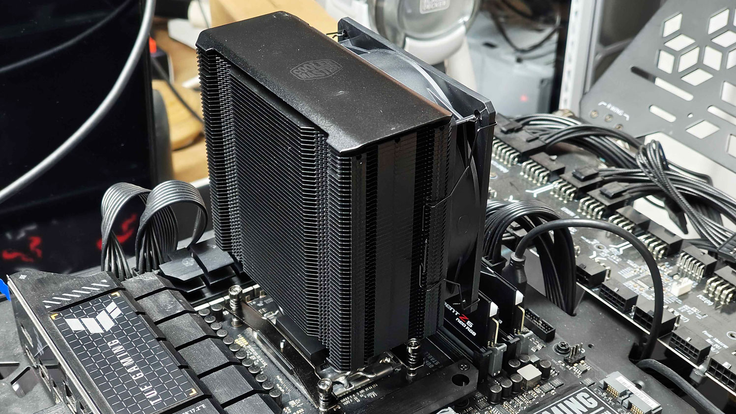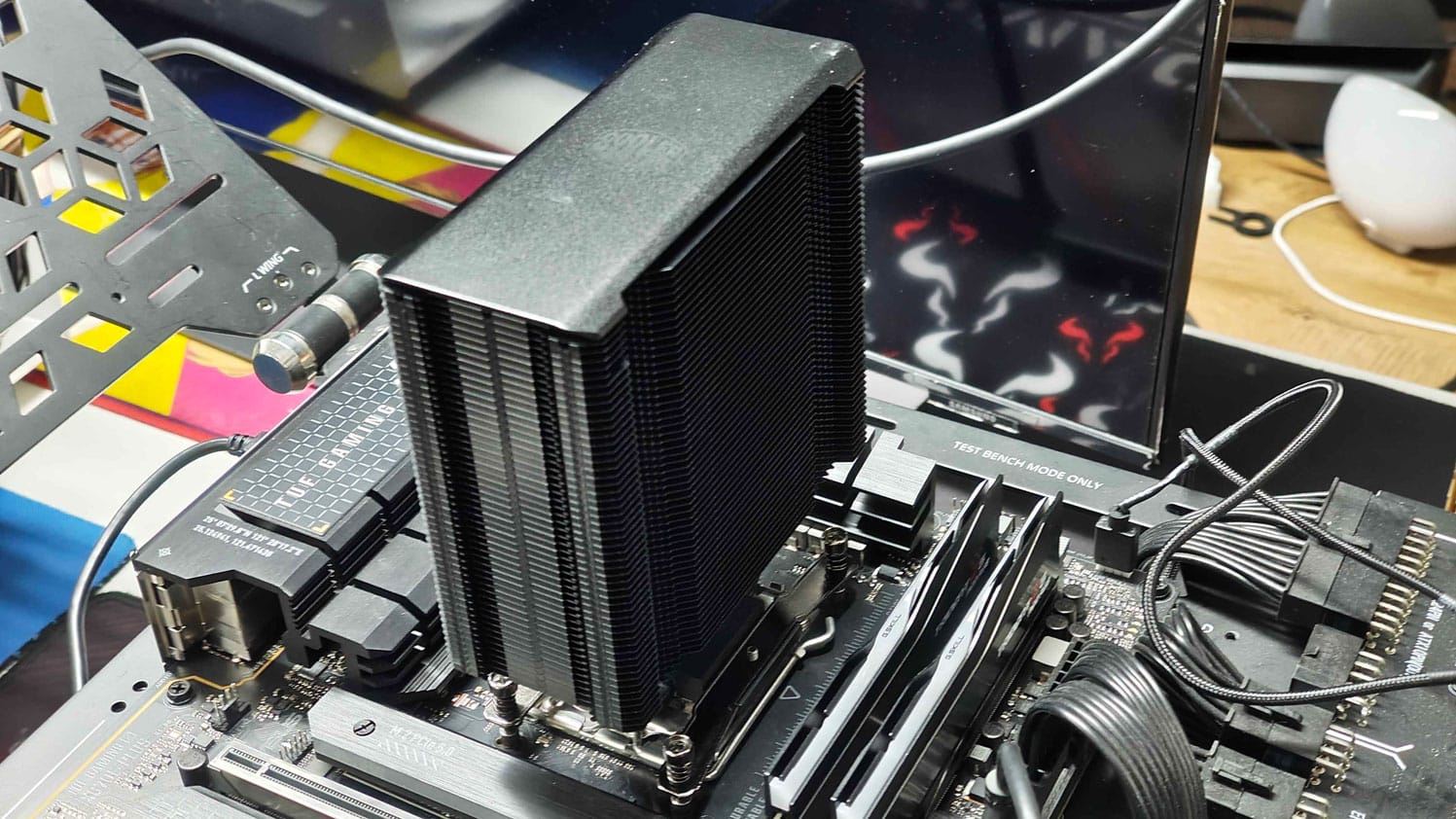 The process for the Intel system is always a bit more cumbersome, as you need to align the backplate while securing the heatsink. The good alignment of the thumbscrews with the backplate helped with the installation. However, other coolers that secure the brackets on the backplate and then the cooler to the brackets, make the installation on Intel even better. On the other hand, the design found here removes the load from the screws that mount the cooler to the brackets, as the arms sit above the cooler’s base and push it down on the CPU.