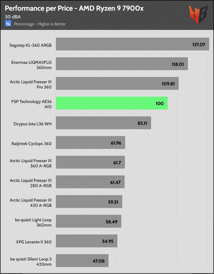 The FSP AE36 AIO is available at a bargain price in the European market, and its MSRP is also low in the US market, where, at the time of the review, I couldn’t find this product. Compared to the top-performing Arctic Liquid Freezer III Pro 360, which has a similar price in the US market, the performance difference on my Intel system was notable and chaotic in the AMD system. The only asset that the AE36 has to offer over the Arctic Liquid Freezer III Pro 360 is the ARGB lighting, which is also available in the more expensive model, costing $94 (while the non-ARGB goes for $85).