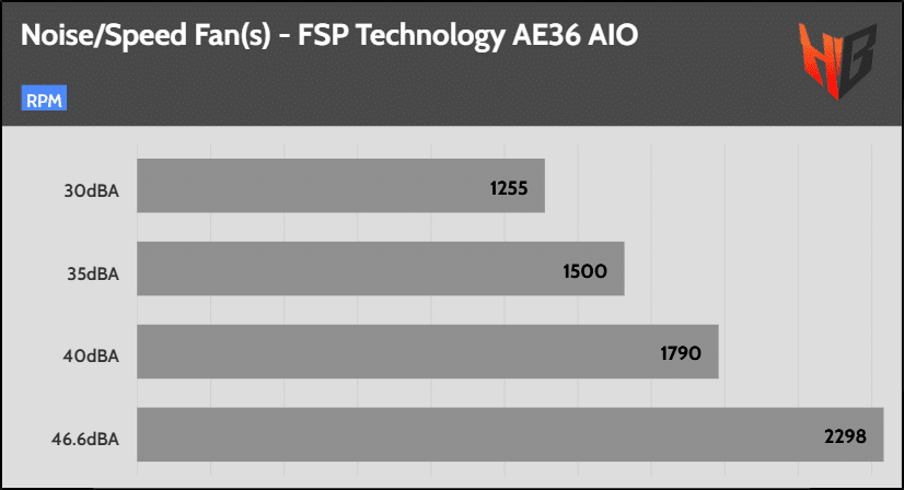 For these tests, I set the cooler’s fan(s) to speeds with noise output at the following predefined levels: 20/25/30/35/40 dBA. I skip the corresponding tests if the cooler’s fan(s) cannot reach some noise levels. Finally, I include a test where the cooler’s fan(s) spins at full speed.