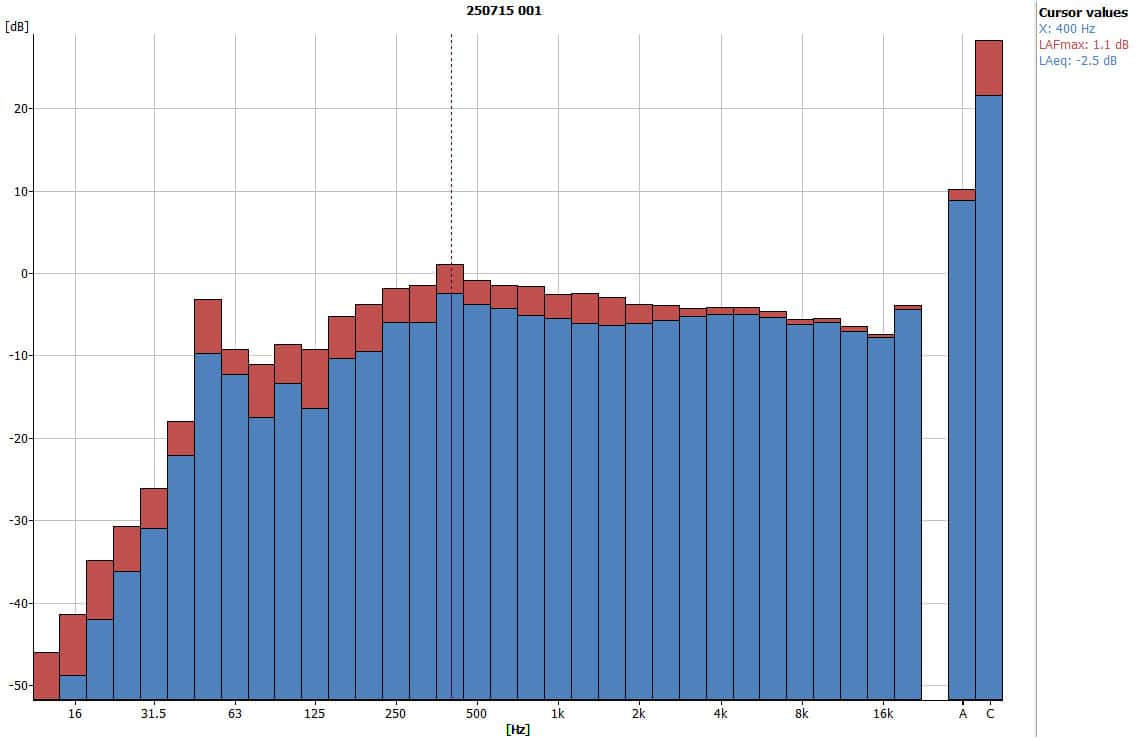 - Peak frequency: 400 Hz