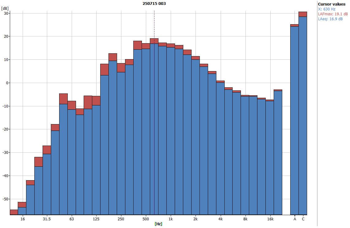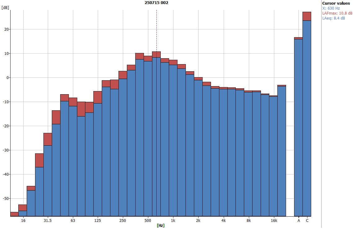 - Peak frequency: 630 Hz