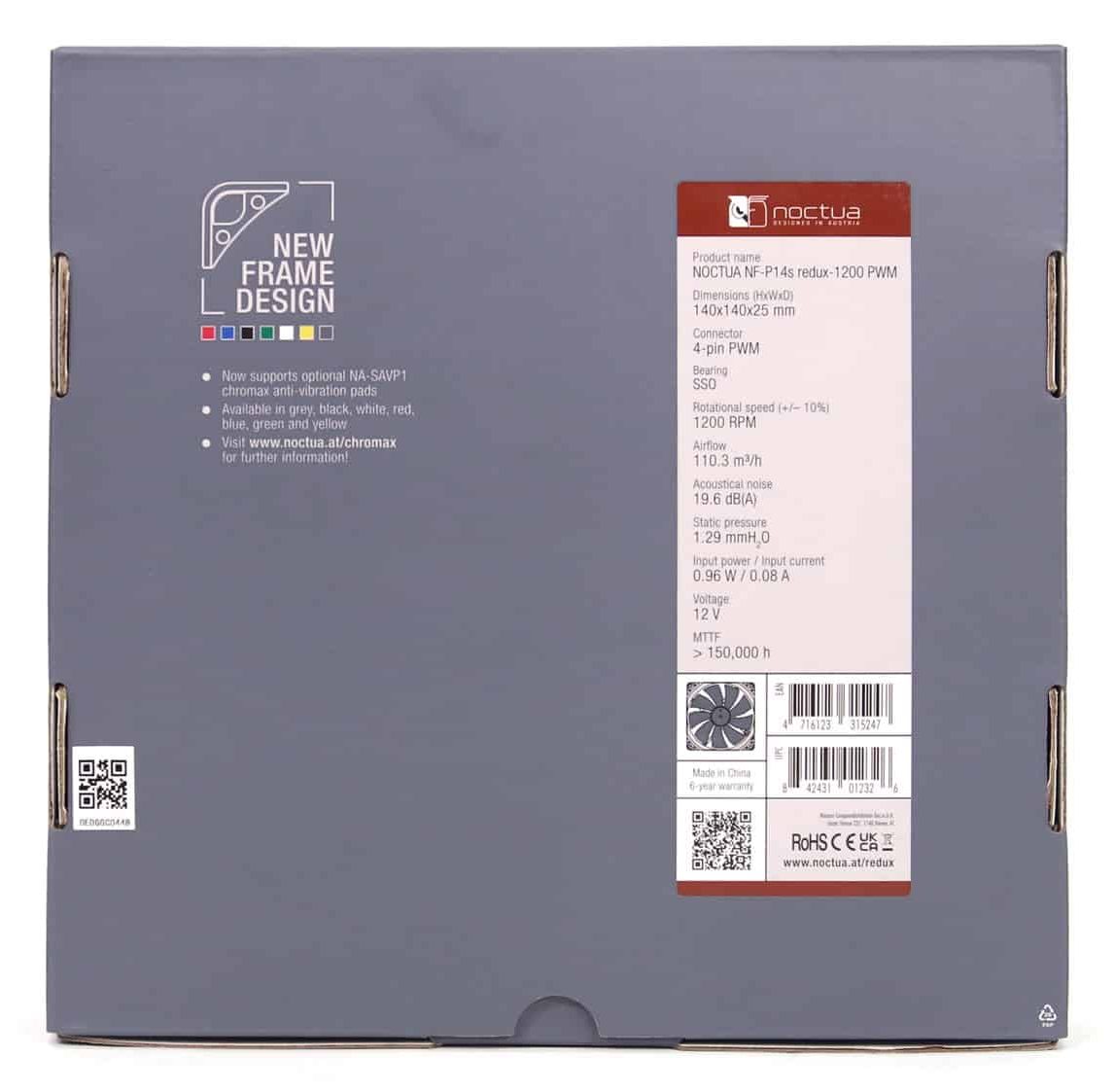 The box lacks photos of the product, instead featuring the model number and a sticker on the back side that displays the technical specs. The same sticker has a tiny image of the fan! What matters most is that it offers sufficient protection to the product.
