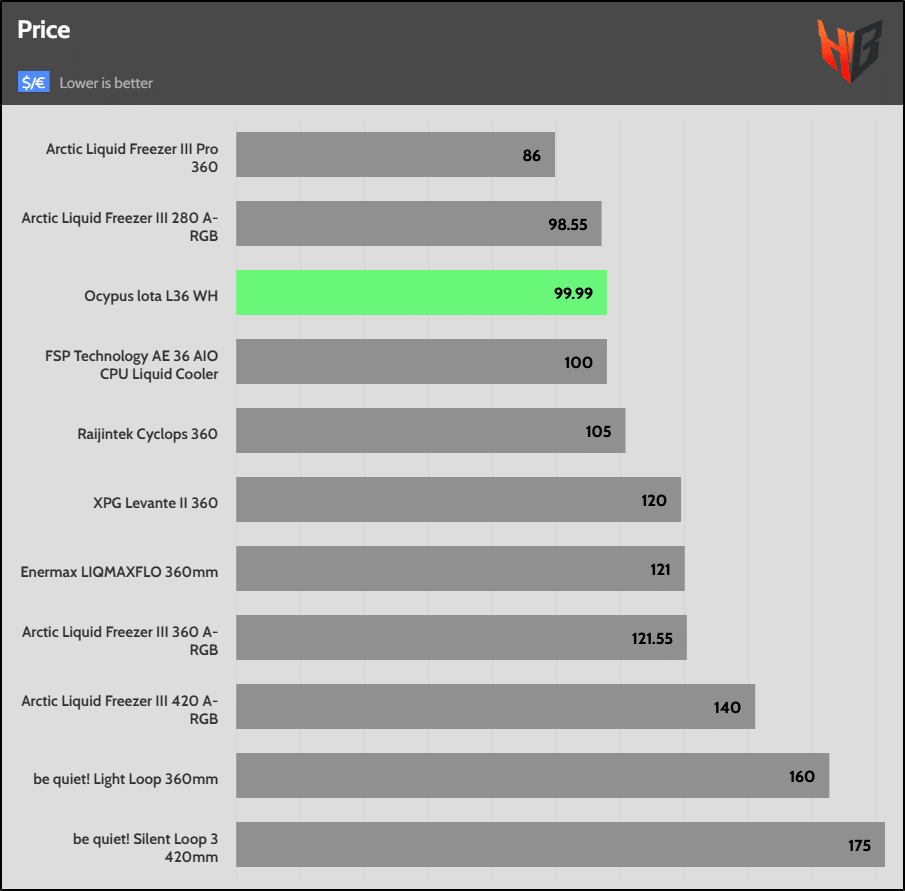 The Ocypus Iota L36 360 is offered at a good price, but it cannot match the performance of the Arctic Liquid Freezer III Pro 360. Additionally, the latter is even more affordable, making it a no-brainer if you want a capable and high-performance 360mm AIO.