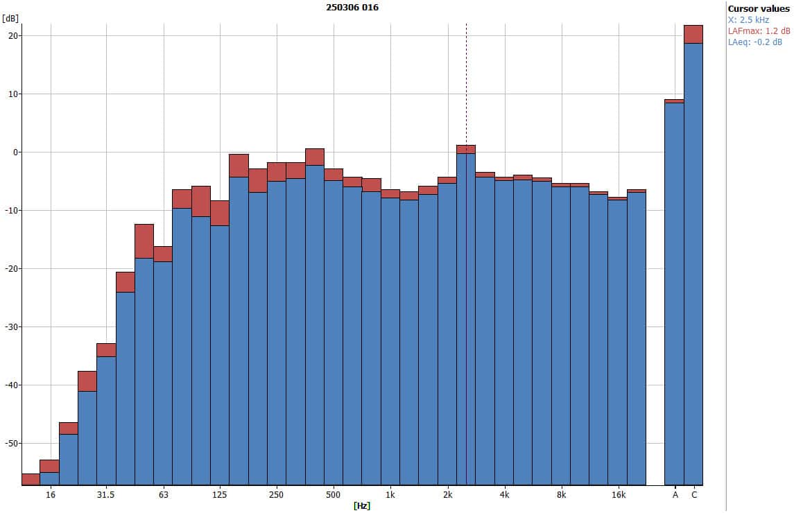 - Peak frequency: 2.5 kHz