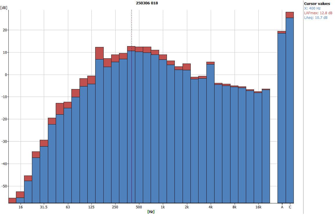 - Peak frequency: 400 Hz