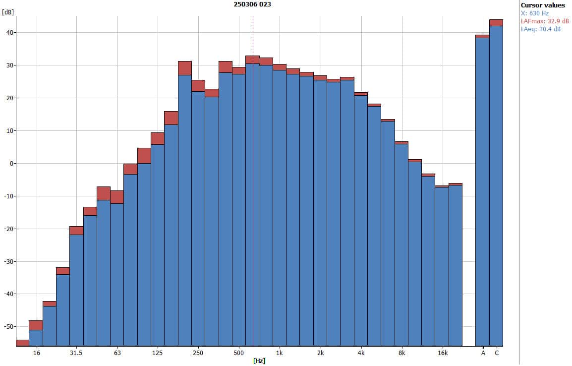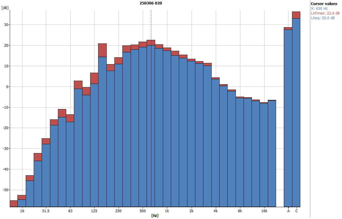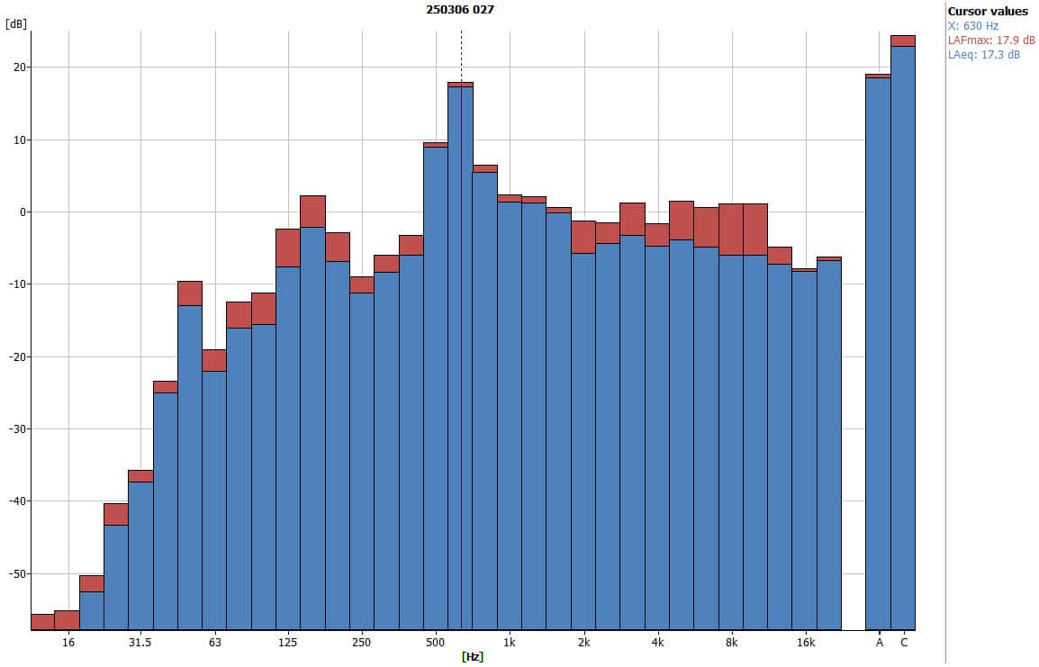 - Peak frequency: 630 Hz