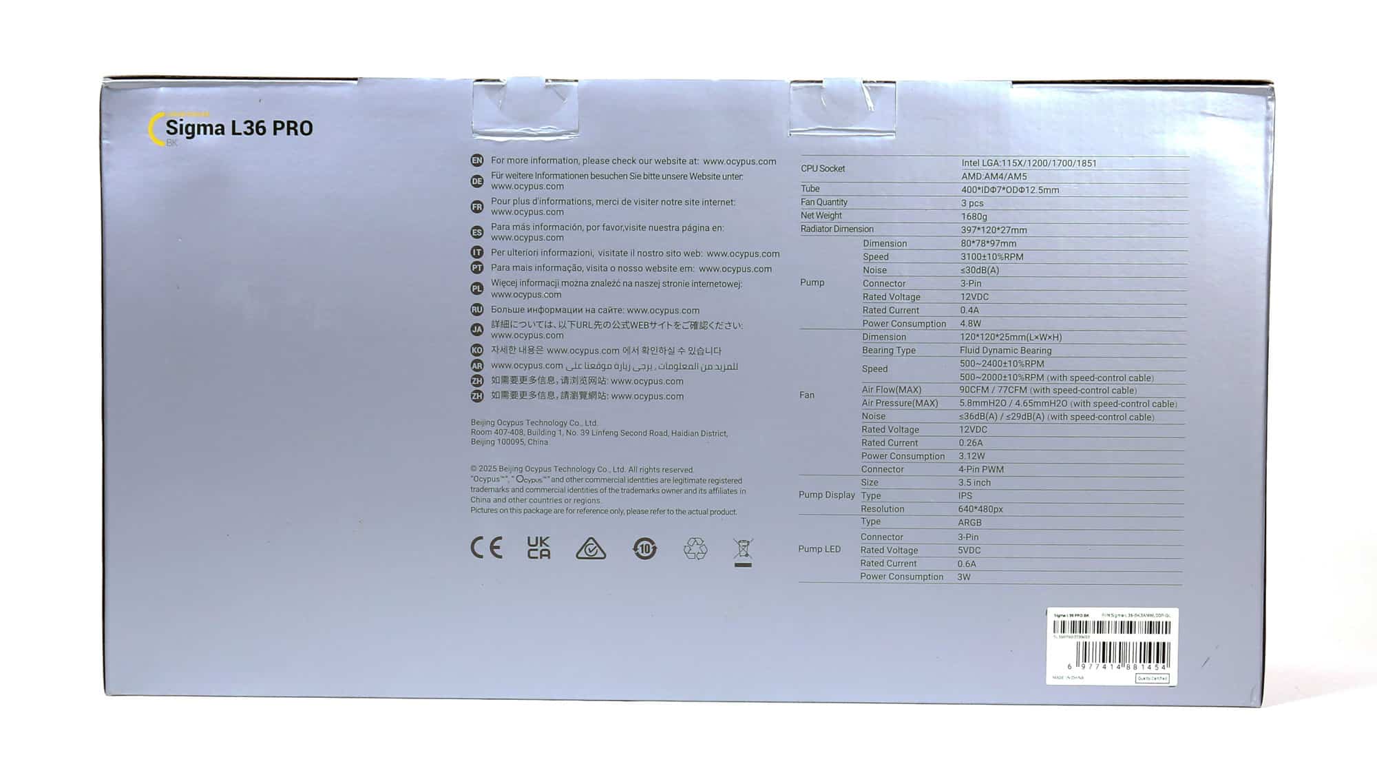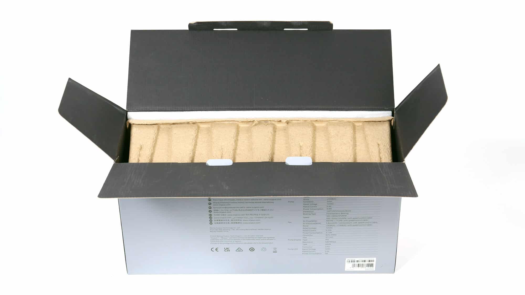The box features a photo of the AIO on its face. Around the back, you will find the product’s technical specifications.