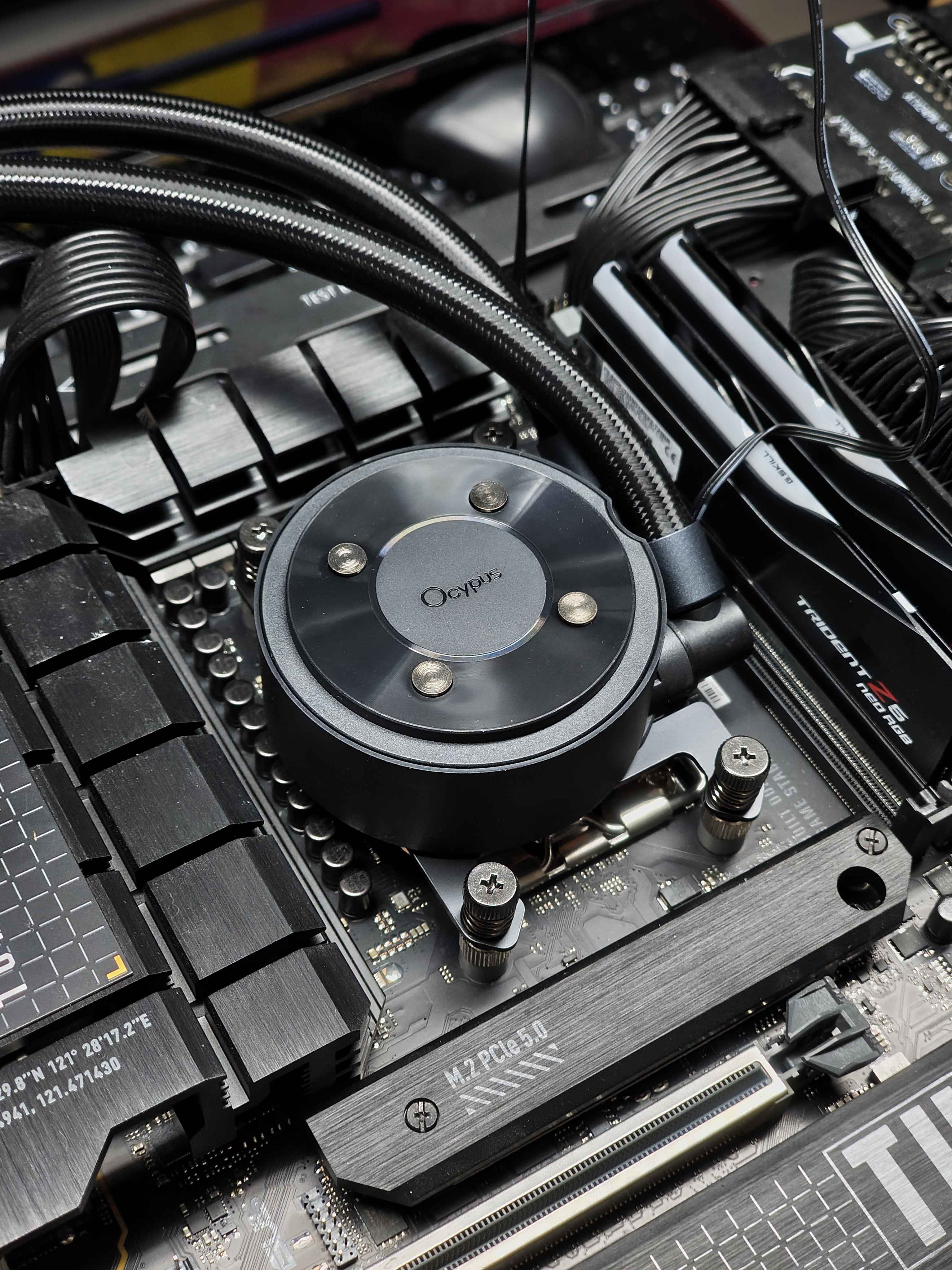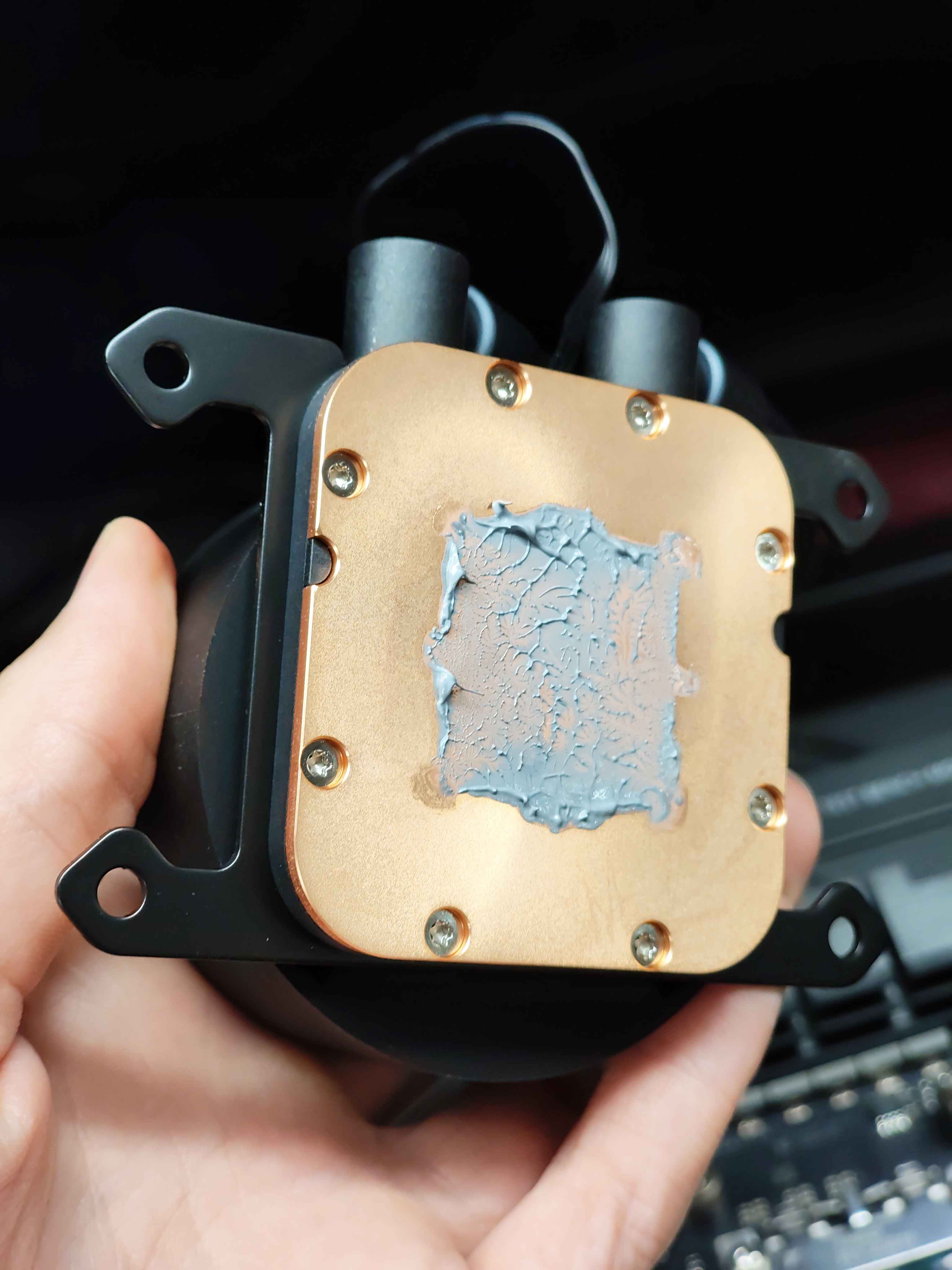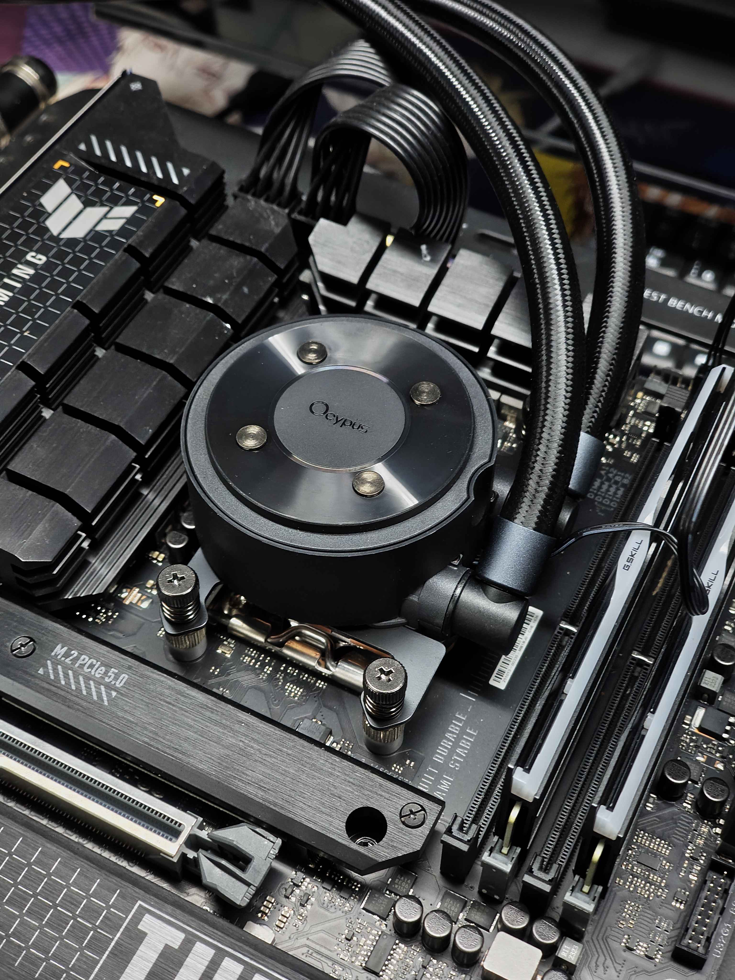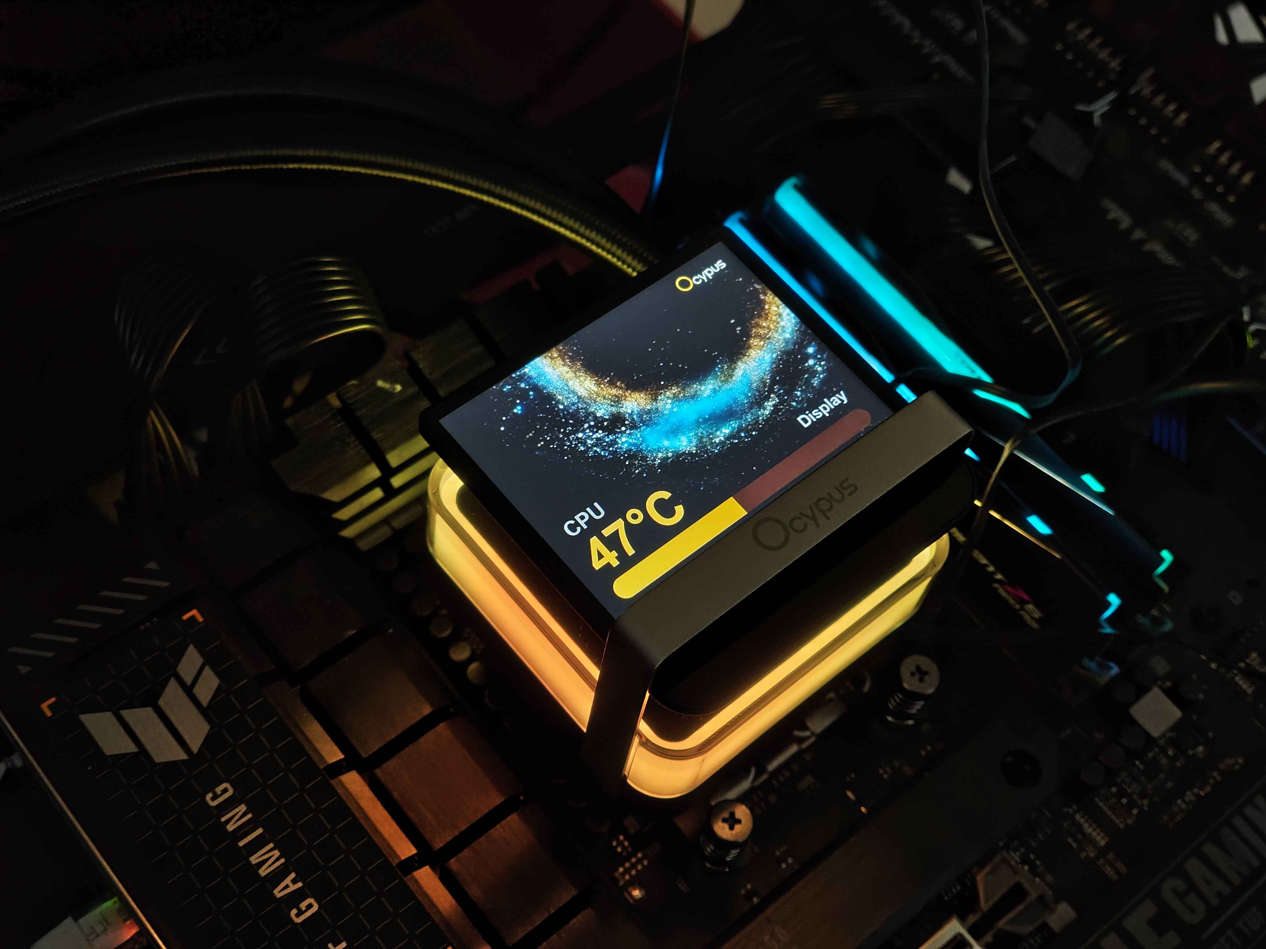 The installation consists of two parts. First, the correct mounting hardware has to be installed on the pump. Then, the proper AMD stand-offs are installed on the motherboard. The pump is aligned on them and screwed in place with thumbscrews. The tightening of the screws is completed with a screwdriver. There is clear feedback when the thumbscrews are fully seated. Then, the screen attaches on top with four magnets that help it align. The screen features a 5V ARGB Gen 2 connector for the LEDs located directly behind it, as well as a 9-pin USB 2.0 header for powering and configuring the display.