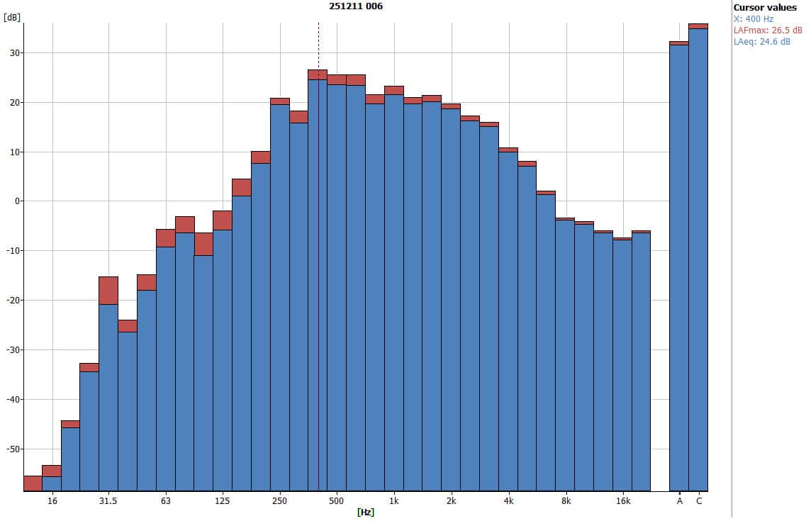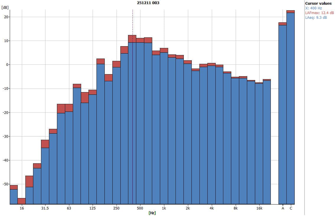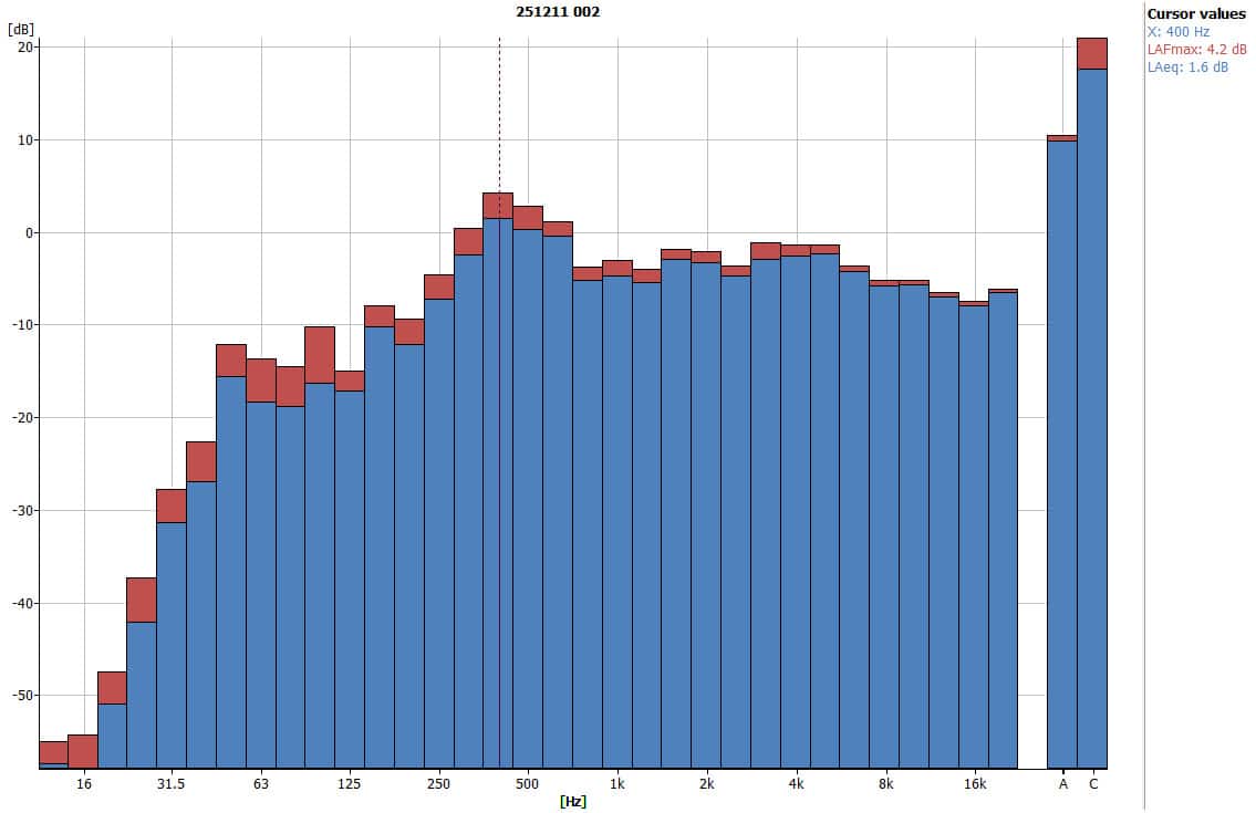 - Peak frequency: 400 Hz