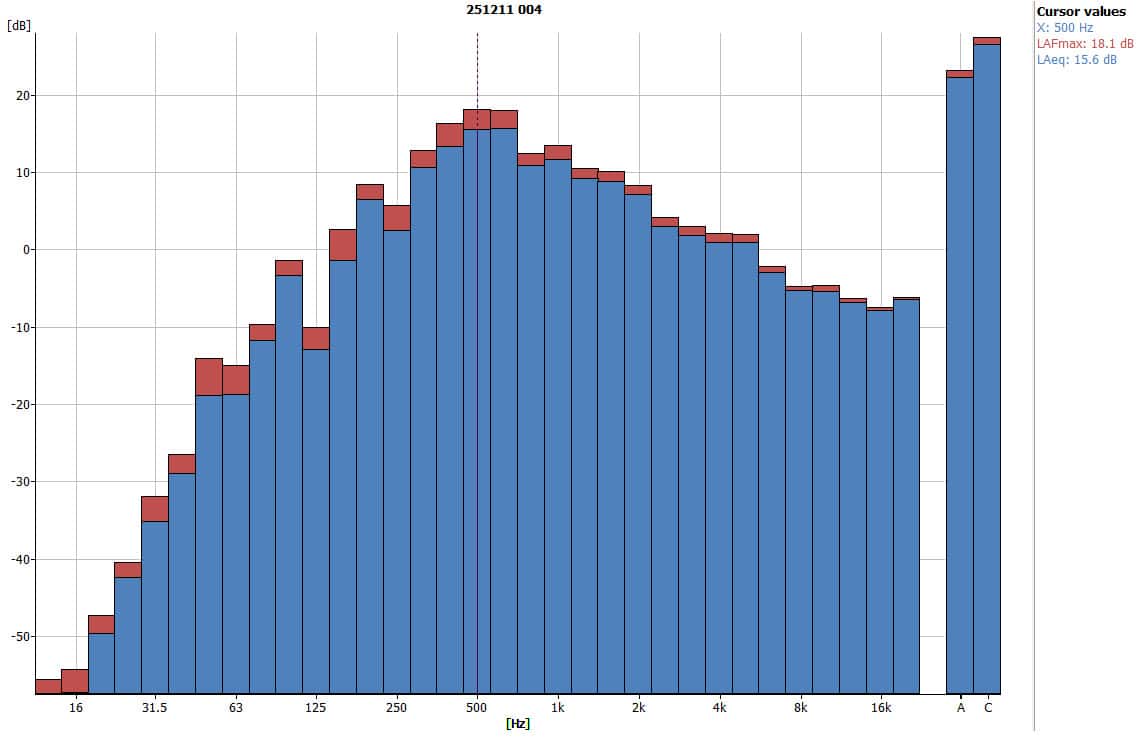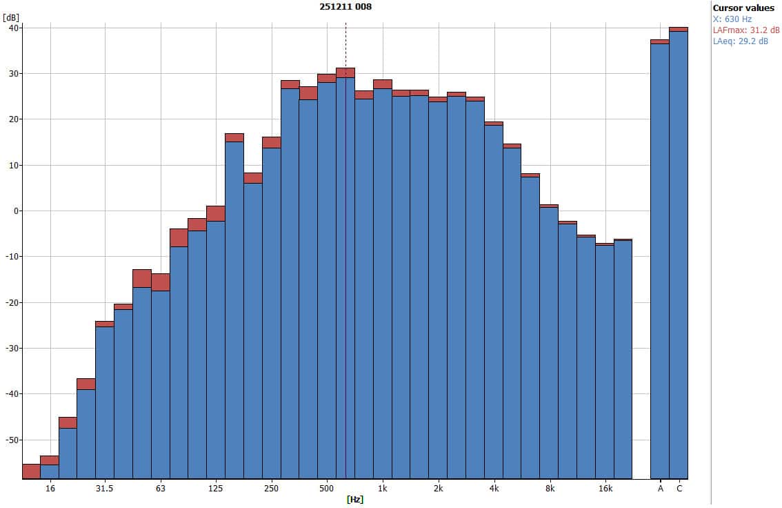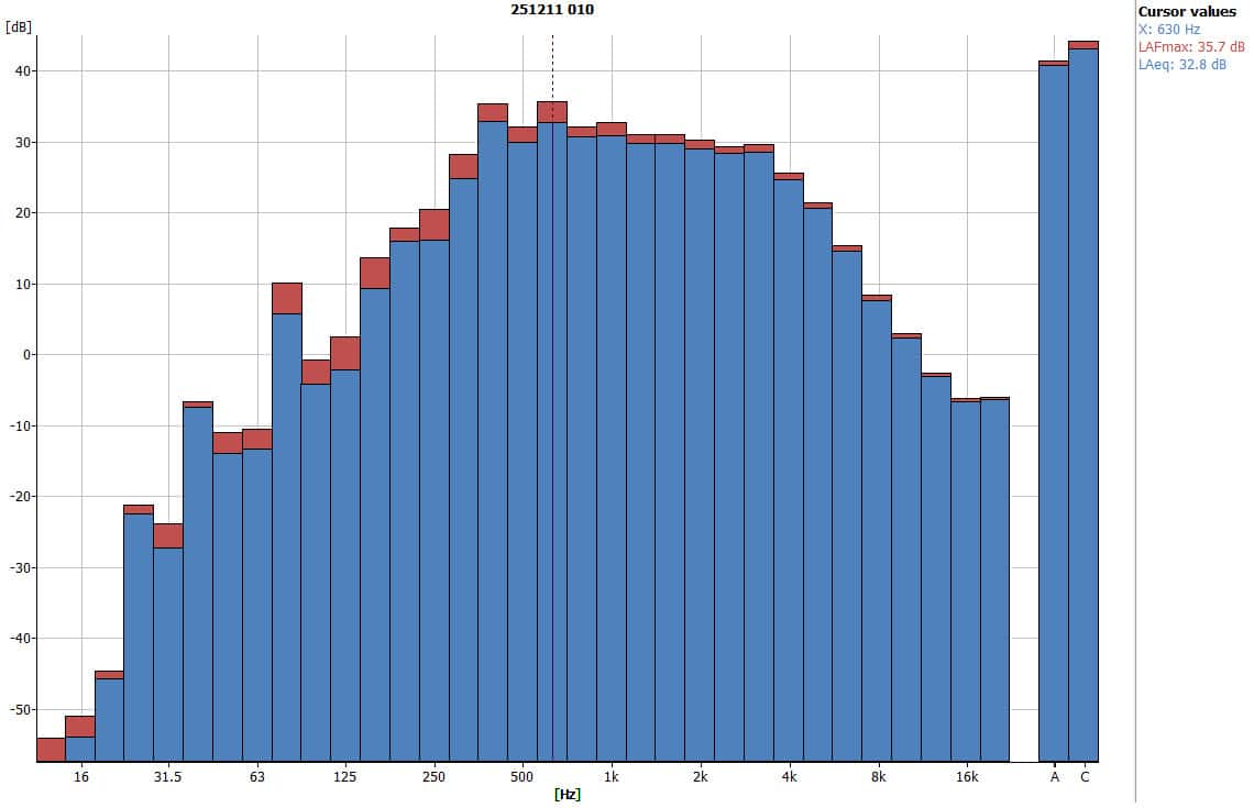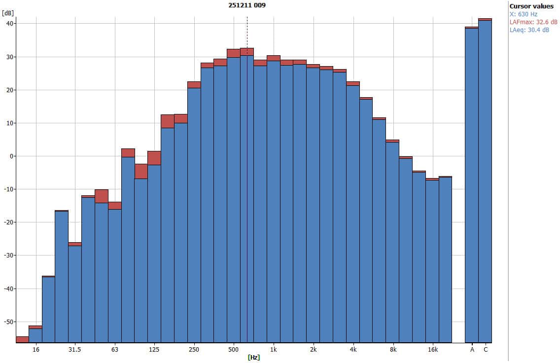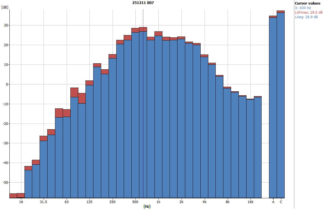 - Peak frequency: 630 Hz