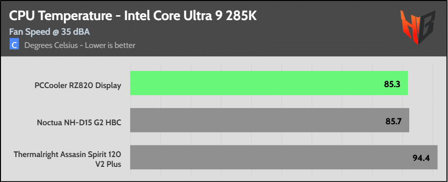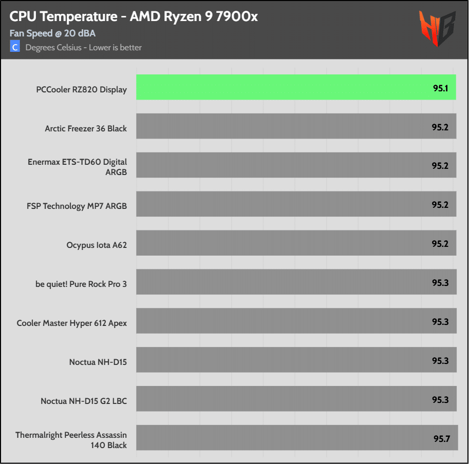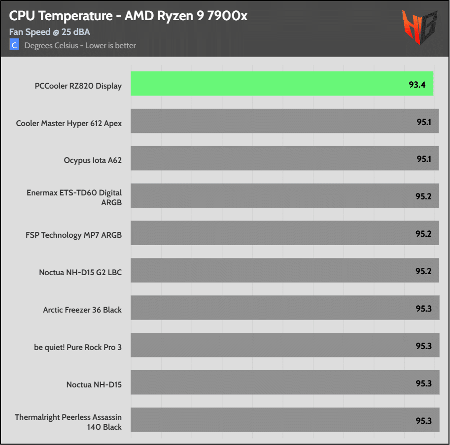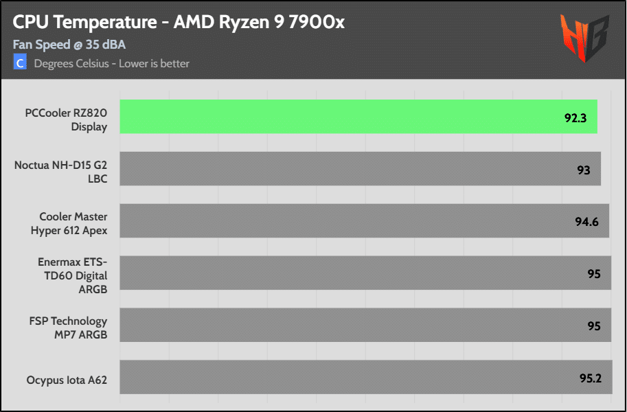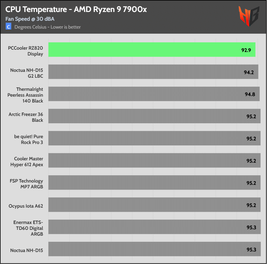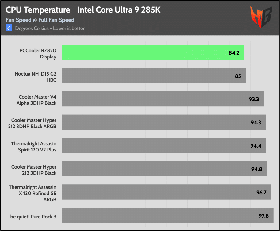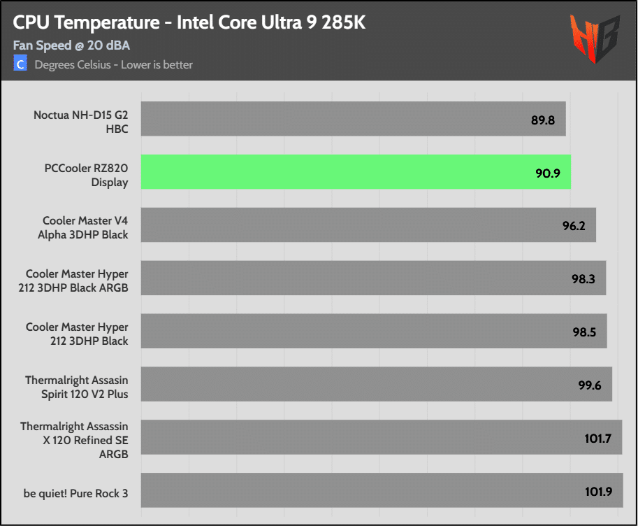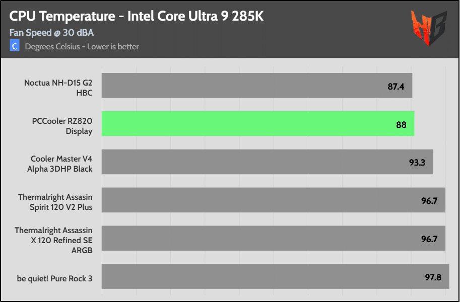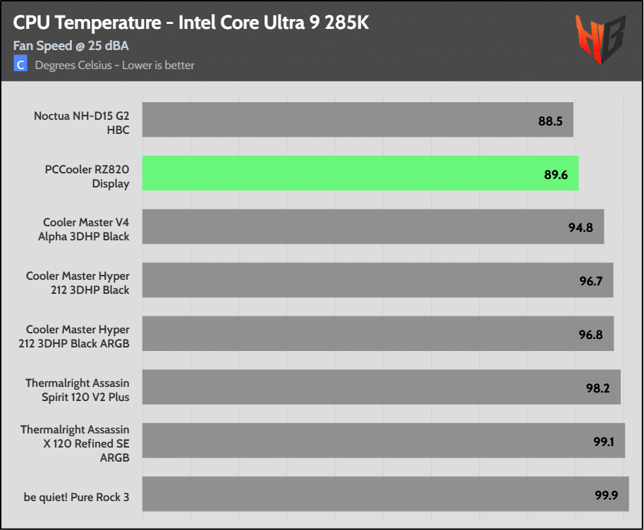 On the Intel platform the super-expensive NH-D15 G2 HBC leads the pack in temperatures, but the difference is relatively low.