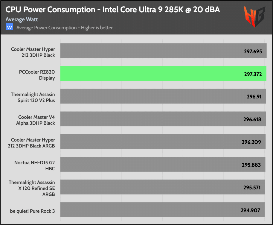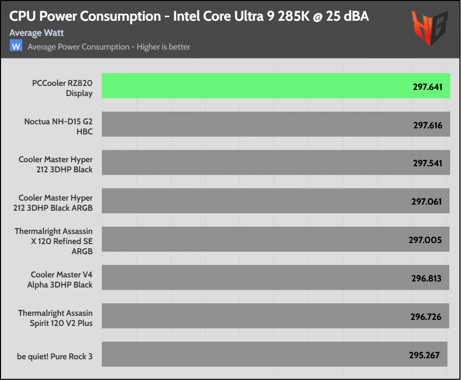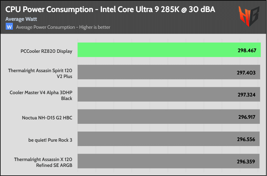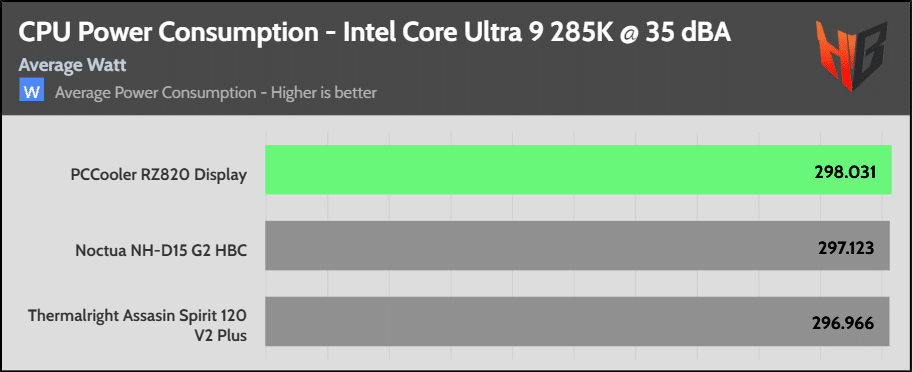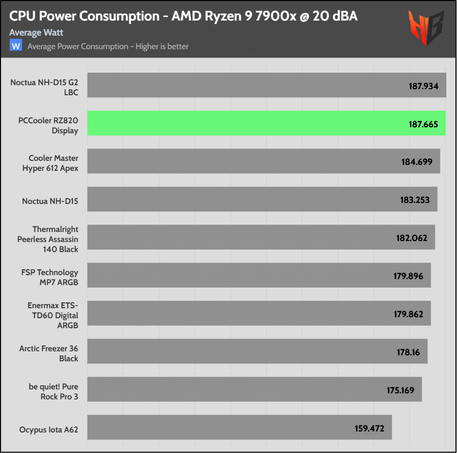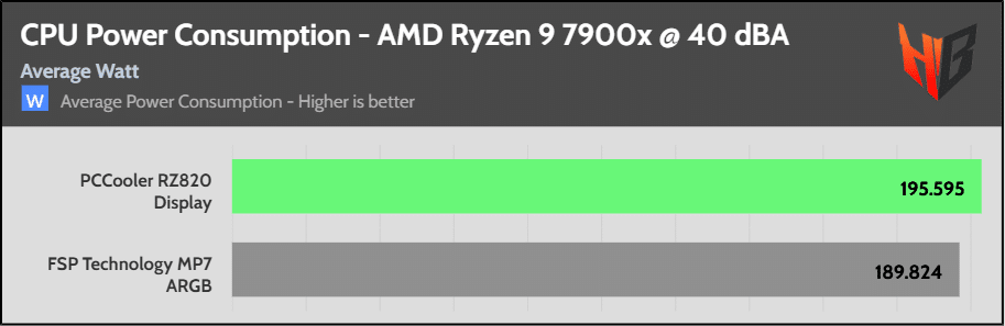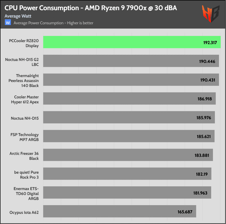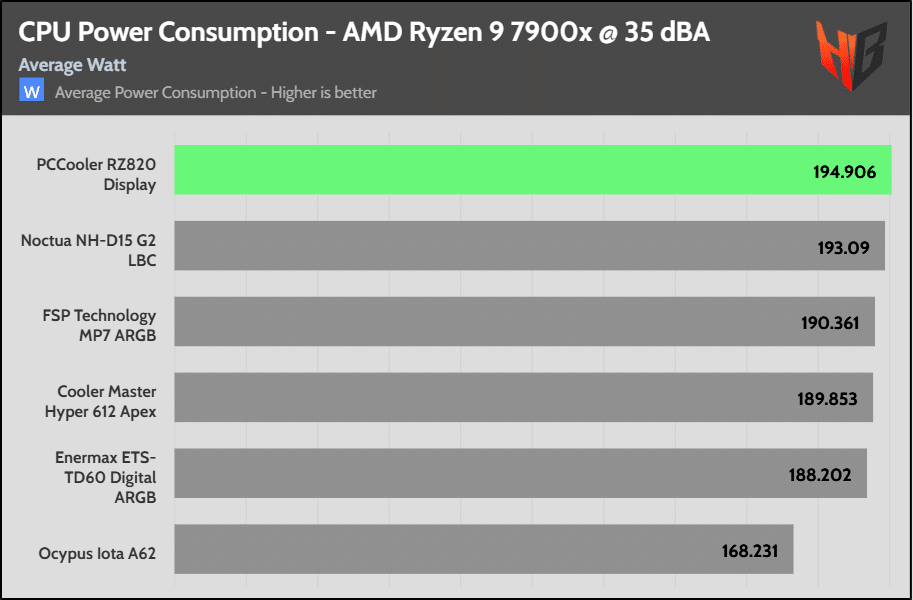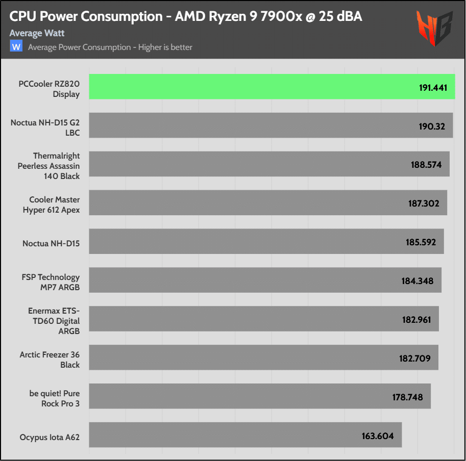 High CPU power consumption indicates that the cooler is effective, allowing for a higher CPU thermal limit, which in turn results in a higher energy draw from the CPU.
