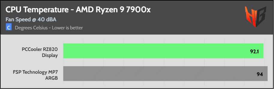 The AMD CPU temperatures are among the lowest we’ve seen compared to other air coolers we have tested so far. The differences are low, though, because this is how this platform typically operates. It pushes the CPU to the maximum allowed temperature, adjusting power consumption and frequency accordingly to keep operating temperatures under control.