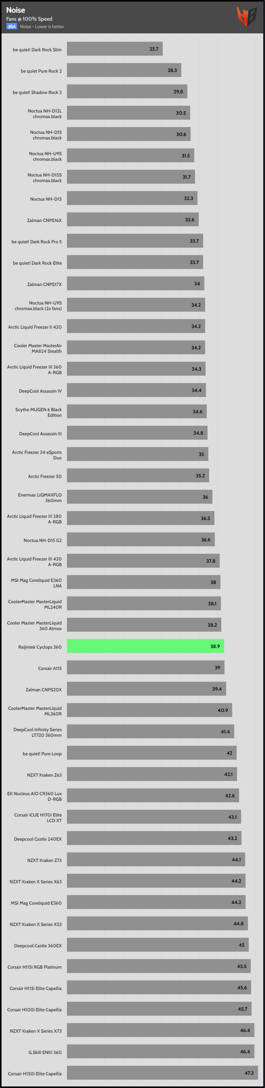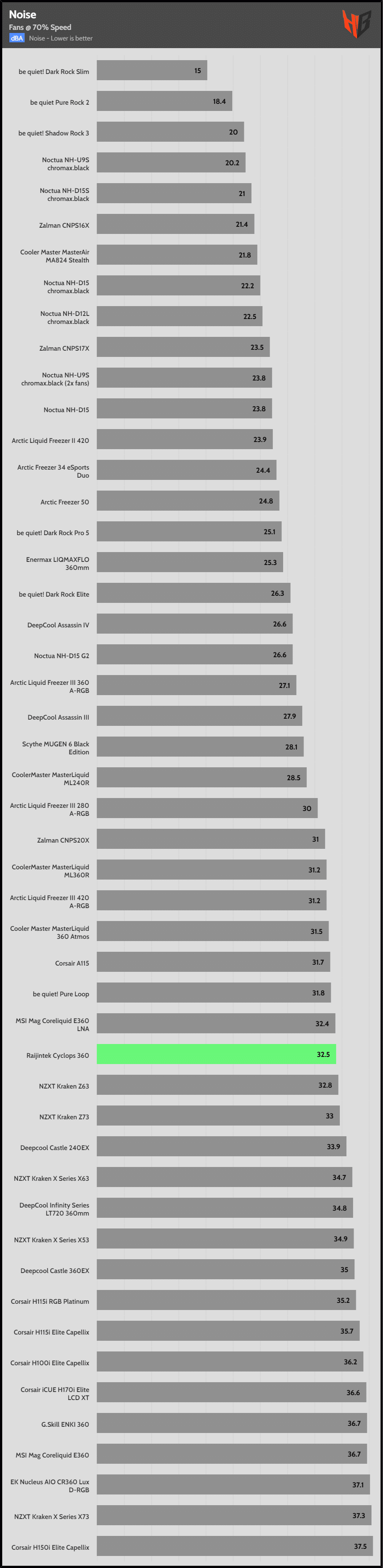 The AIO is noisy at full speed and not so quiet at 70% speed.