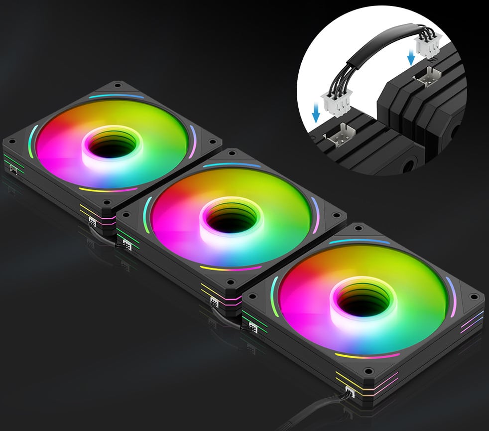 Daisy-chaining these fans is easy and it effectively addresses the cable clatter issue.