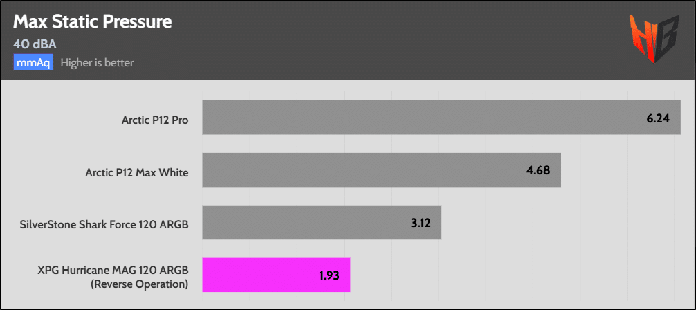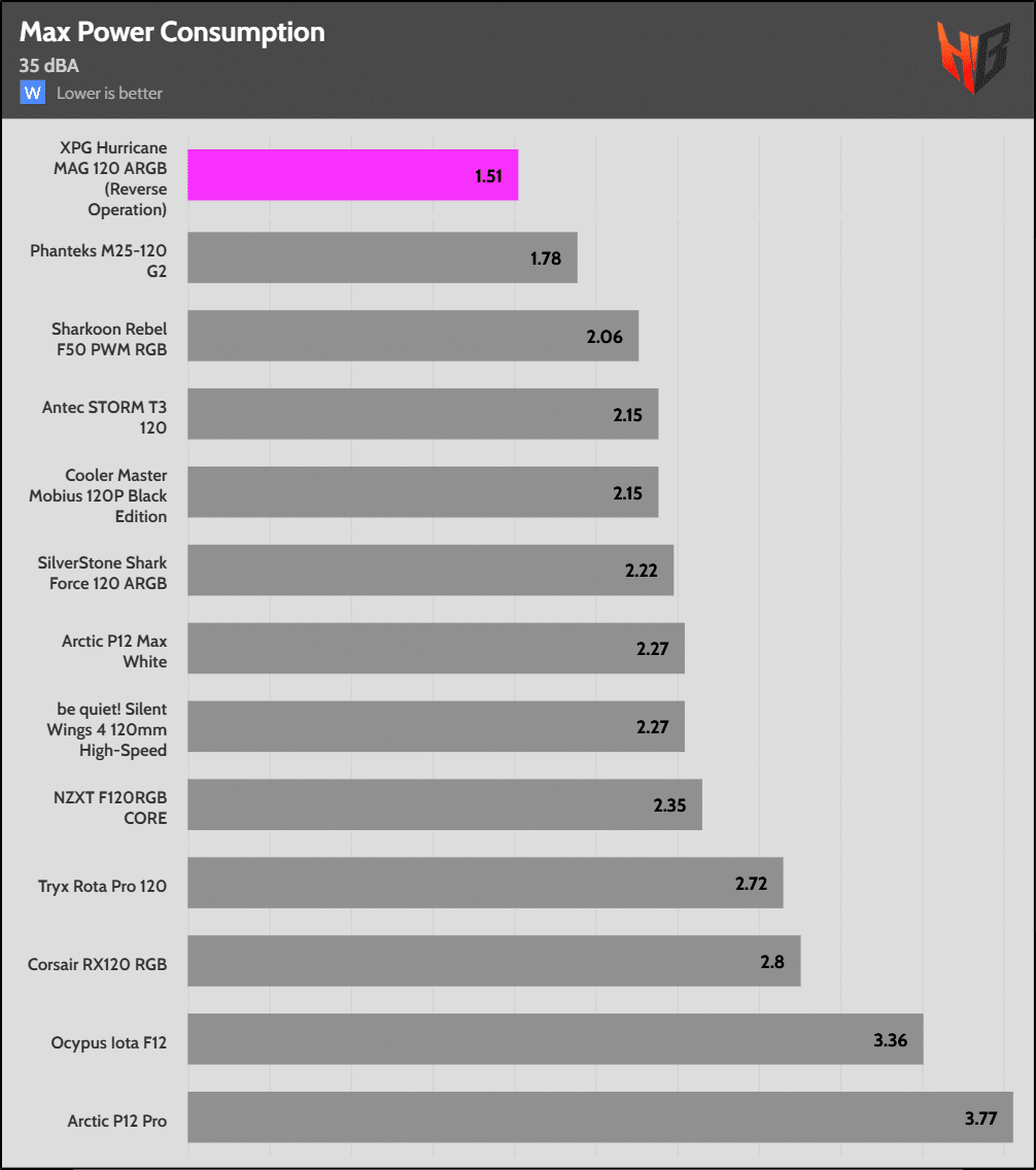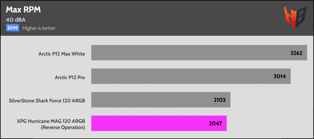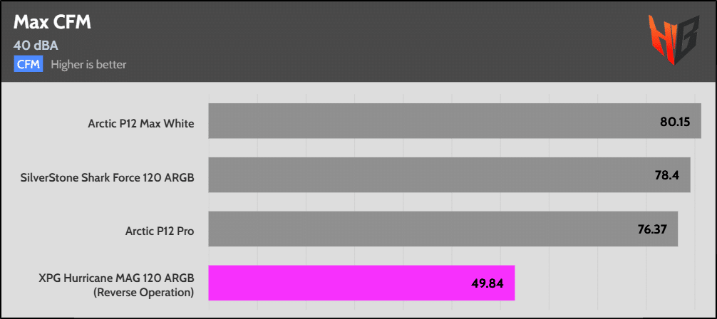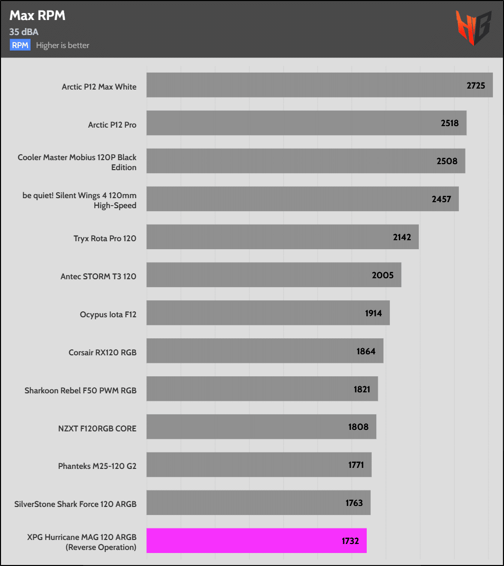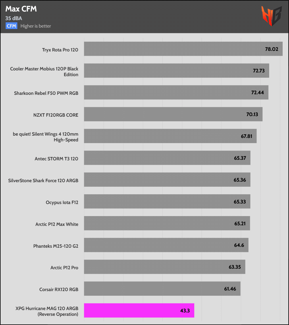In reverse, the fan is notably noisier, so it extends to more normalized noise levels.