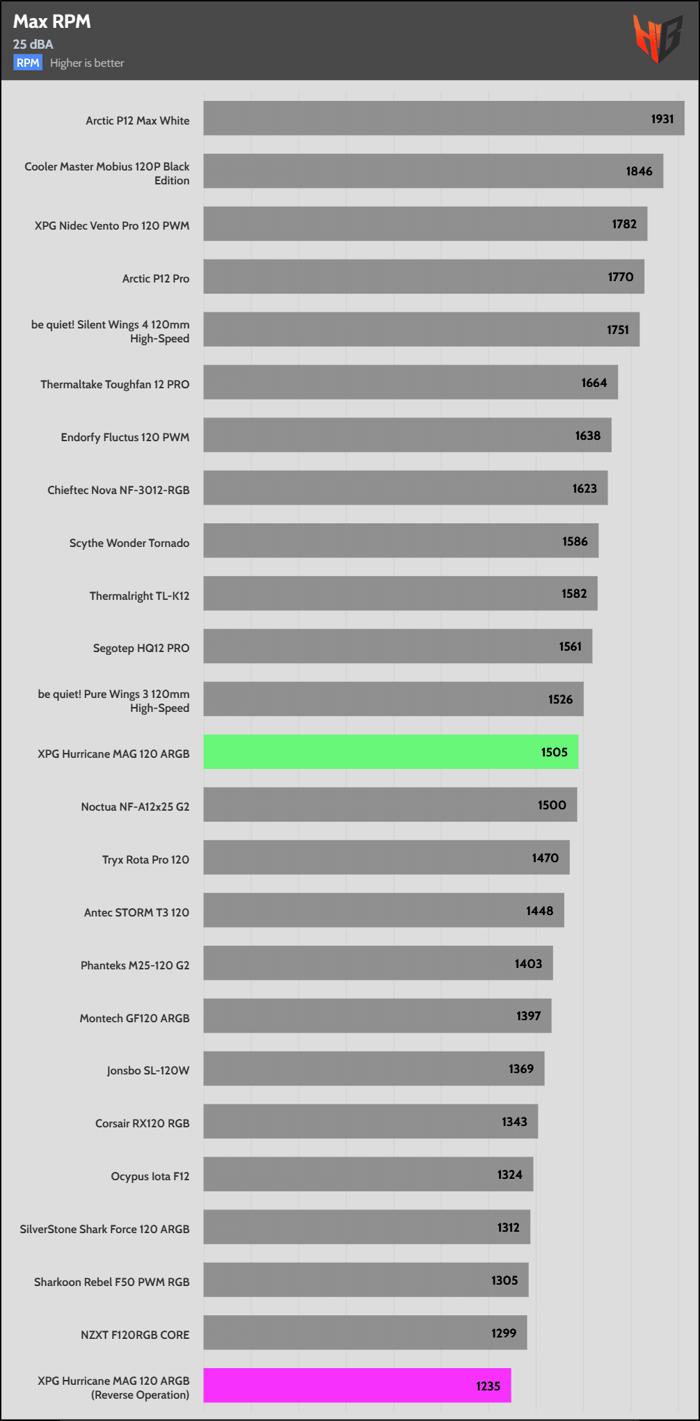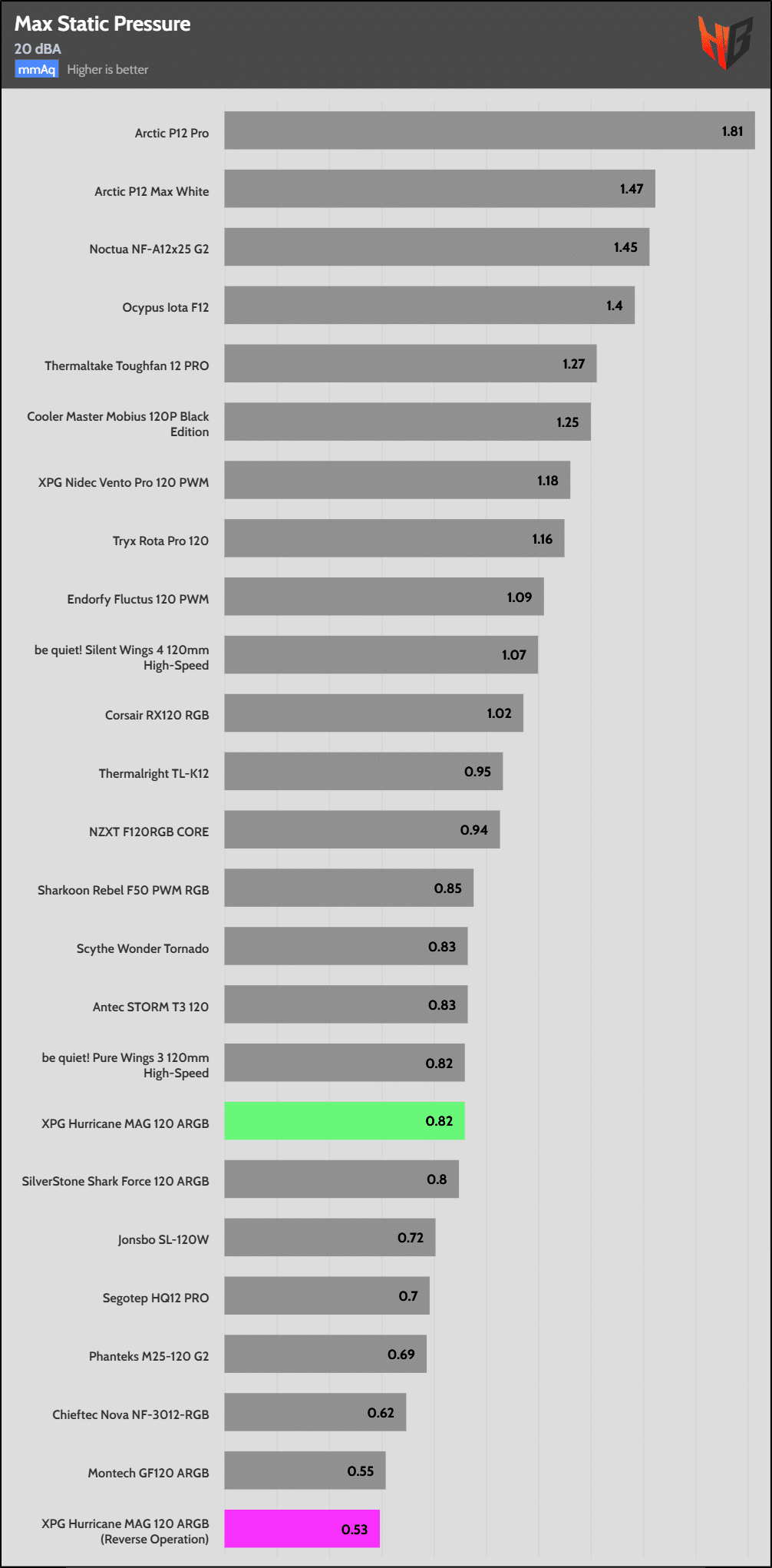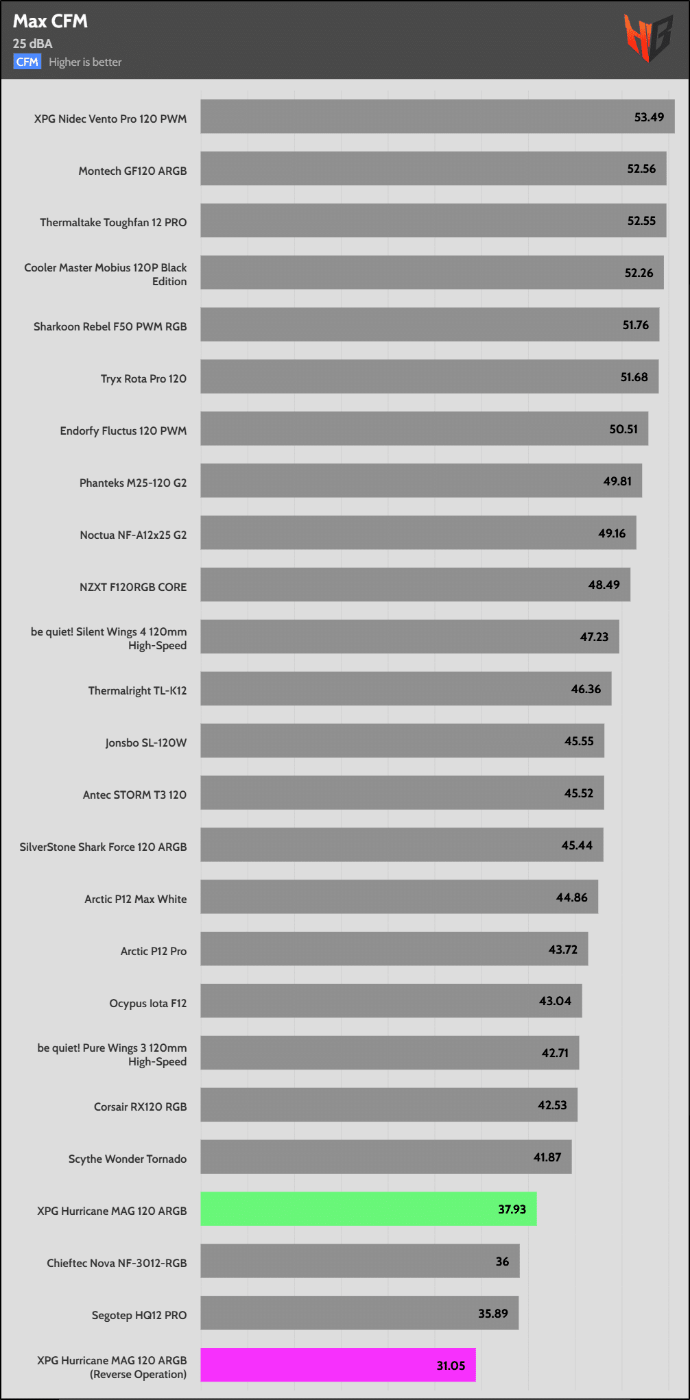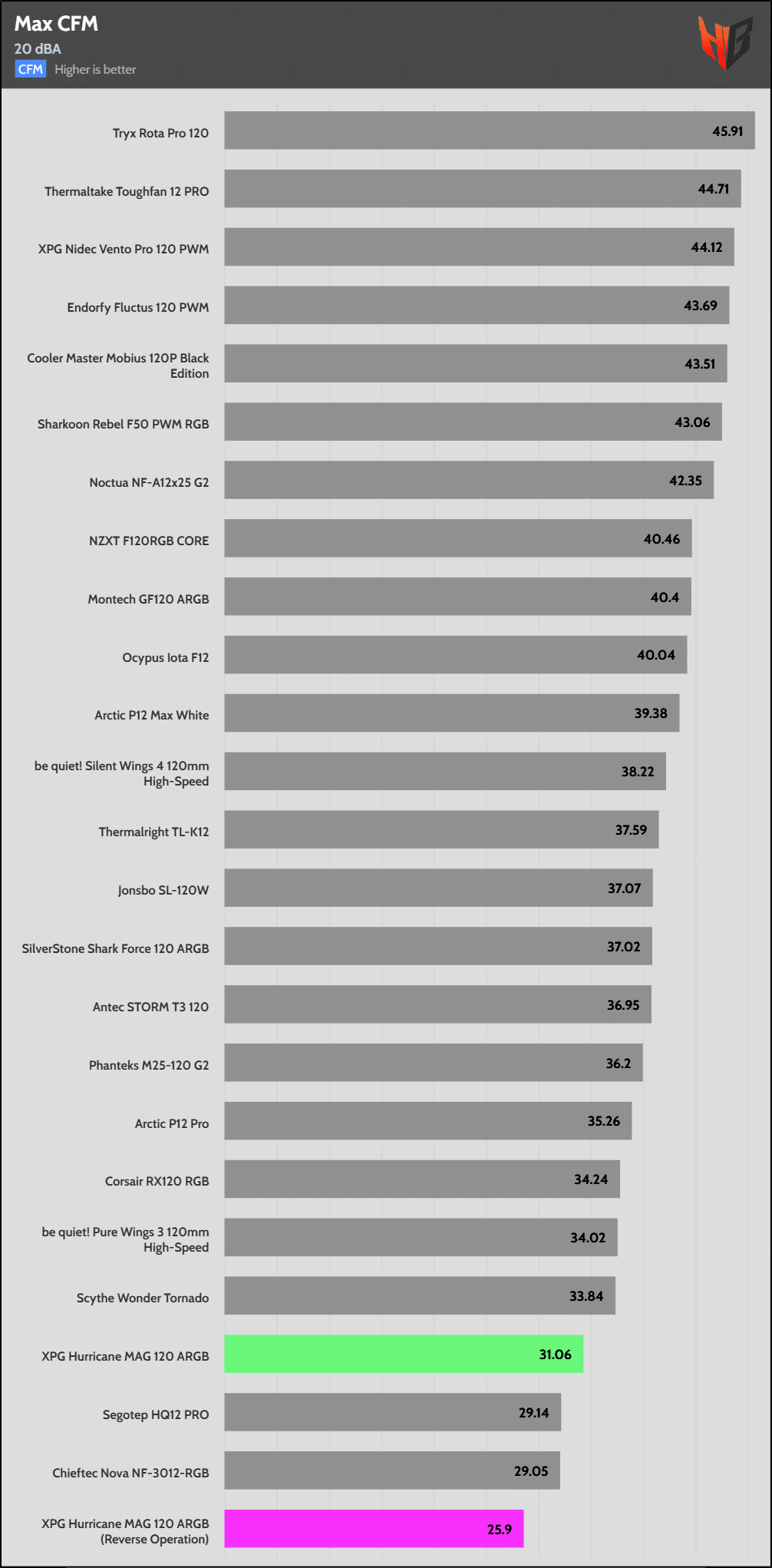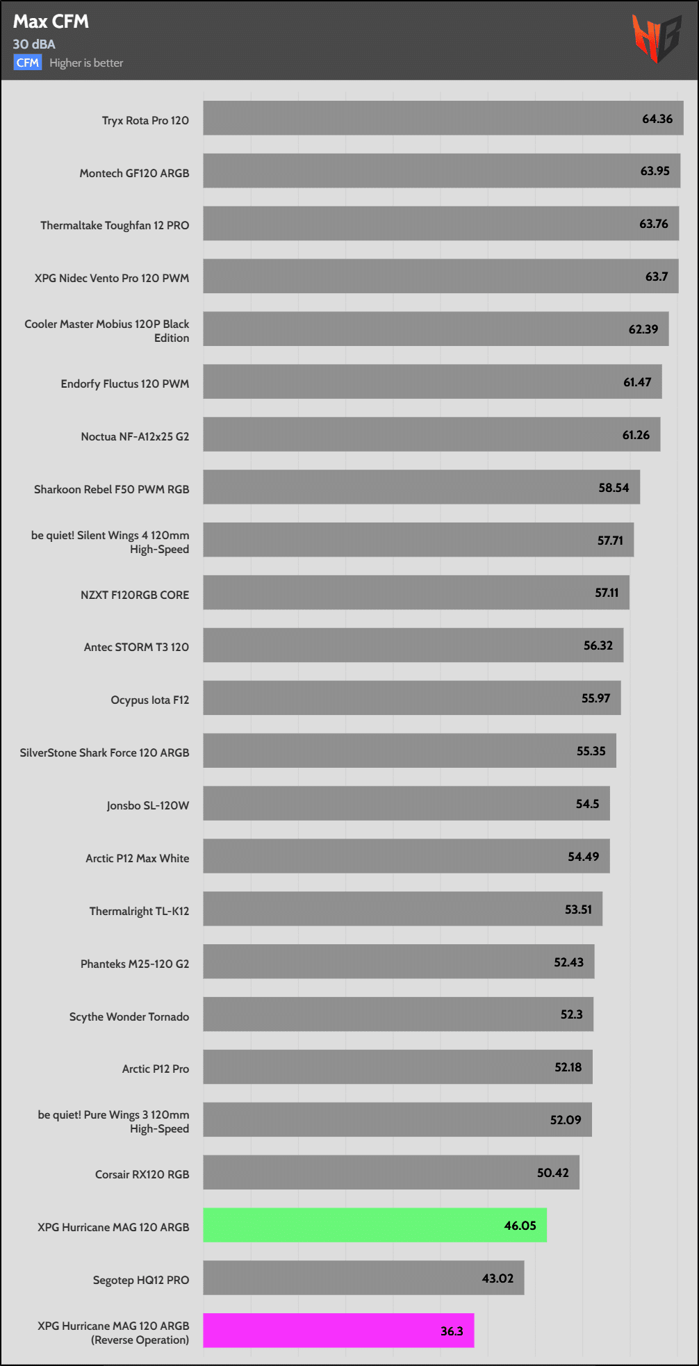 In reverse, the fan is notably noisier, so it extends to more normalized noise levels.