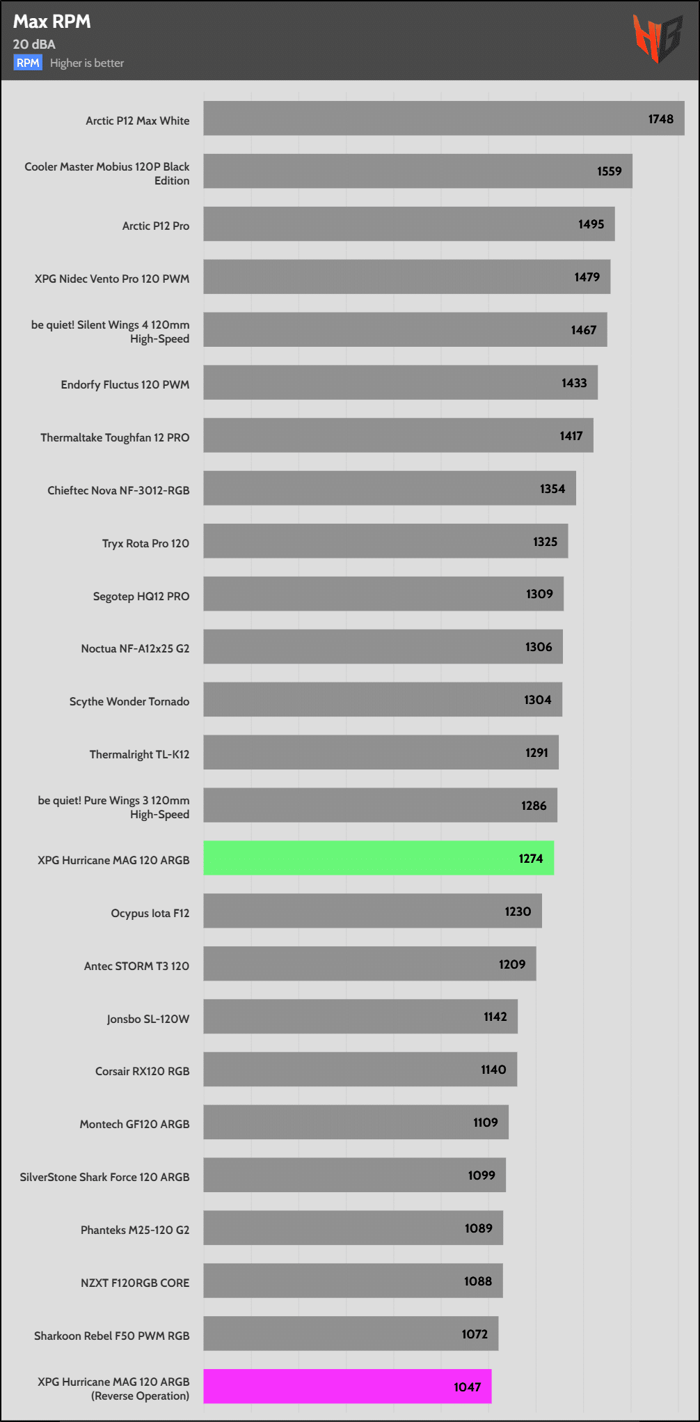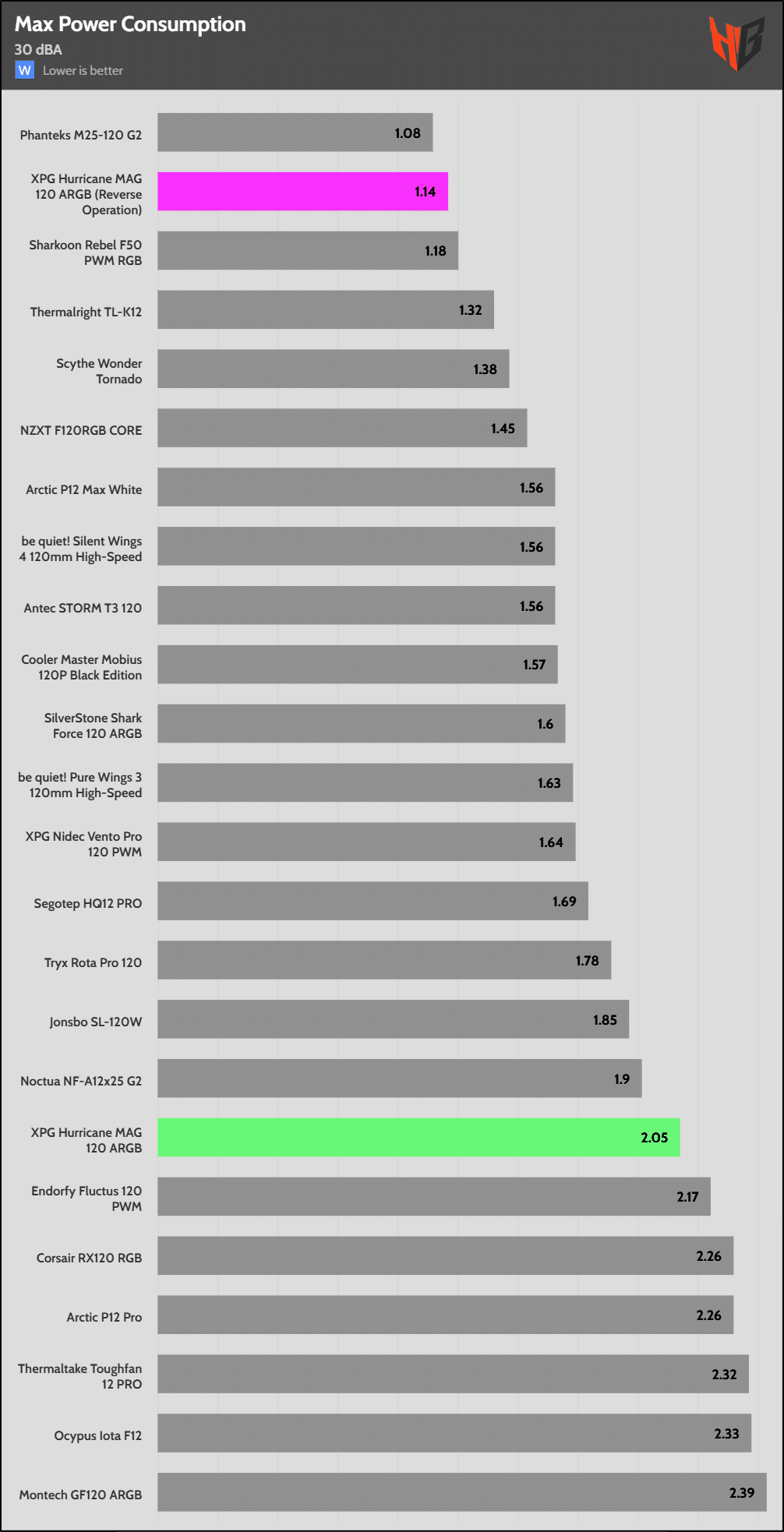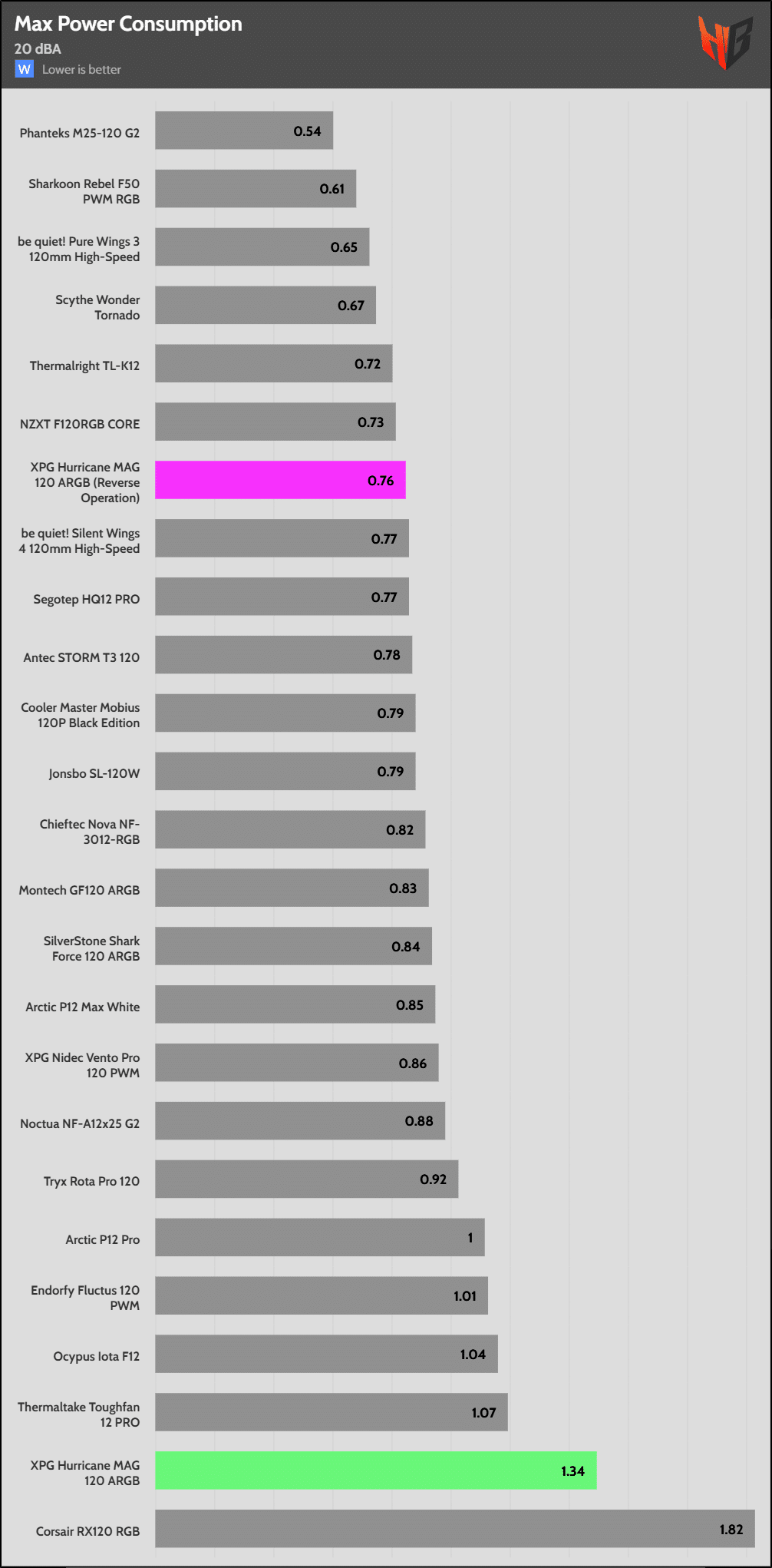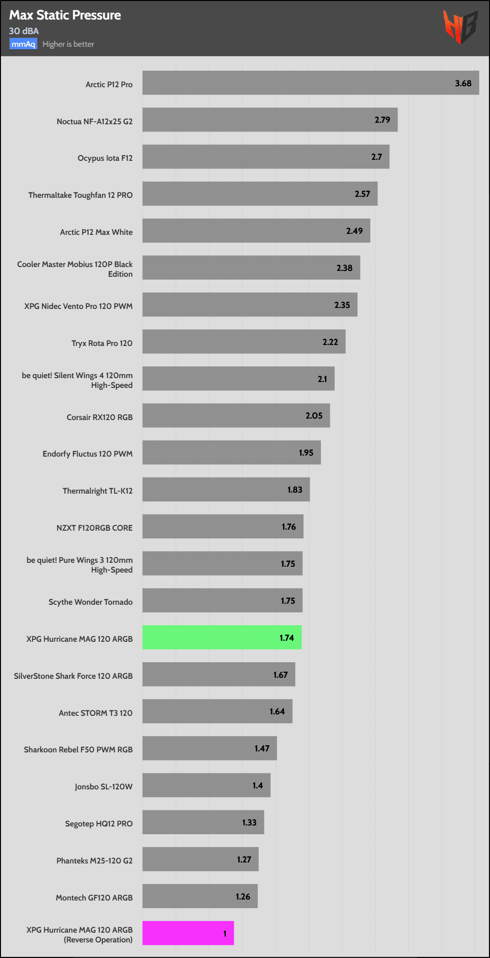 In reverse, the fan is notably noisier, so it extends to more normalized noise levels.