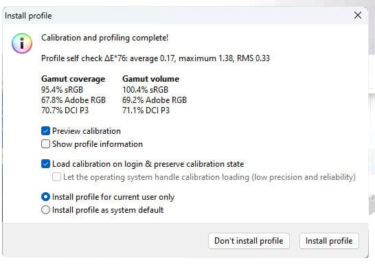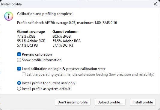 To check and calibrate the monitor, I used DisplayCal along with a Calibrite Display Plus HL.