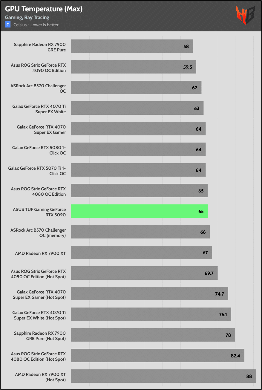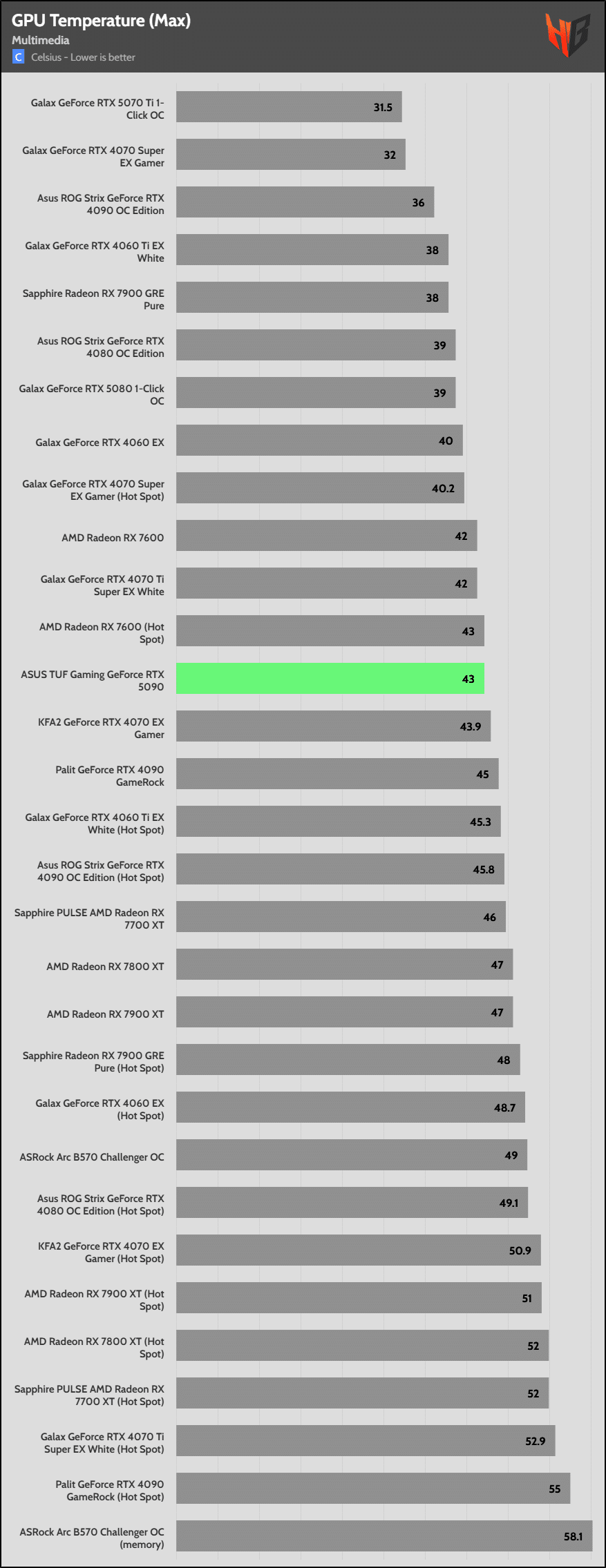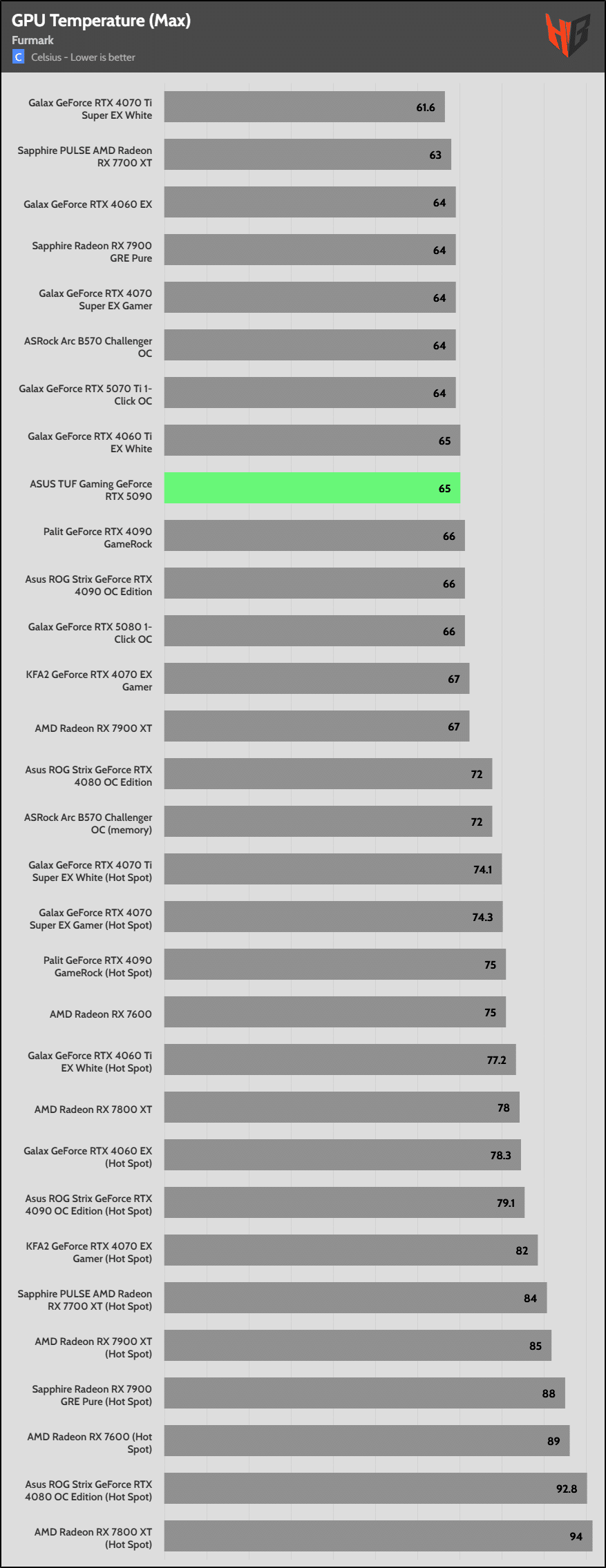 Despite the high power consumption in 3D Mark Speed Way, the GPU’s operating temperature is kept low.