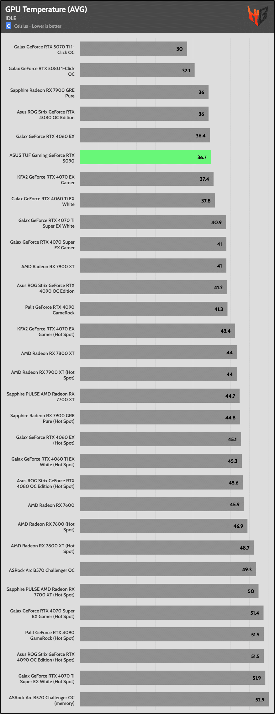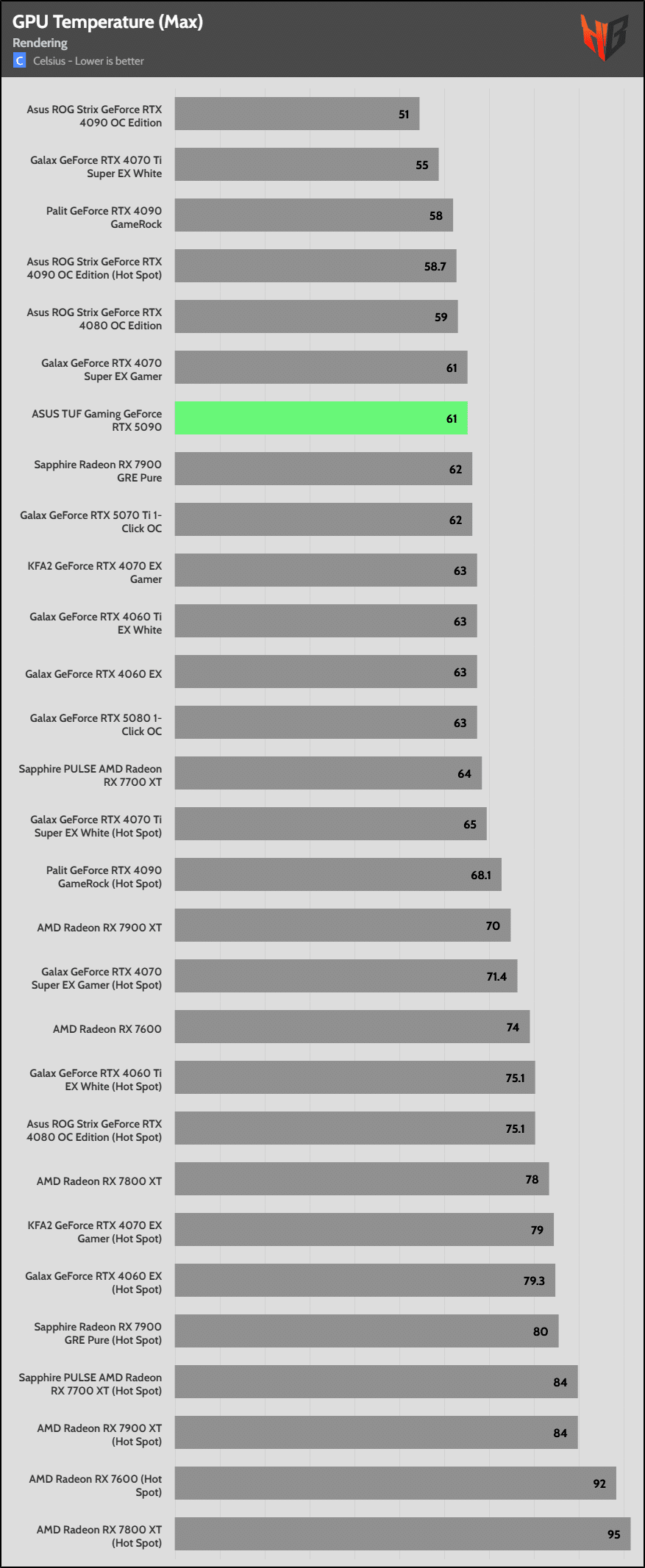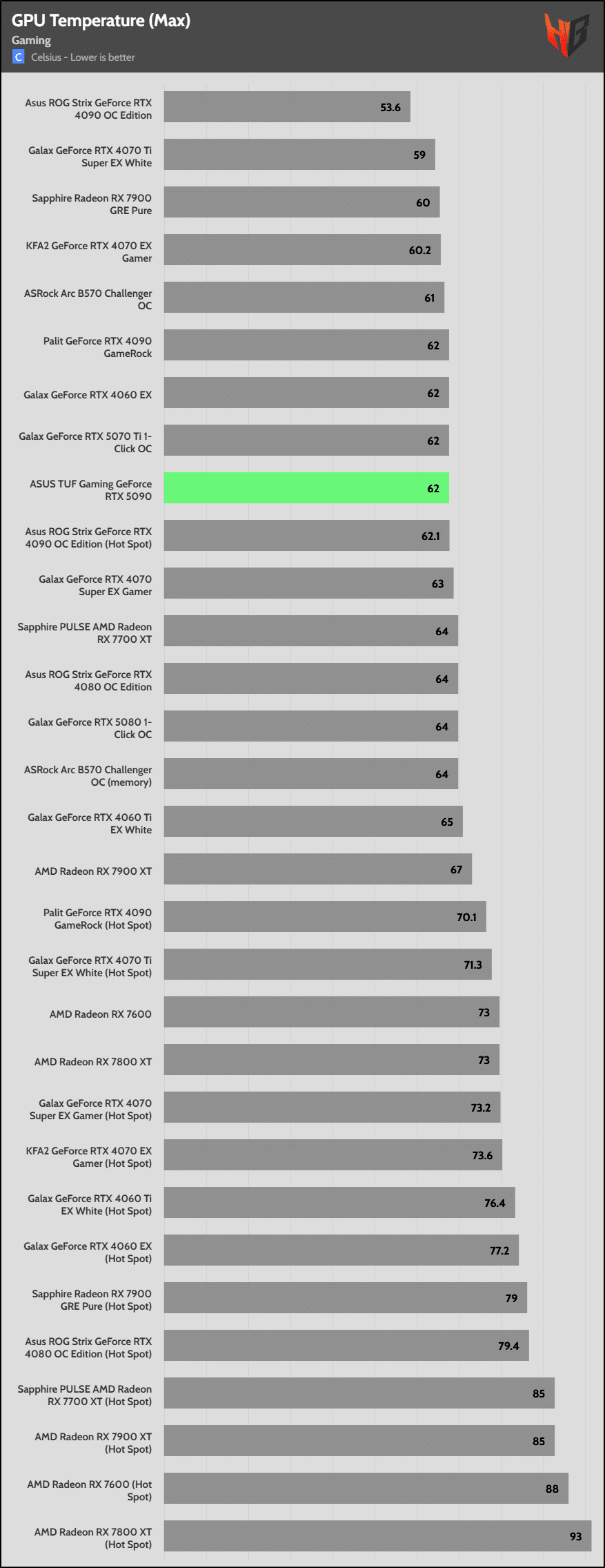 Despite the high power consumption in 3D Mark Speed Way, the GPU’s operating temperature is kept low.