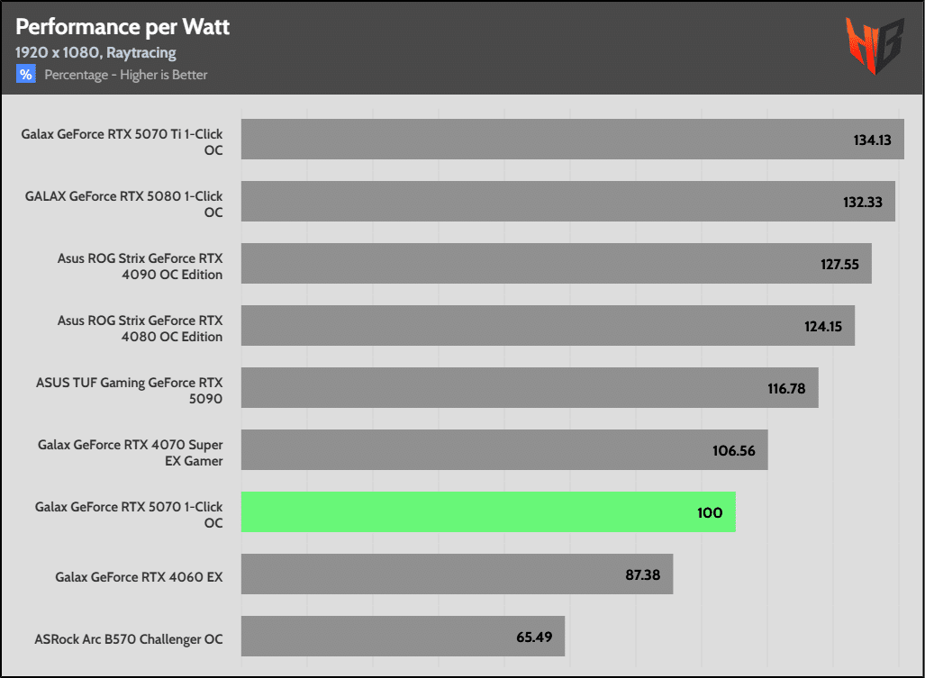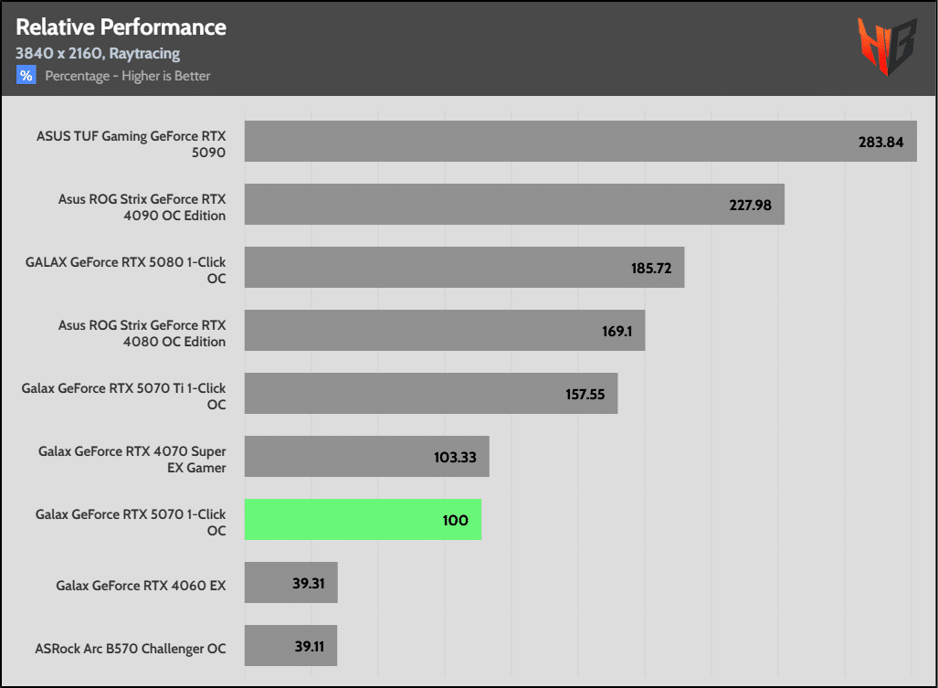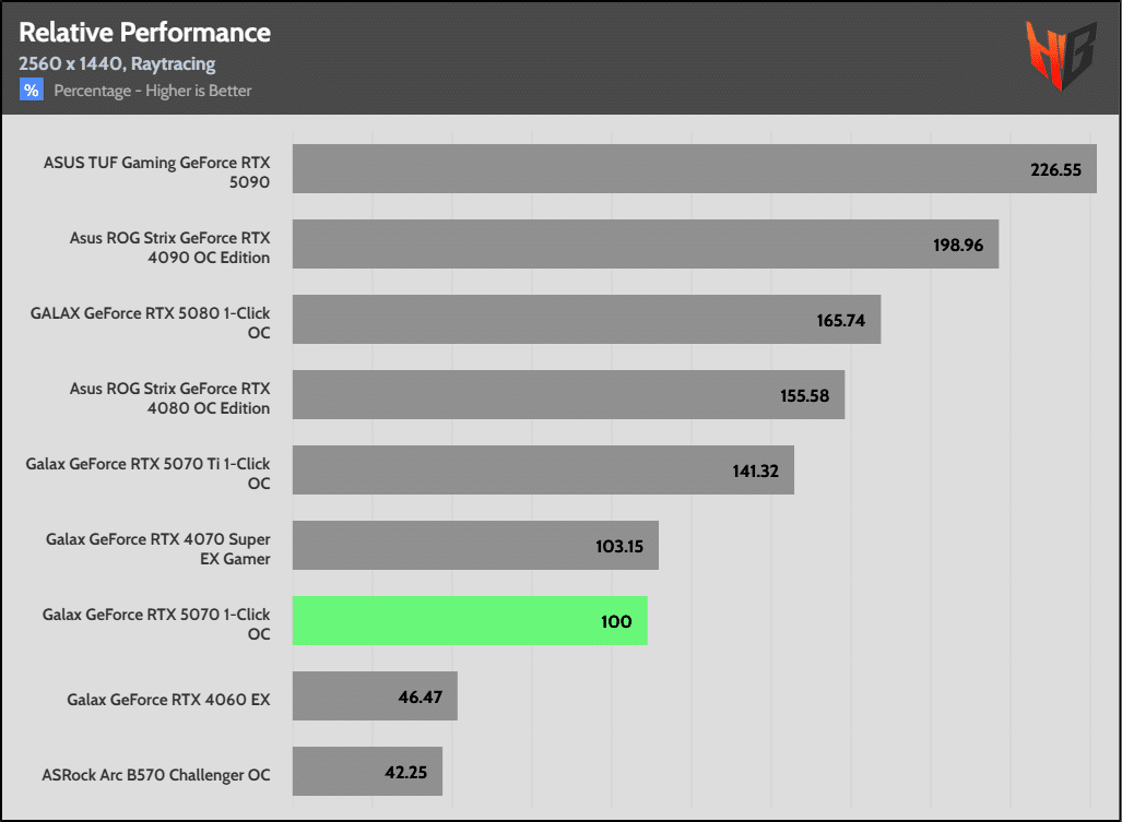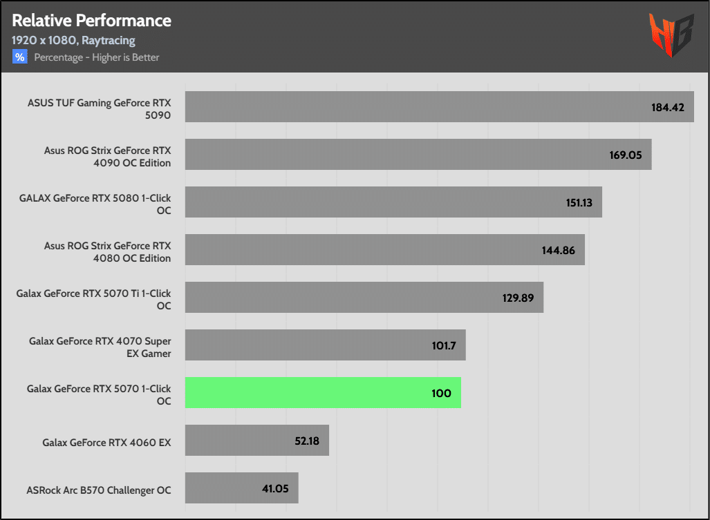 I noticed low performance in Ratchet & Clank in these benchmarks, which greatly affected the 5070’s overall performance and led to low overall scores. Although the performance of the 5070 with RT enabled is a little above the rest titles, the low performance in Ratchet & Clank affected the overall performance score.