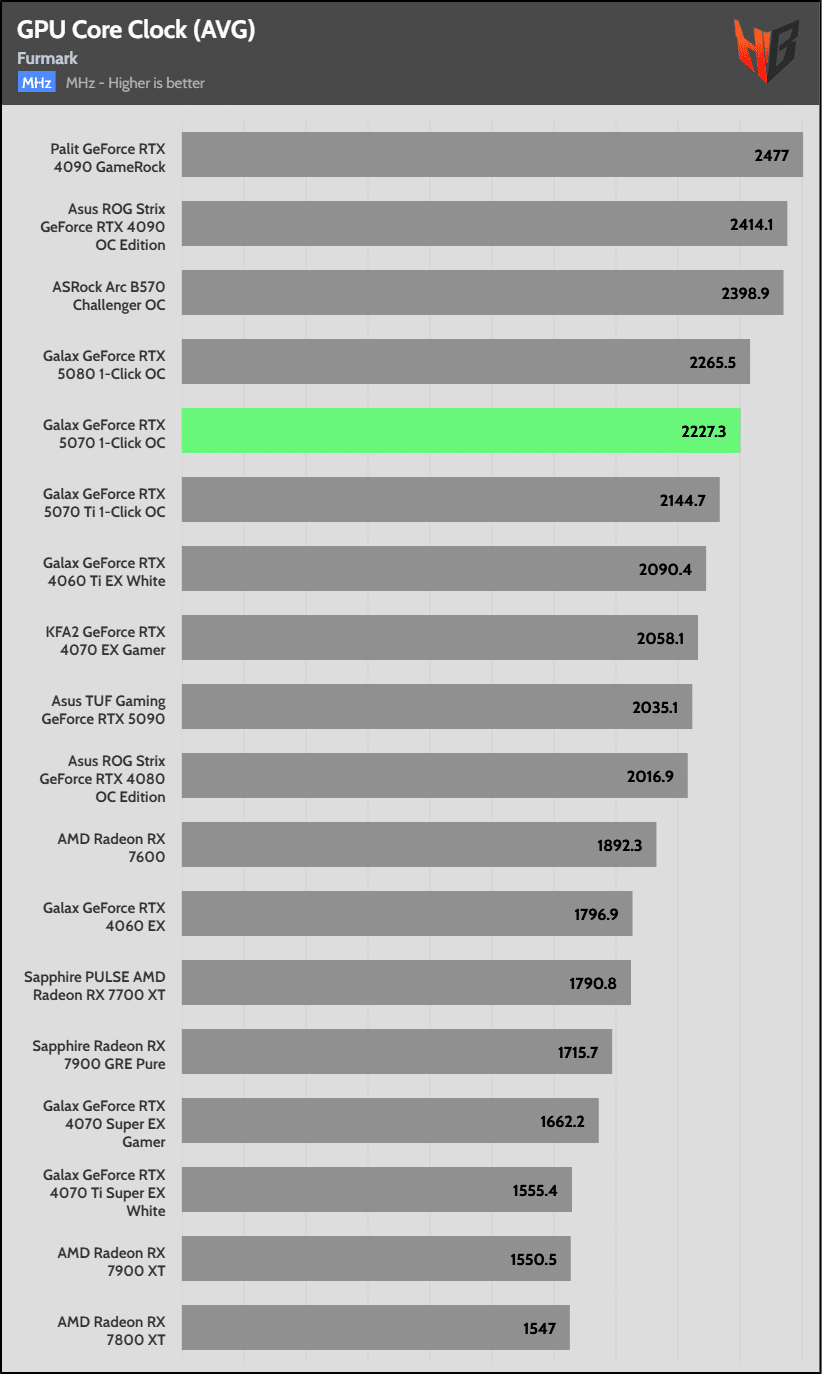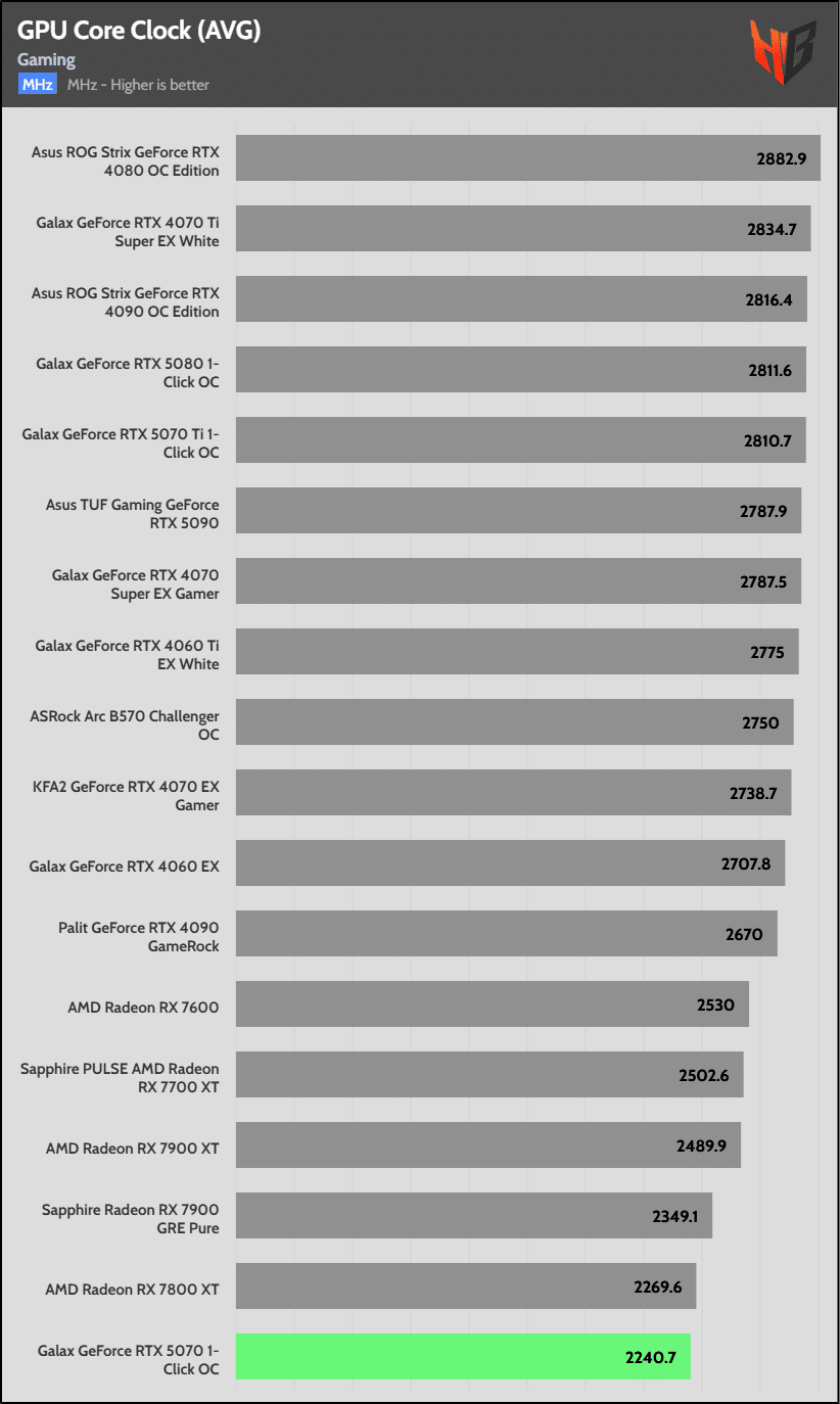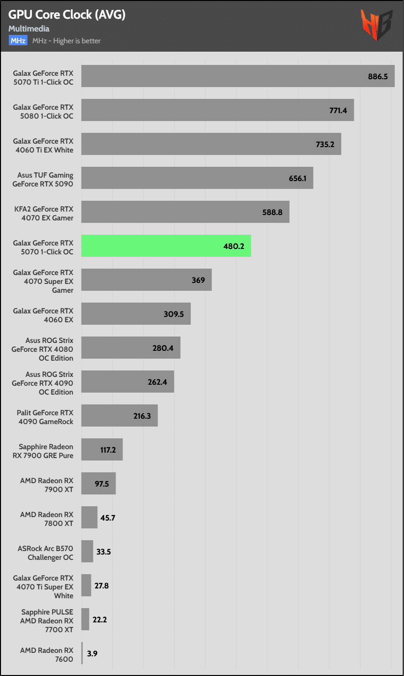 The charts below show the average GPU clock speeds in various usage scenarios.