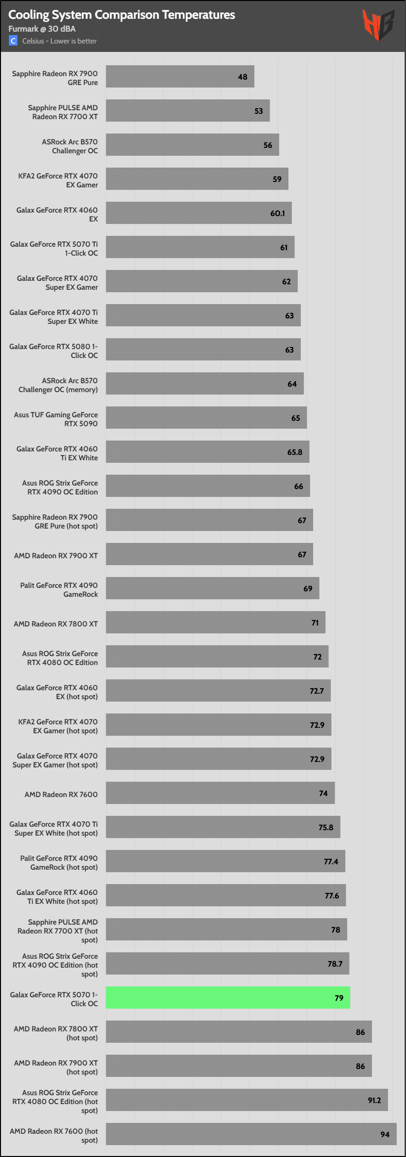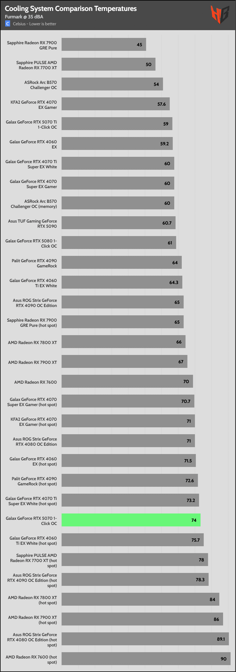The GPU clocks are pretty high. This is why the temperatures were increased during these test sessions.