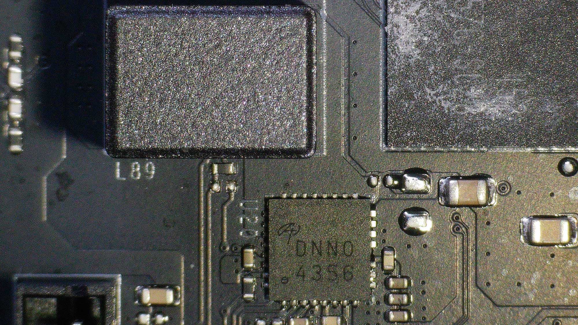 Alpha & Omega’s DrMos chips have the model number AOZ5310NQI and the marking DNNO. Their maximum continuous output current can reach 60A.