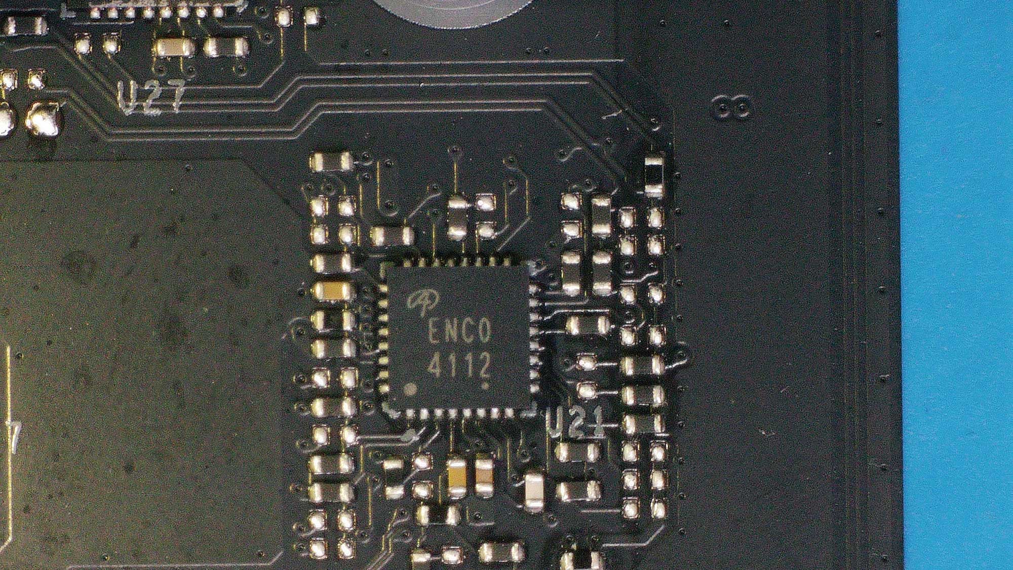 A 9-phase VRM handles the NVVDD and MSVDD power circuits and three phases handle FBVDD. A Monolithic Power Systems MP29816 controller controls these. For those who don’t know what these mean, NVVDD provides power to the GPU, FBVDD ensures the stability and accuracy of data transfers between the GPU and memory, especially at high clock speeds. In contrast, the MSVDD voltage manages the memory chips’ operation.