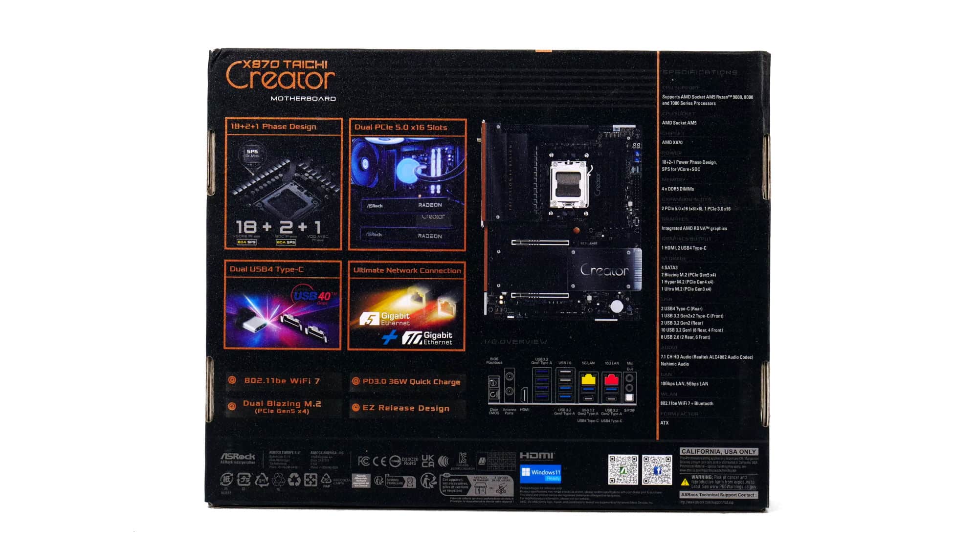 To drive a Type-C monitor from the rear USB4 ports, you’ll need an AM5 CPU with integrated graphics (iGPU). Discrete GPUs cannot pass video through these ports. On Ryzen 8000-Series CPUs, note that the USB4 controller link is limited to Gen4×2 rather than the full bandwidth.