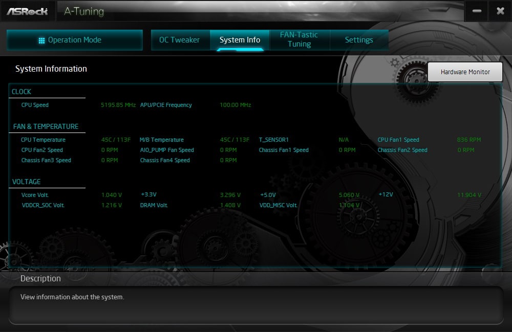 With the A-Tuning software, you can modify some of the options typically found in the BIOS, such as voltages and fan curves, while also monitoring crucial system information. It’s not necessary to use it, but it’s convenient if you want quick access without shutting down your system.