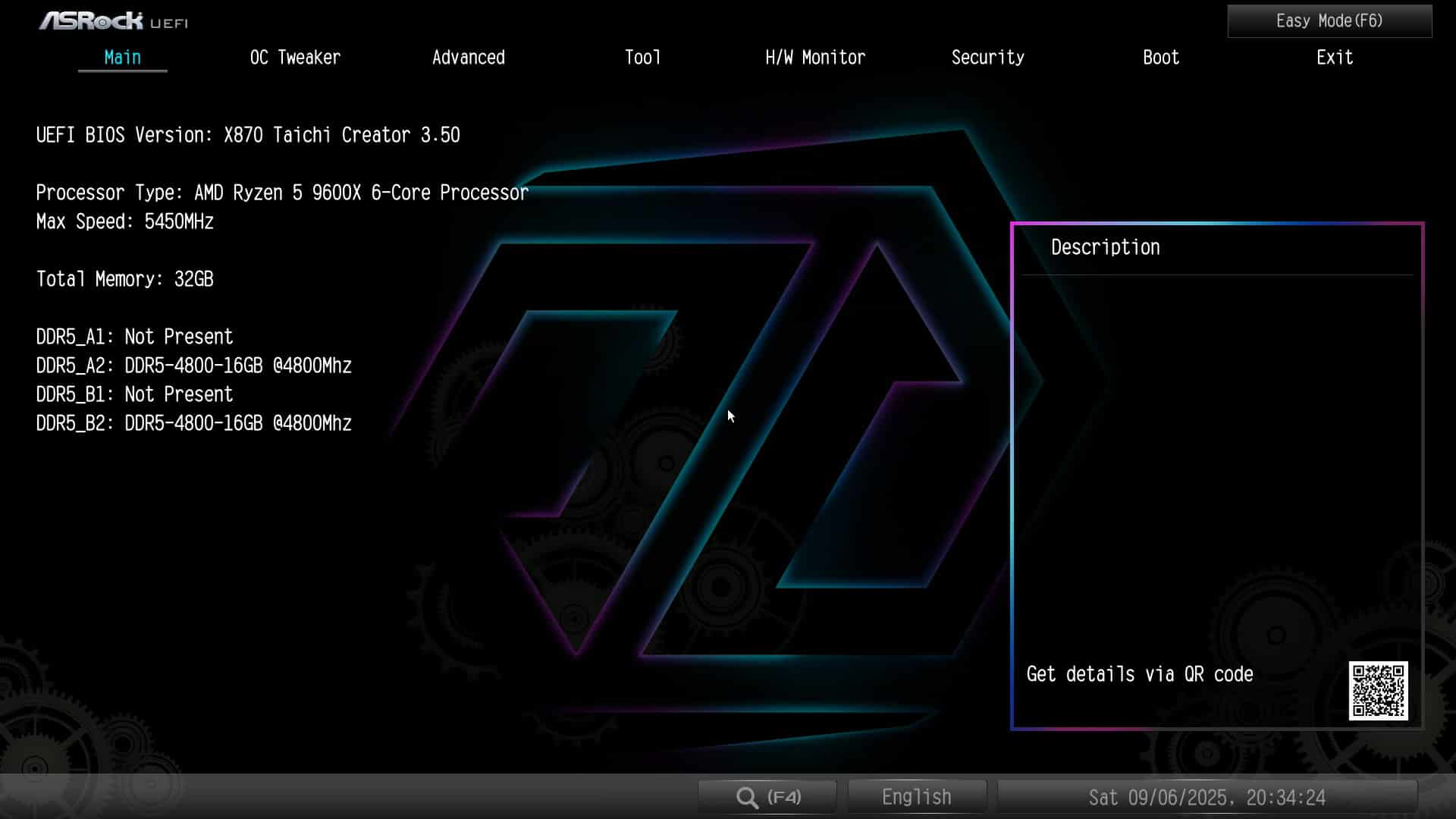 To test the Taichi Creator, we used the AMD 9600X, a 32GB Kingston Fury Beast kit, a fast PCIe 4.0 NVMe drive, and an Enermax air cooler (review available here). The board shipped with BIOS version 3.50, the latest at the time of testing. An SL-1200GW powered the system (PSU review available here).