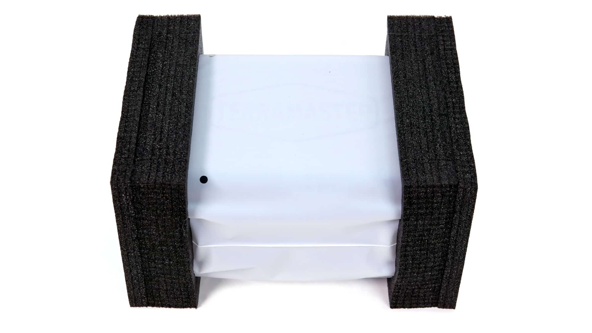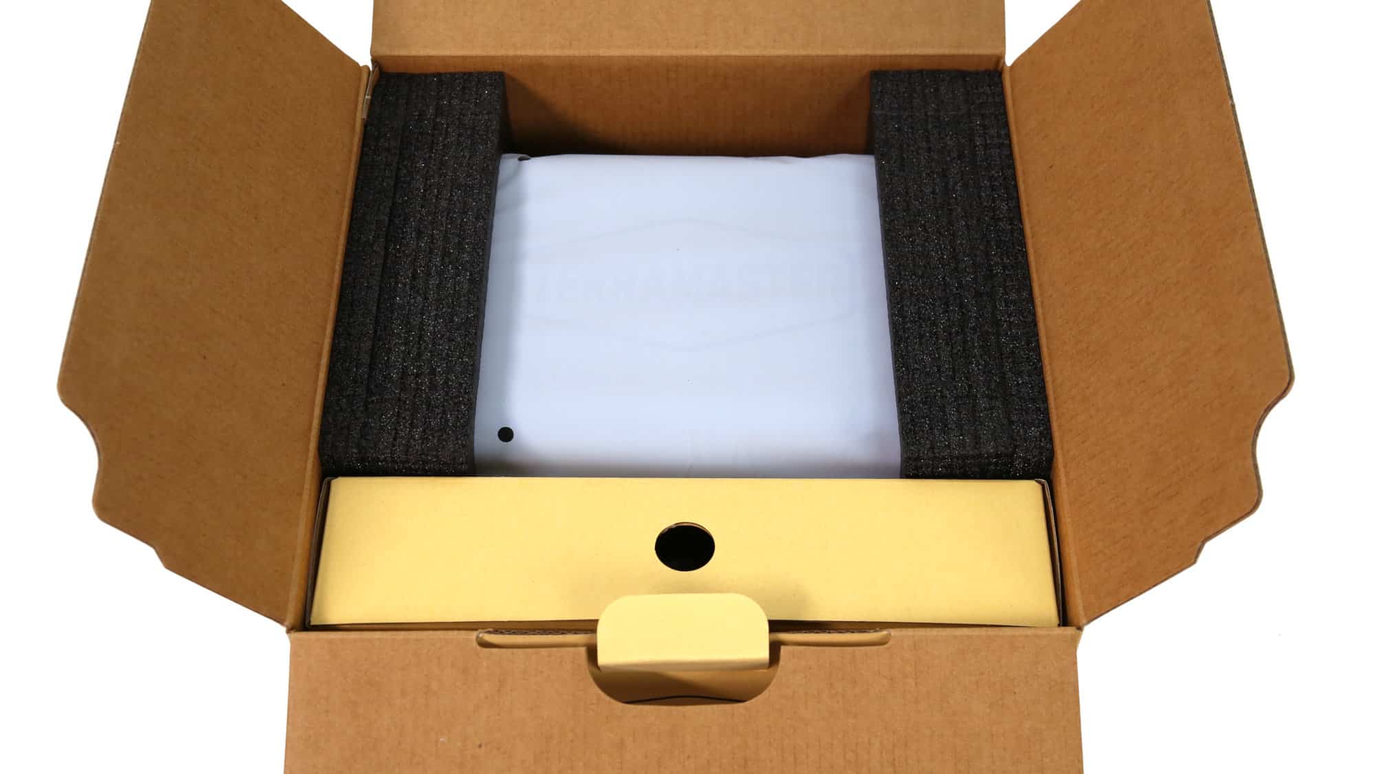 The NAS arrived double-boxed and in perfect condition. The outer box is plain, featuring the TerraMaster logos and a sticker identifying the model. Opening it, you’re greeted by the NAS on top and the bundled accessories below. The foam provides excellent protection, and the NAS itself is wrapped in a plastic bag.