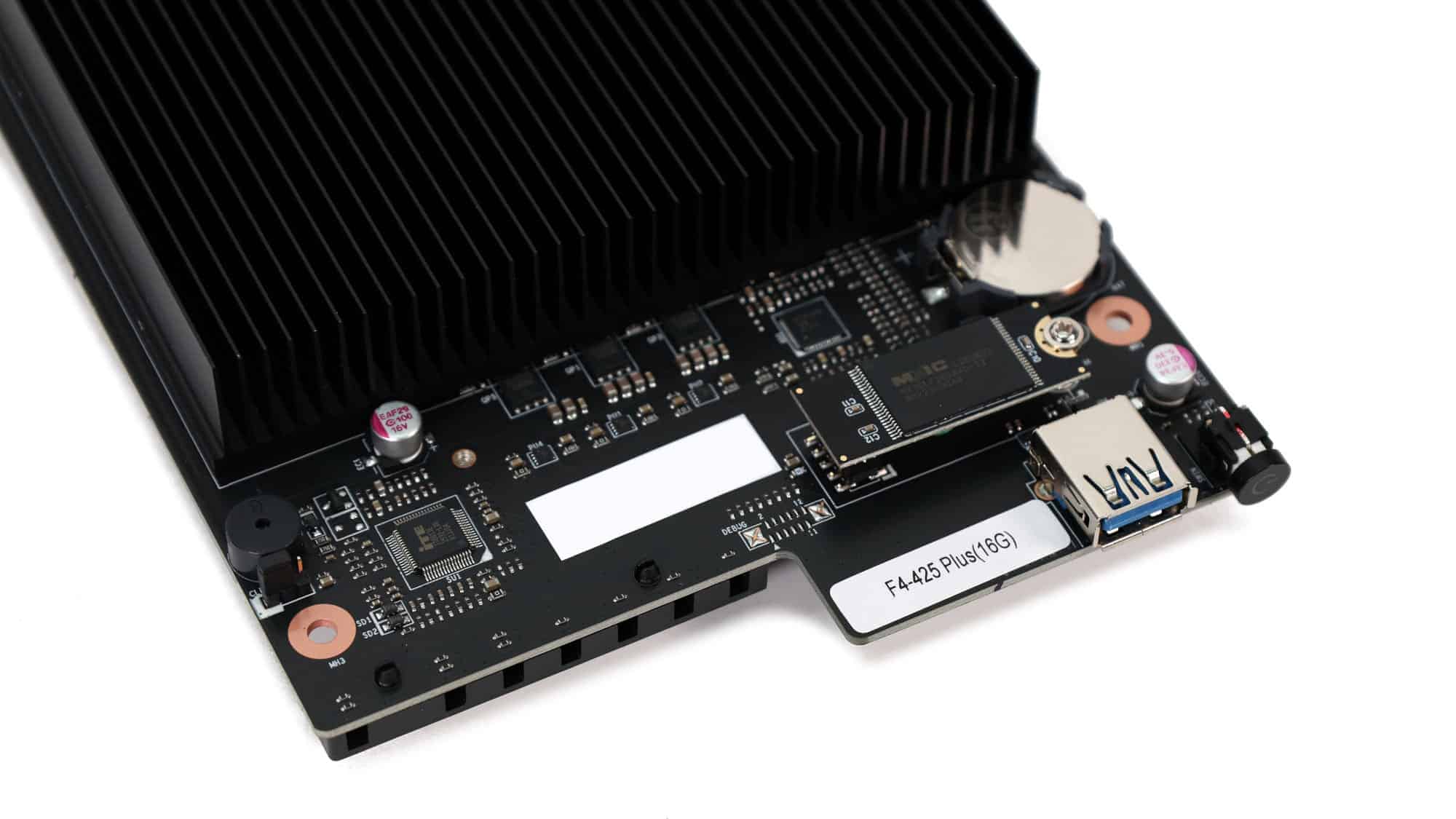 On the opposite side of the board, next to the heatsink and close to the rear I/O, you’ll see the various I/O controllers, along with a small internal USB port intended for a boot drive. The PWM fan connector, as well as the USB, SATA, and Ethernet controllers, are also located here. Toward the front of the board, near the power button and front USB port, there’s a USB DOM used to store a lightweight bootloader, making setup and recovery more straightforward.