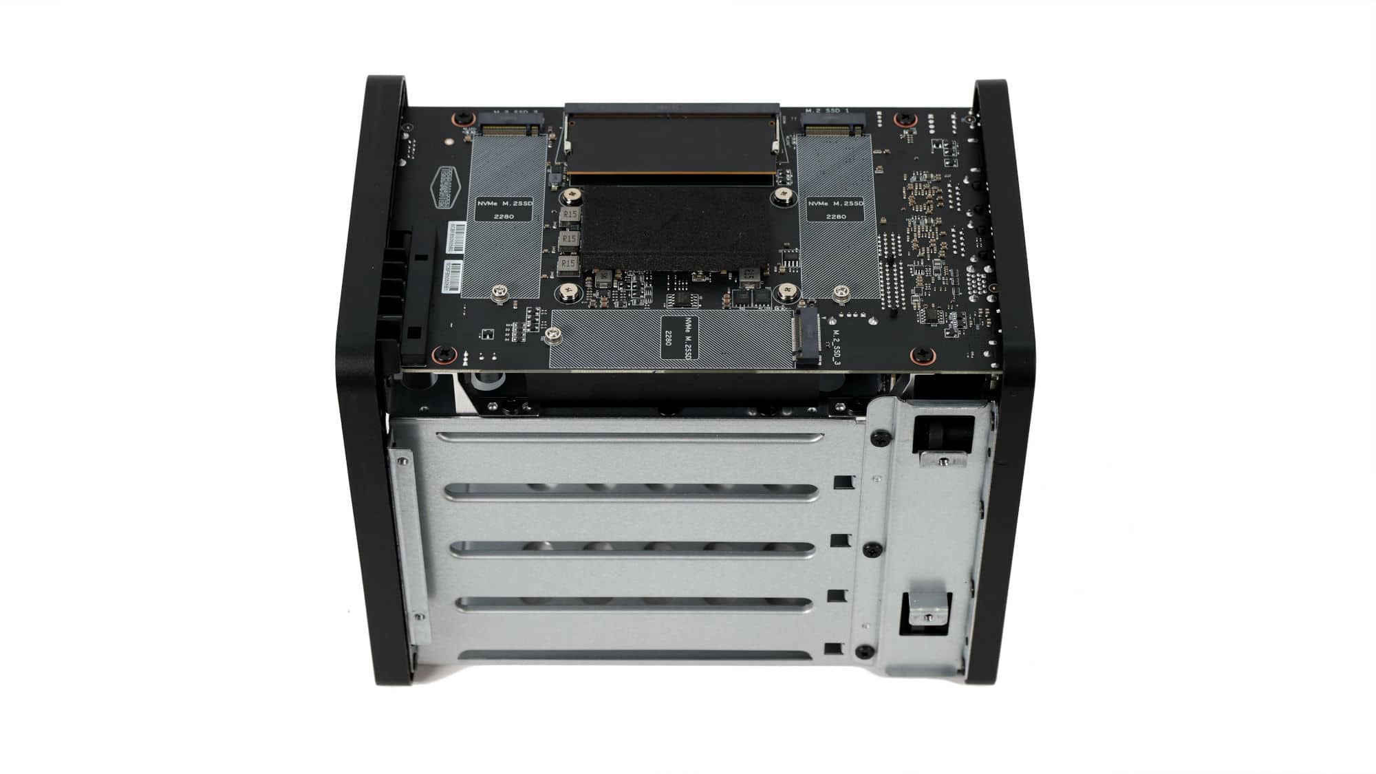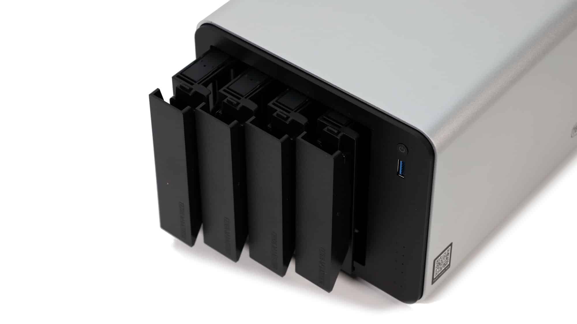 The aluminum outer shell wraps around the unit, giving it a very premium look. The colors are neutral, allowing it to blend seamlessly into most environments. The overall size is typical for a four-drive NAS. The only downside we noticed is that the aluminum appears somewhat prone to scratches; however, our unit arrived in pristine condition.