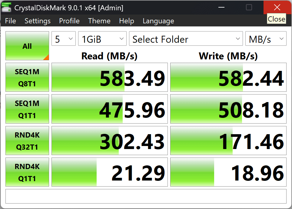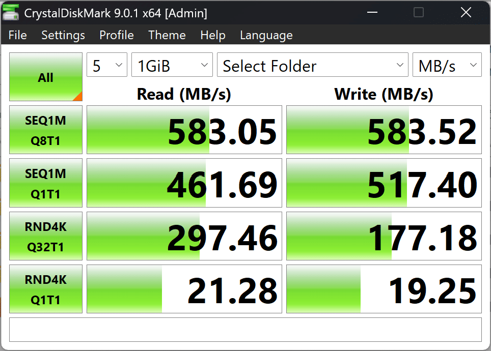 With CrystalDiskMark, the difference is not visible. The differences between the two setups could have resulted from normal run-to-run performance variance. Nonetheless, the NAS performed as expected over the 5GbE connection.
