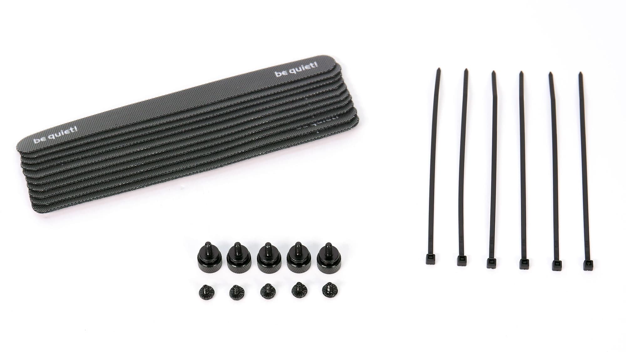 Internally, the contents are neatly arranged, and the provided protection is adequate. A smaller box holds the modular cables. Moreover, the provided bundle is rich, including several Velcro straps, zip ties, and even thumb screws for PSU mounting, in addition to the standard screws.
