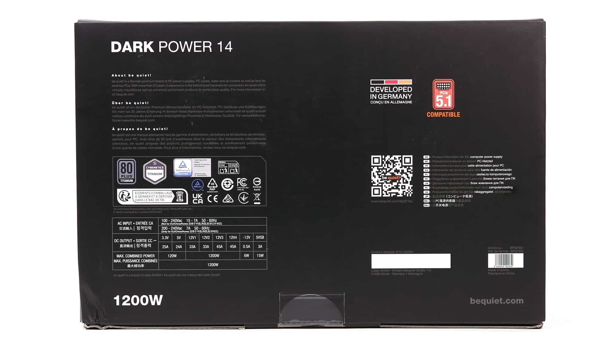 Typically, the box features a photo of the PSU on its face, along with two badges showing its efficiency certifications. I like the fact that be quiet! didn’t use a vast number of badges to impress, but only the ones that mattered. Actually, they could restrict the number of badges to one for efficiency and use another to describe the unit’s noise certification.