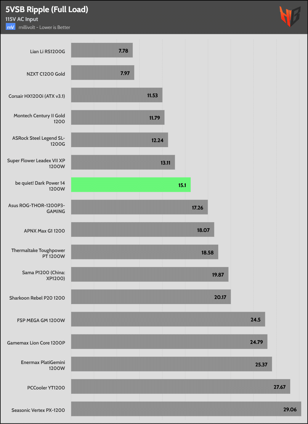| 100% Load | 16.1 mV | 14.2 mV | 14.4 mV | 15.1 mV | Pass |