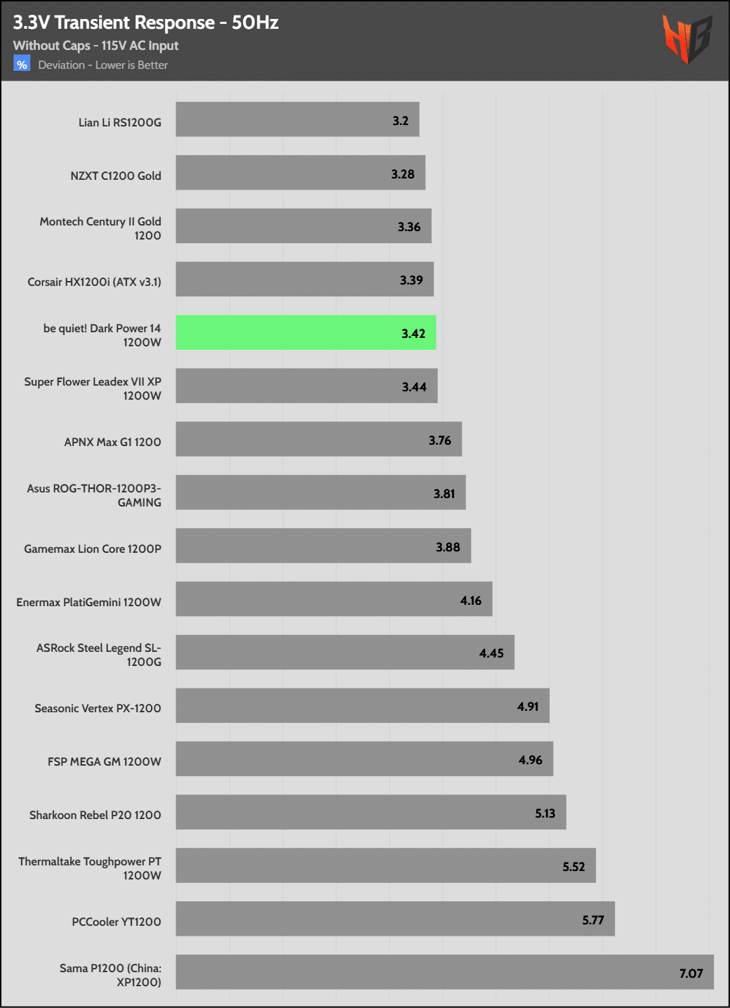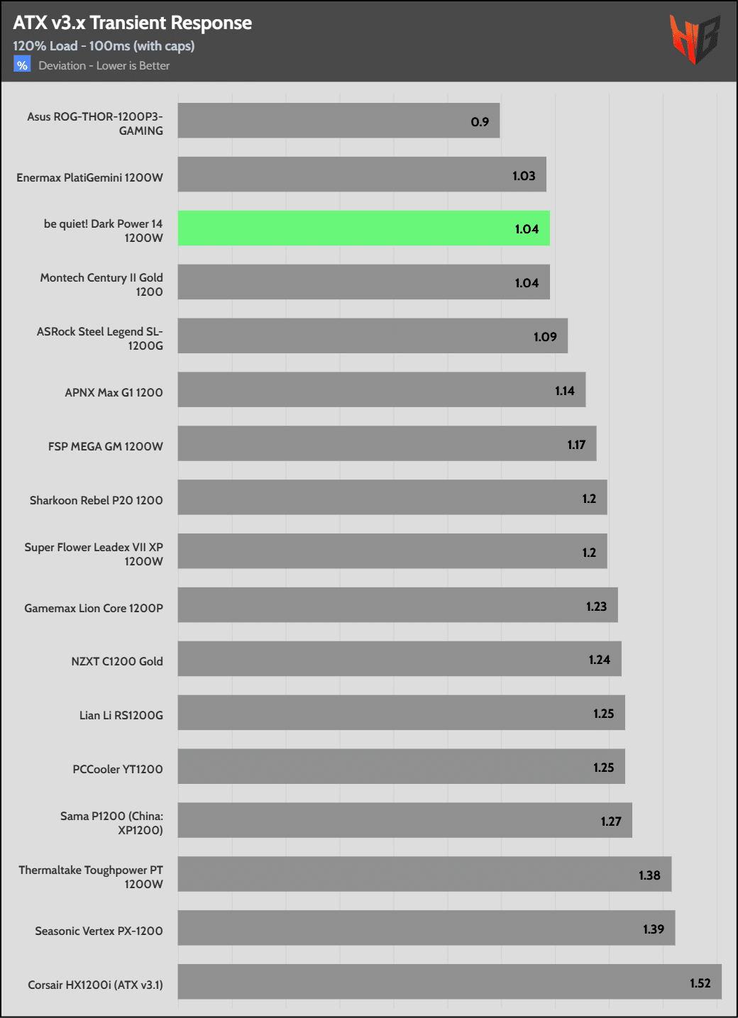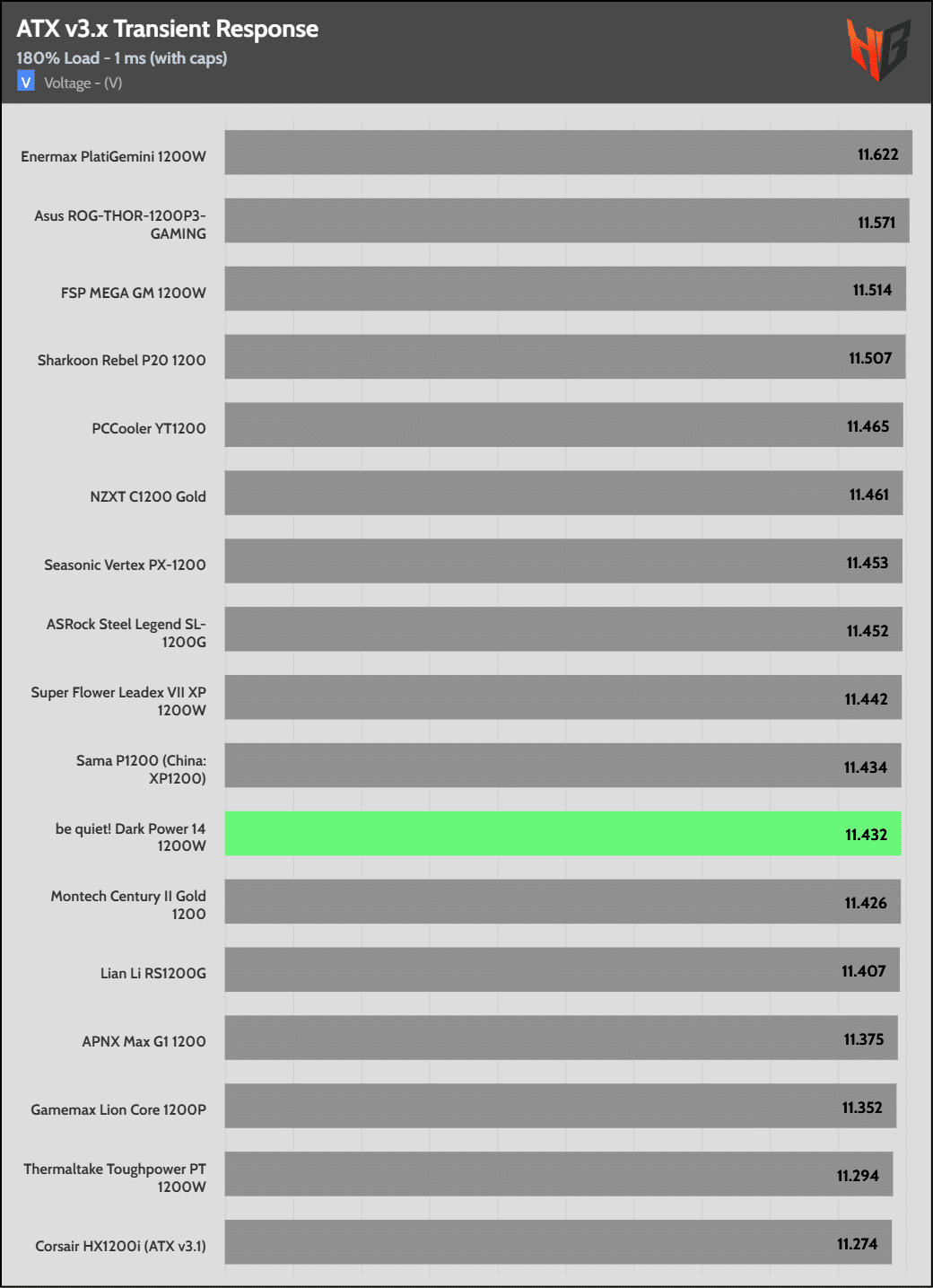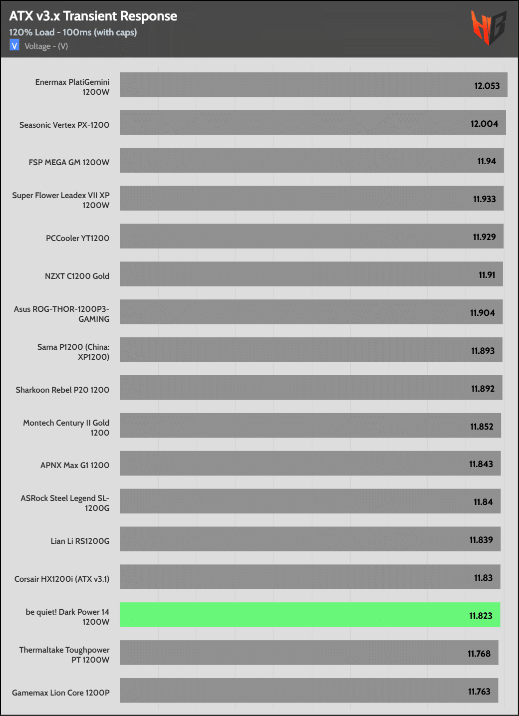 [Note] For PSUs without a 12+4 pin connector, the maximum applied load for the transient response tests is 150%, rather than 200%.The PSU passes all ATX v3.1 transient response tests, but the 3.3V rails drop low.