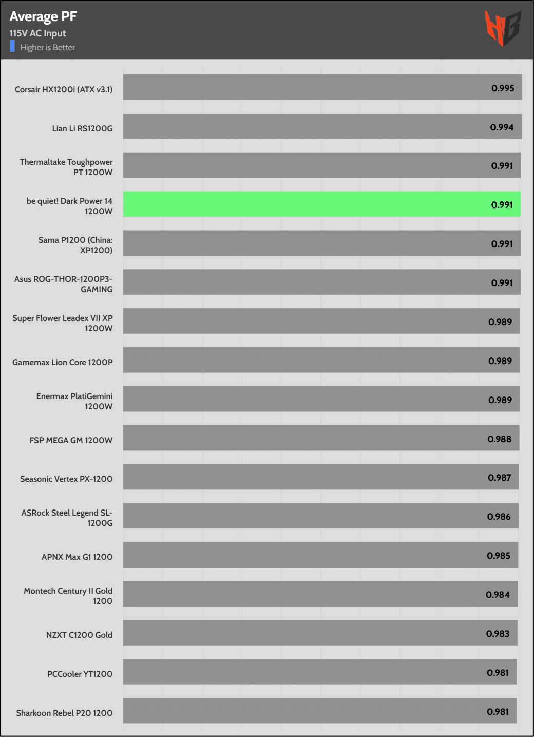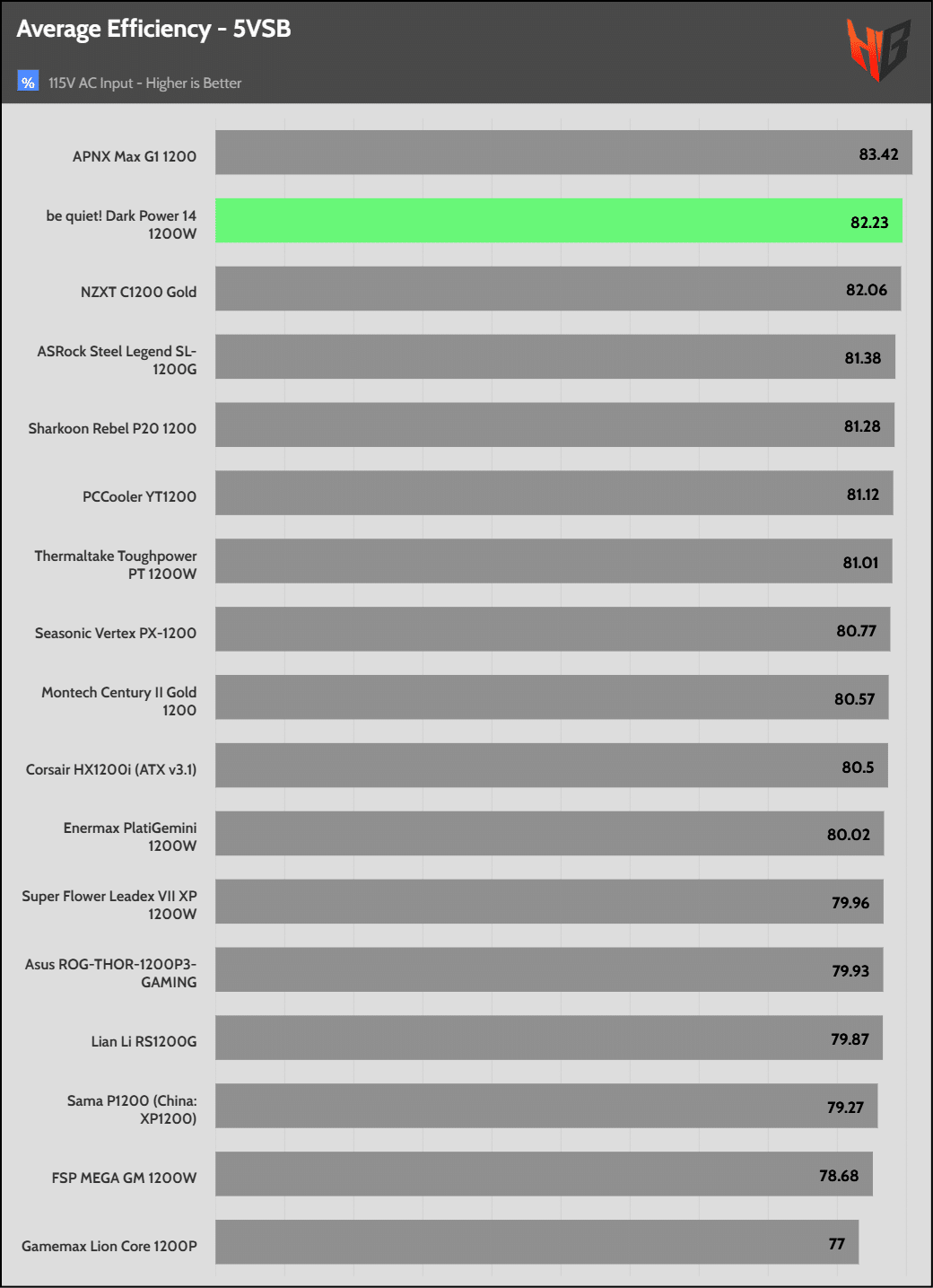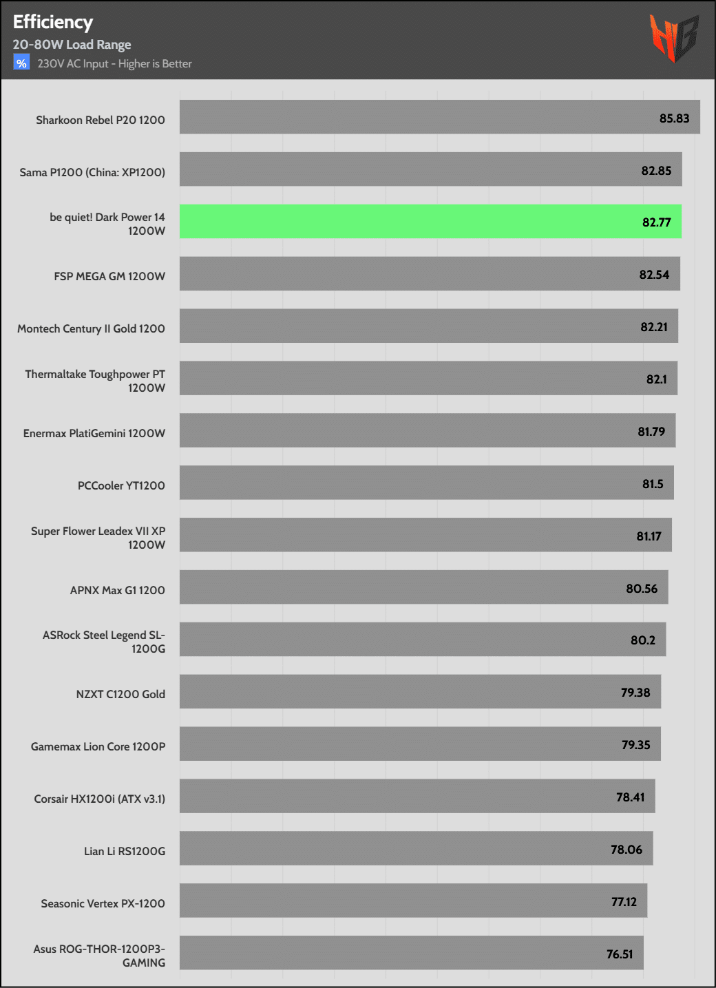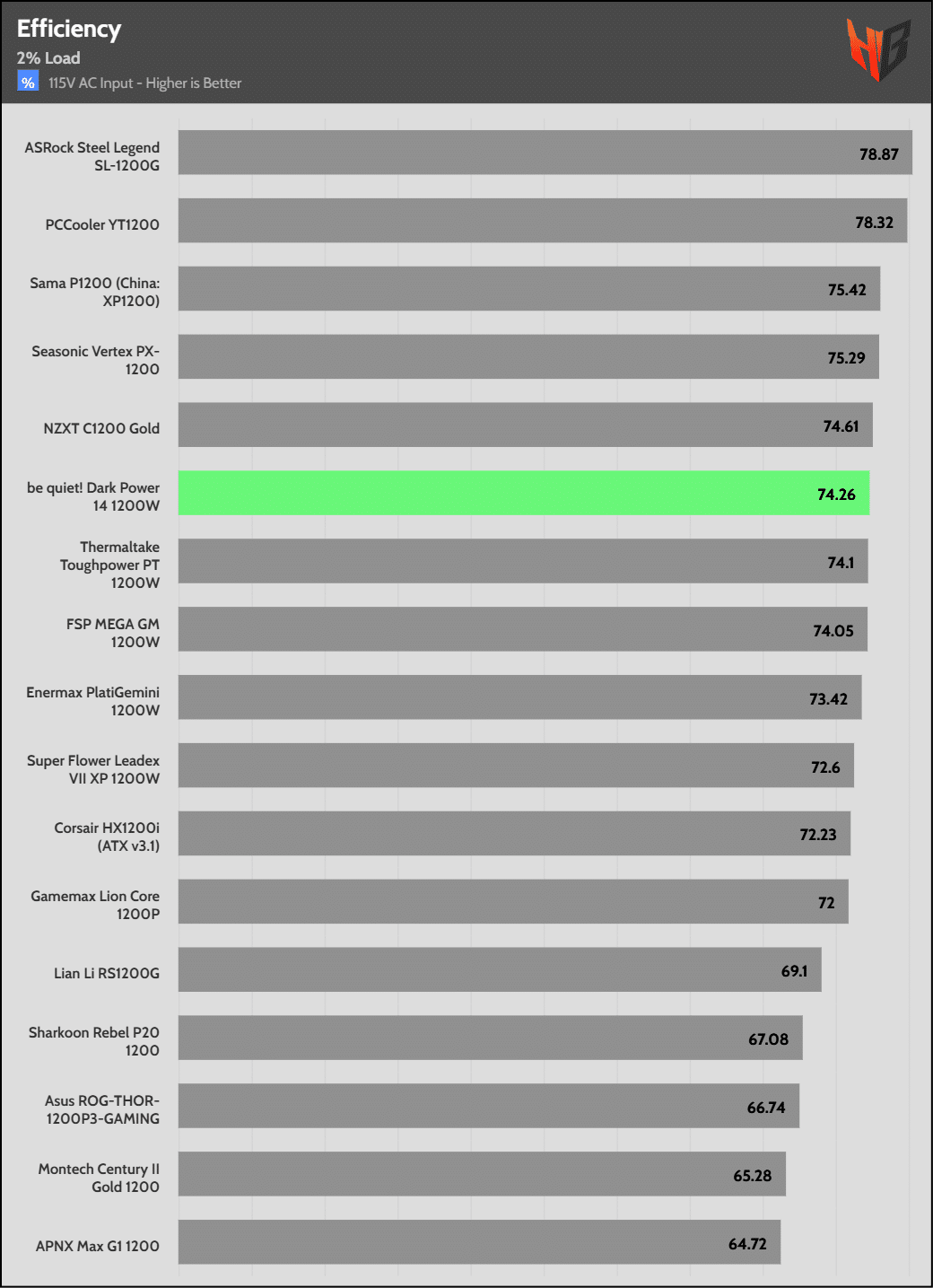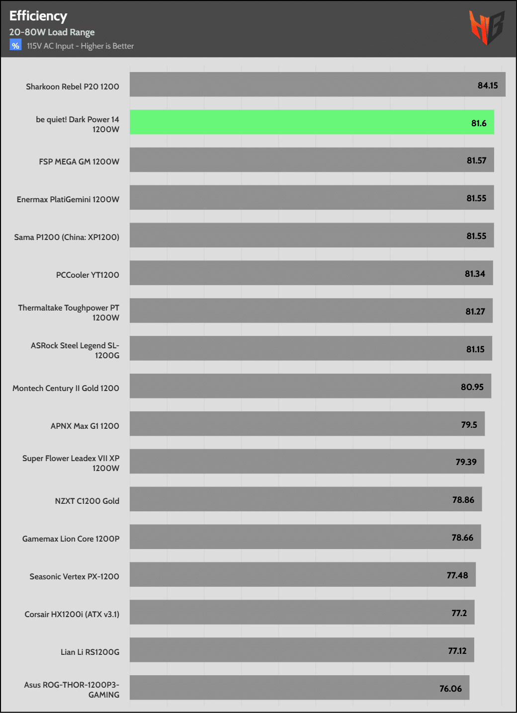 The PSU’s average efficiency with more than 1450 different load levels at 115V and 230V is depicted in the graphs below.