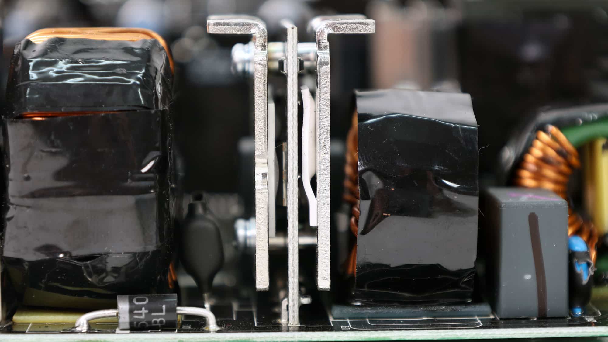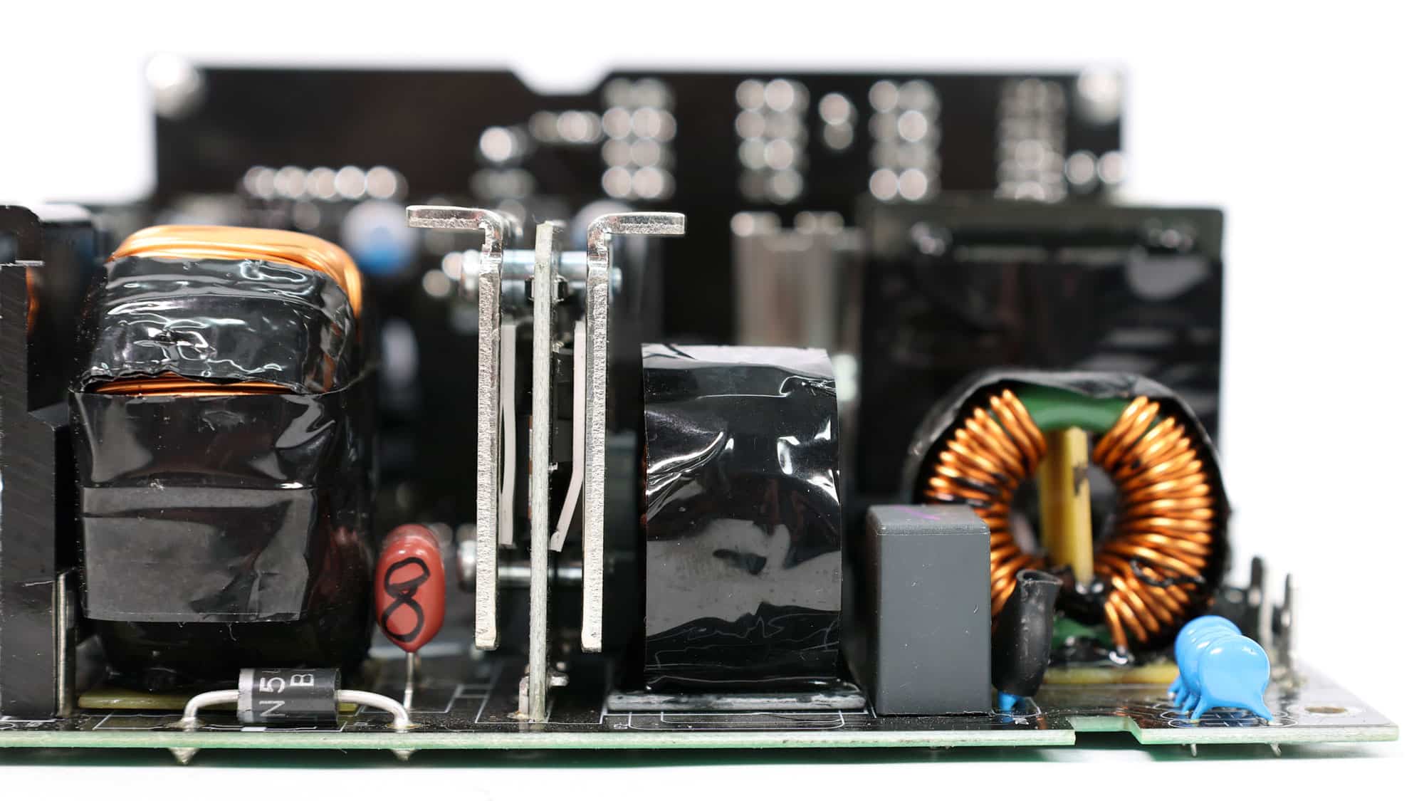 The PSU’s main transformer. One of its main functions is to electrically isolate the primary and secondary sides.